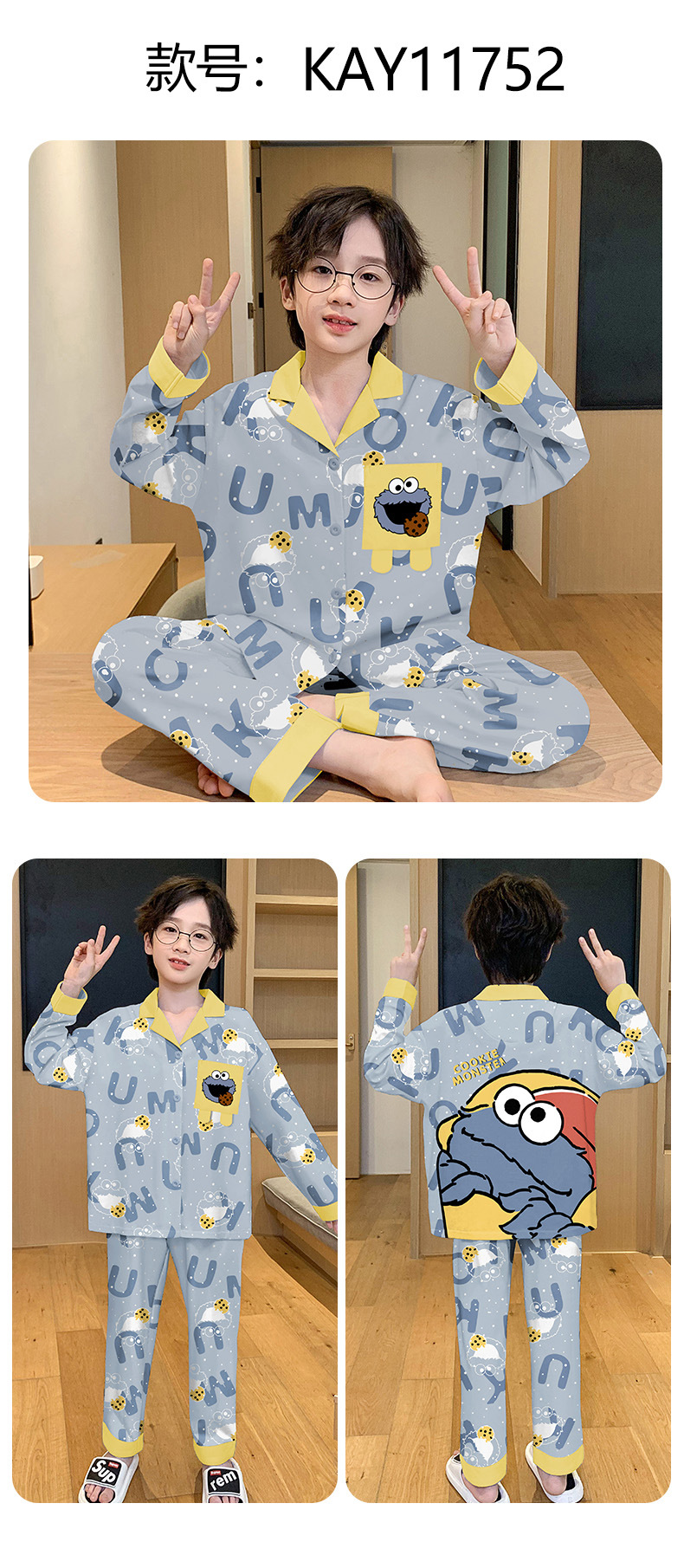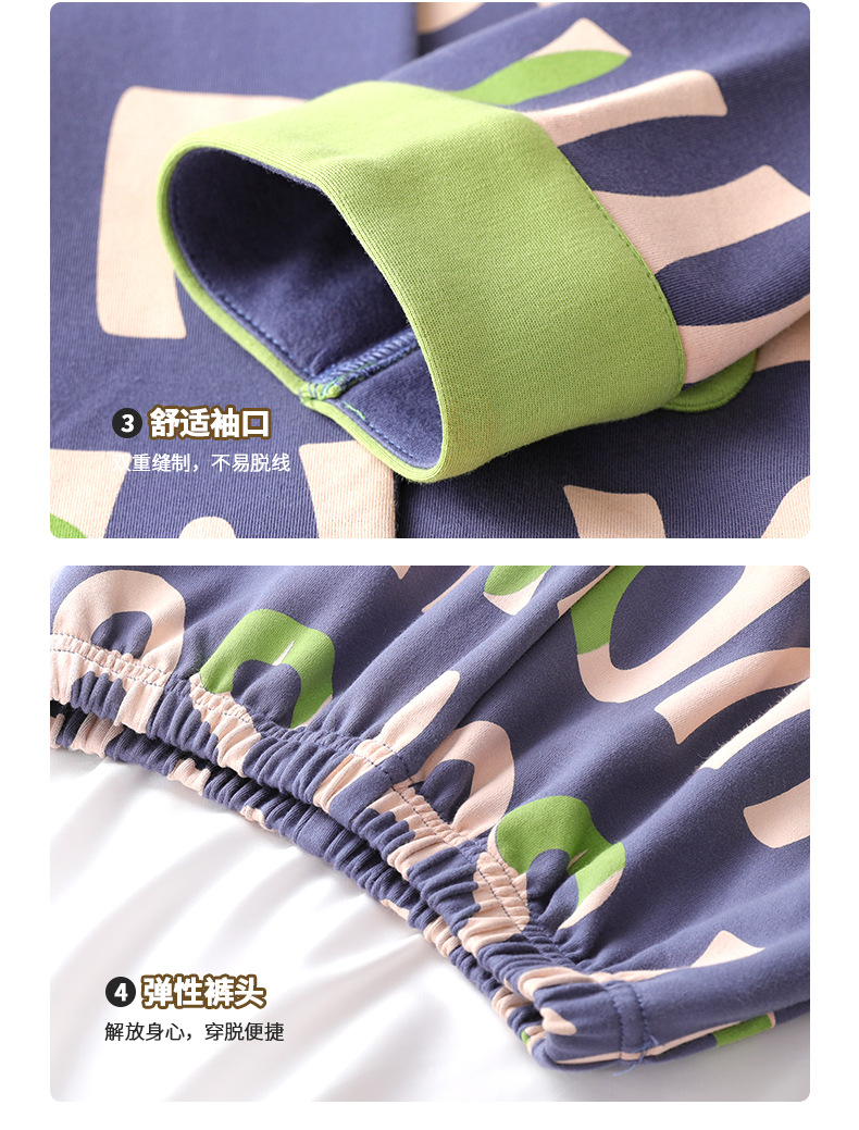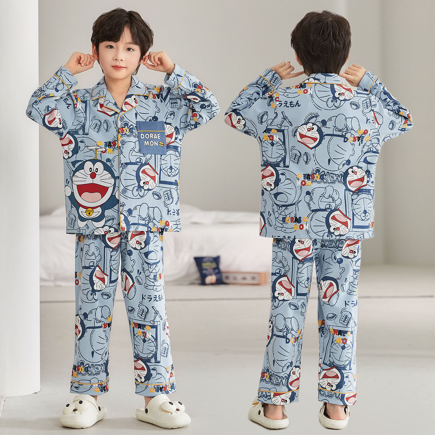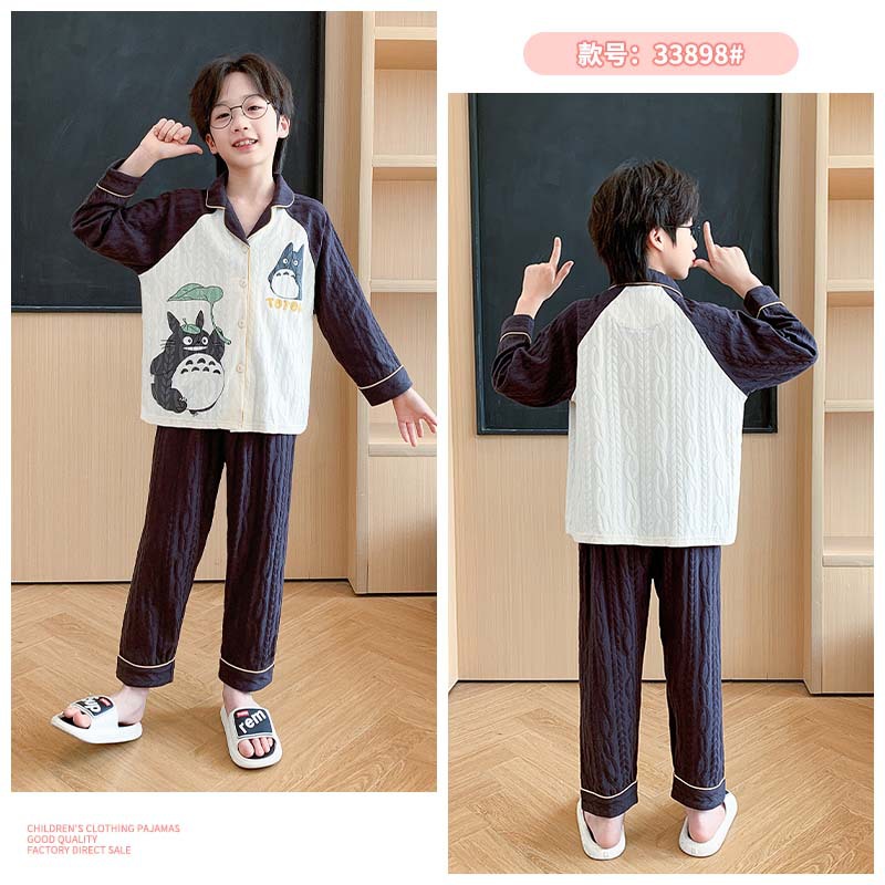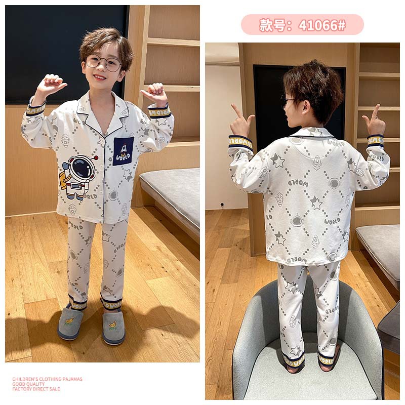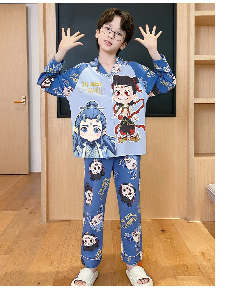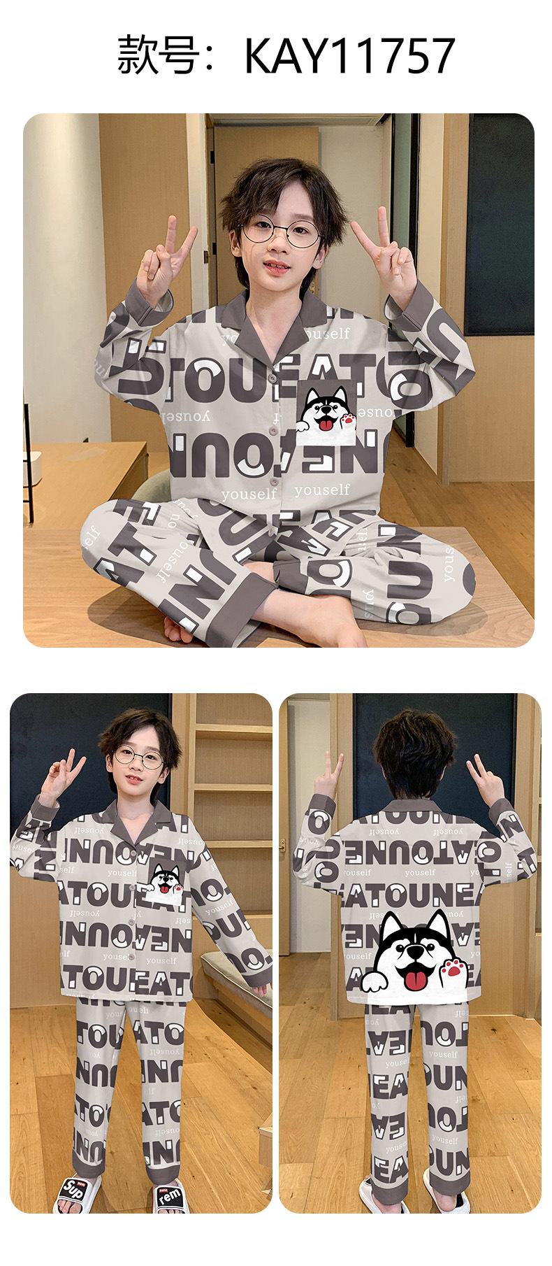 2025 새로운 어린이 잠옷 봄과 가을 소년 순면 긴팔 중대형 어린이 및 청소년 소년 가정 의류 여름스토어 가기