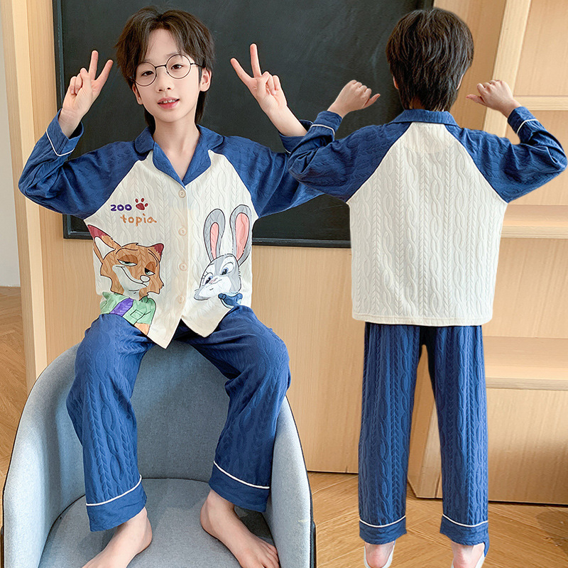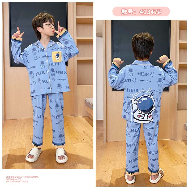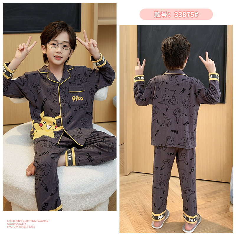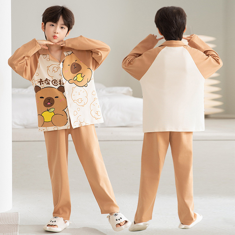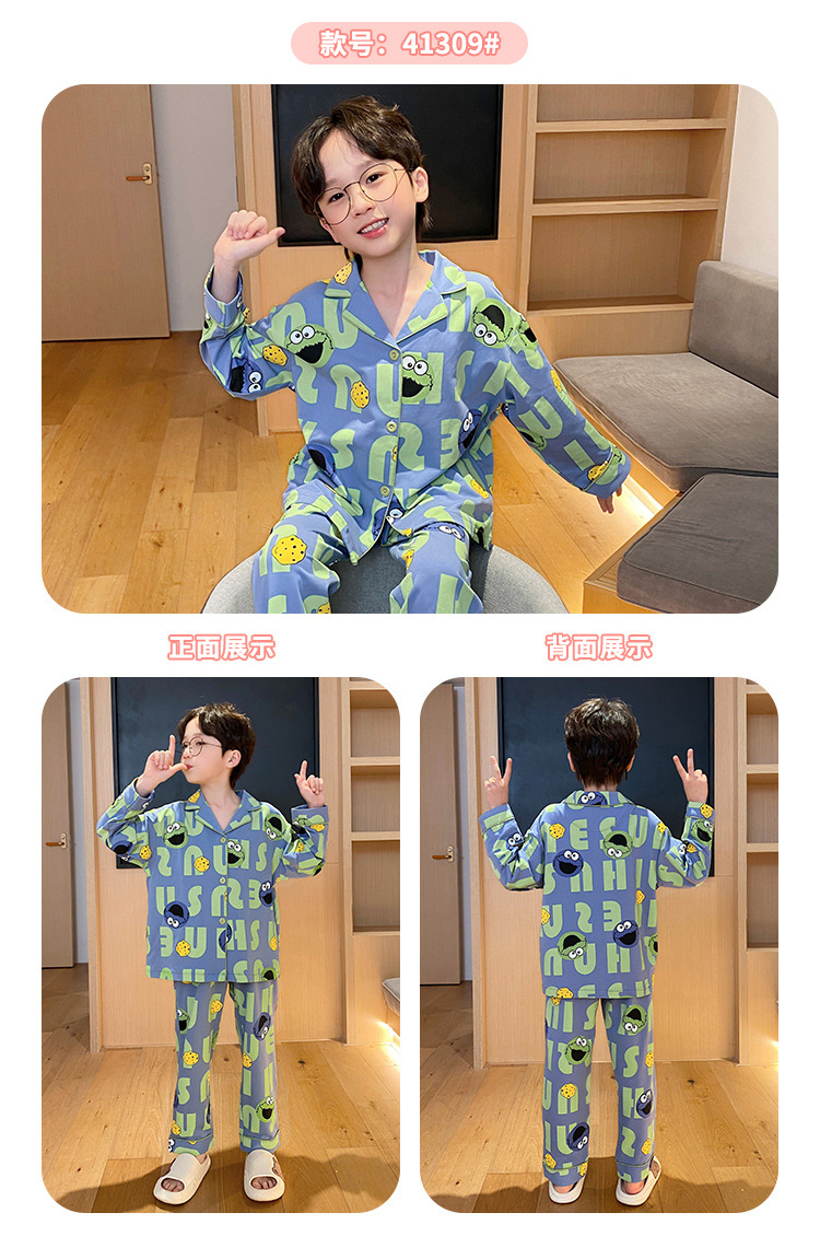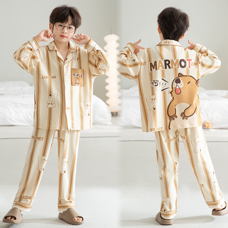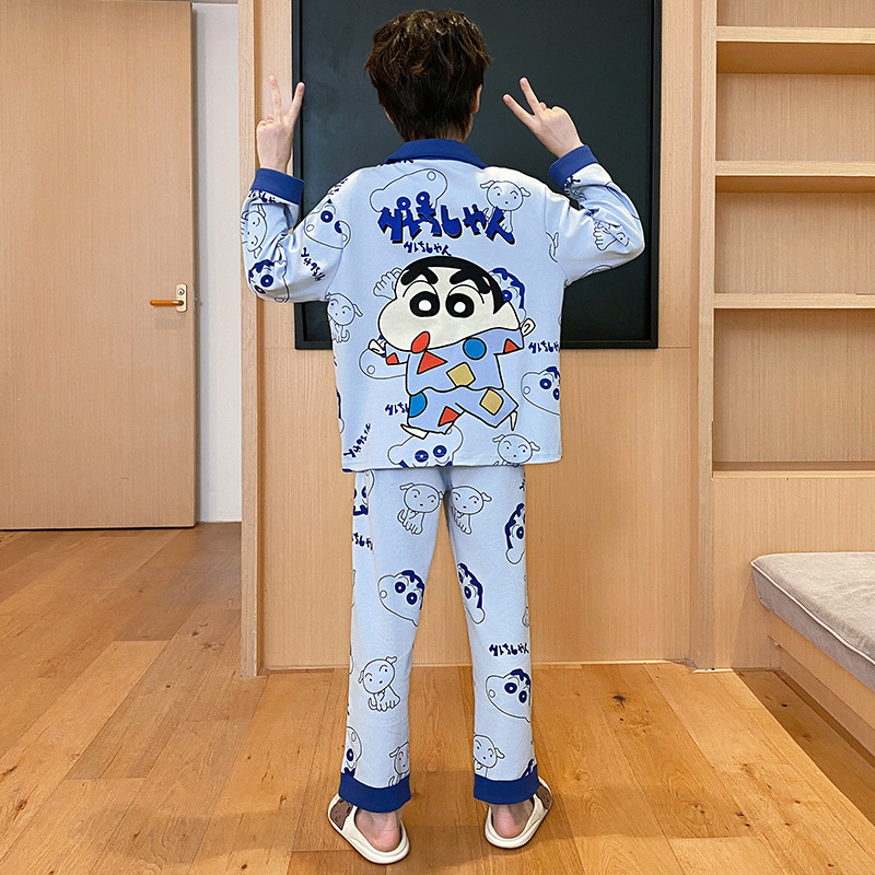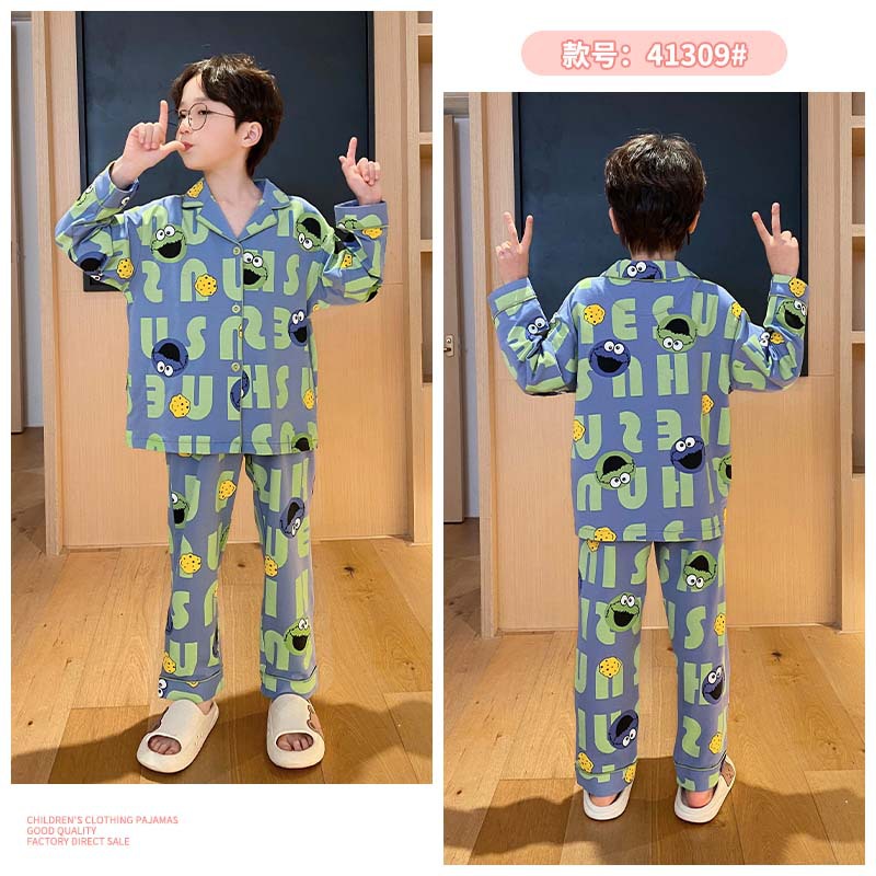 2025 새로운 어린이 잠옷 봄과 가을 소년 순면 긴팔 중대형 어린이 및 청소년 소년 가정 의류 여름스토어 가기
