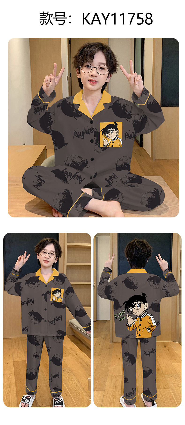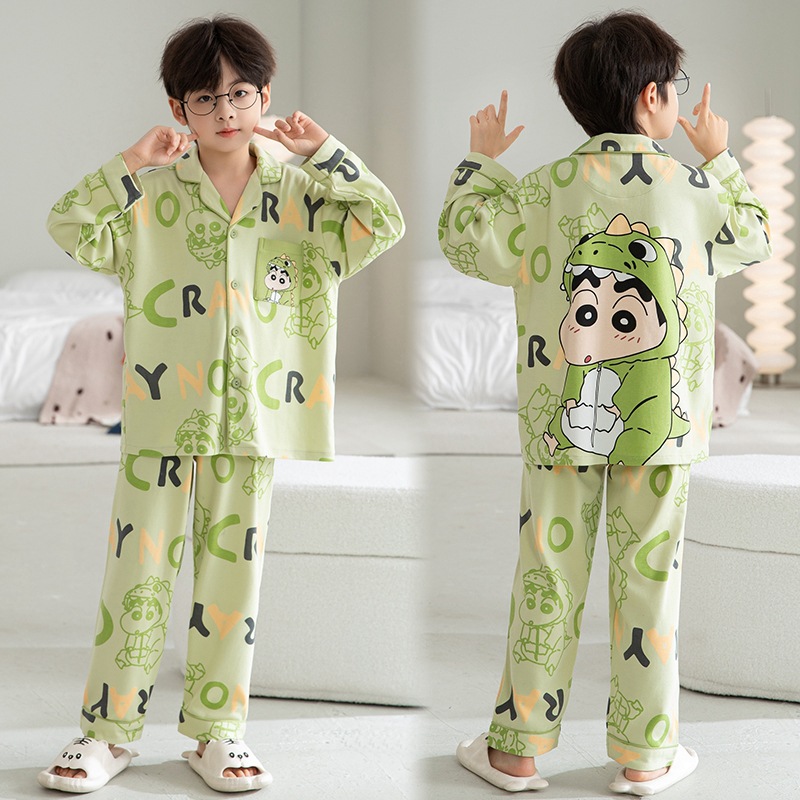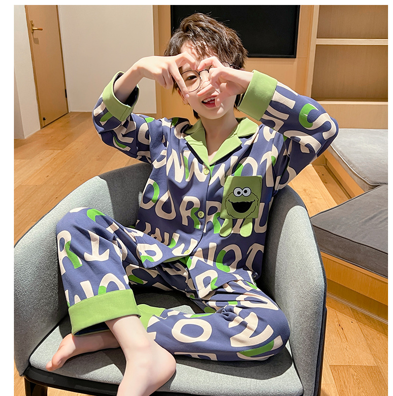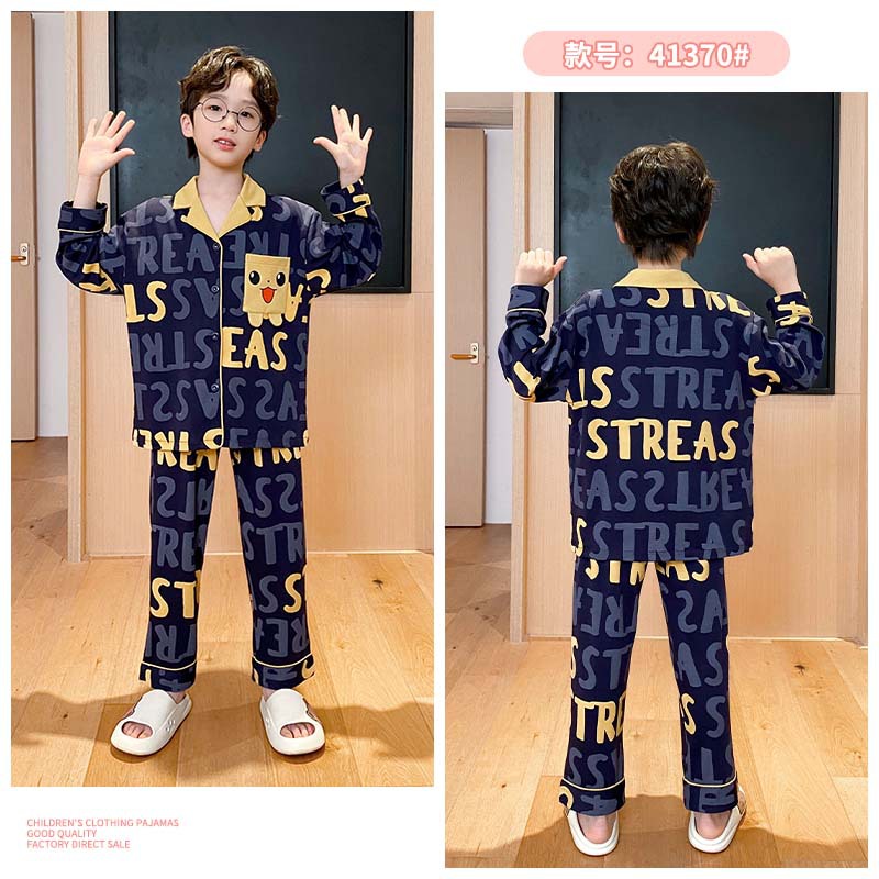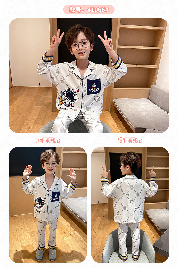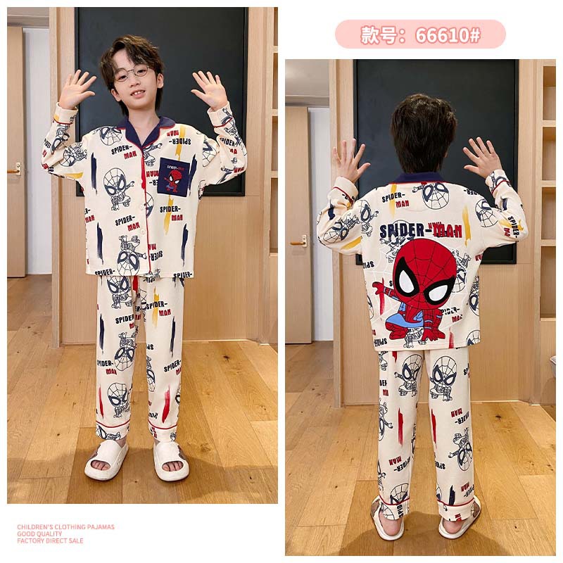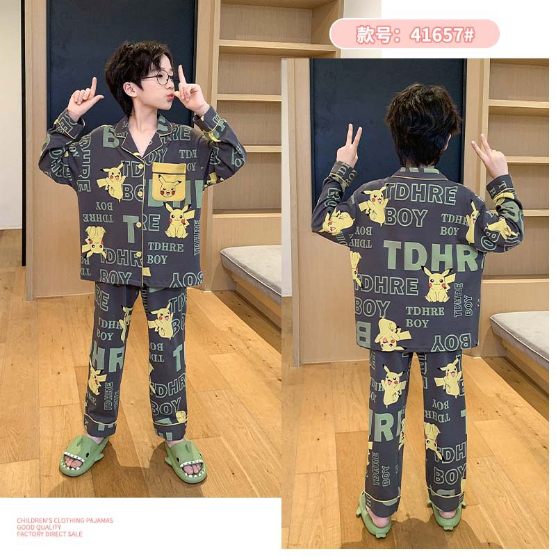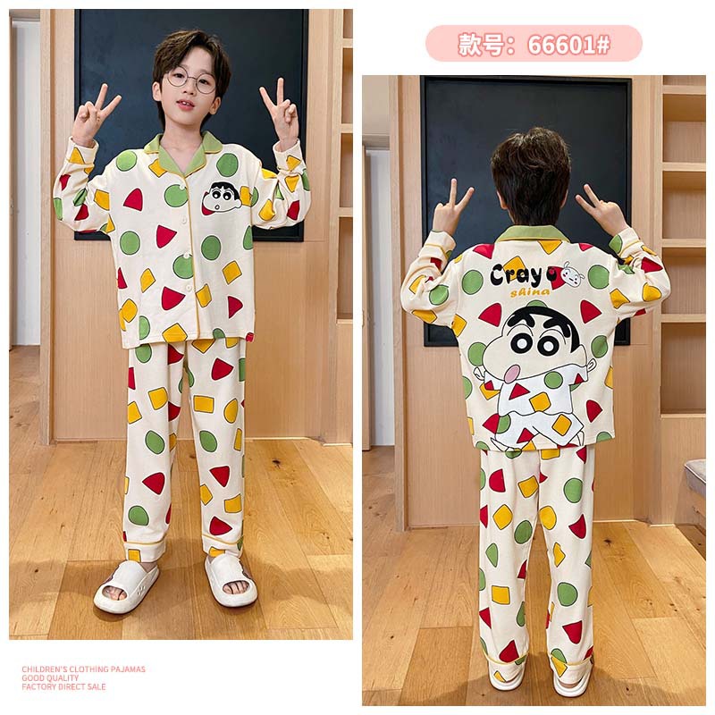 2025 새로운 어린이 잠옷 봄과 가을 소년 순면 긴팔 중대형 어린이 및 청소년 소년 가정 의류 여름스토어 가기