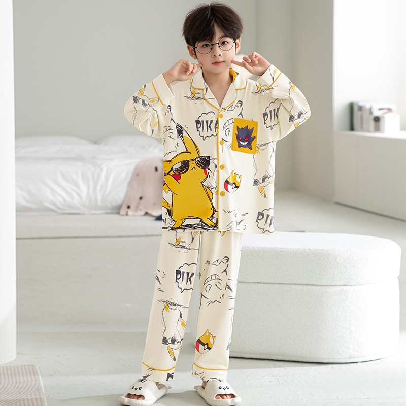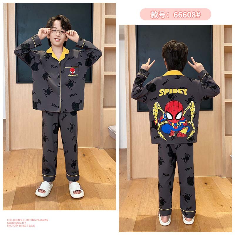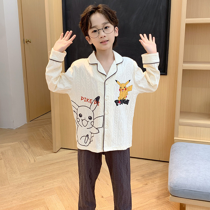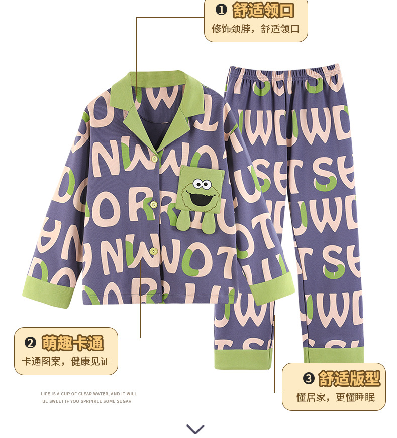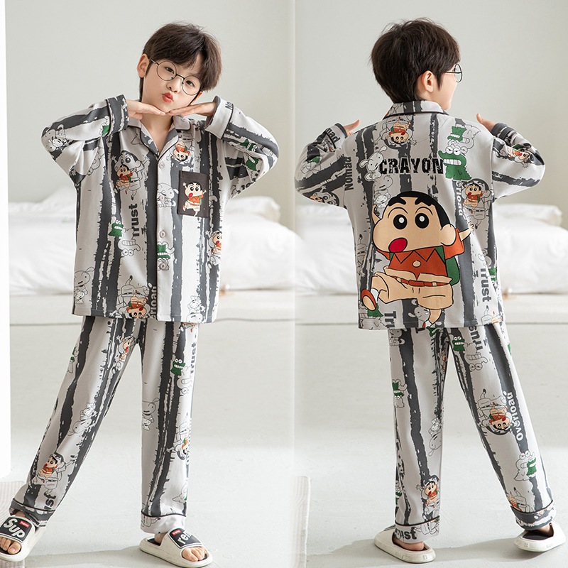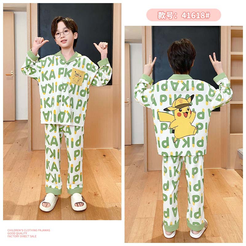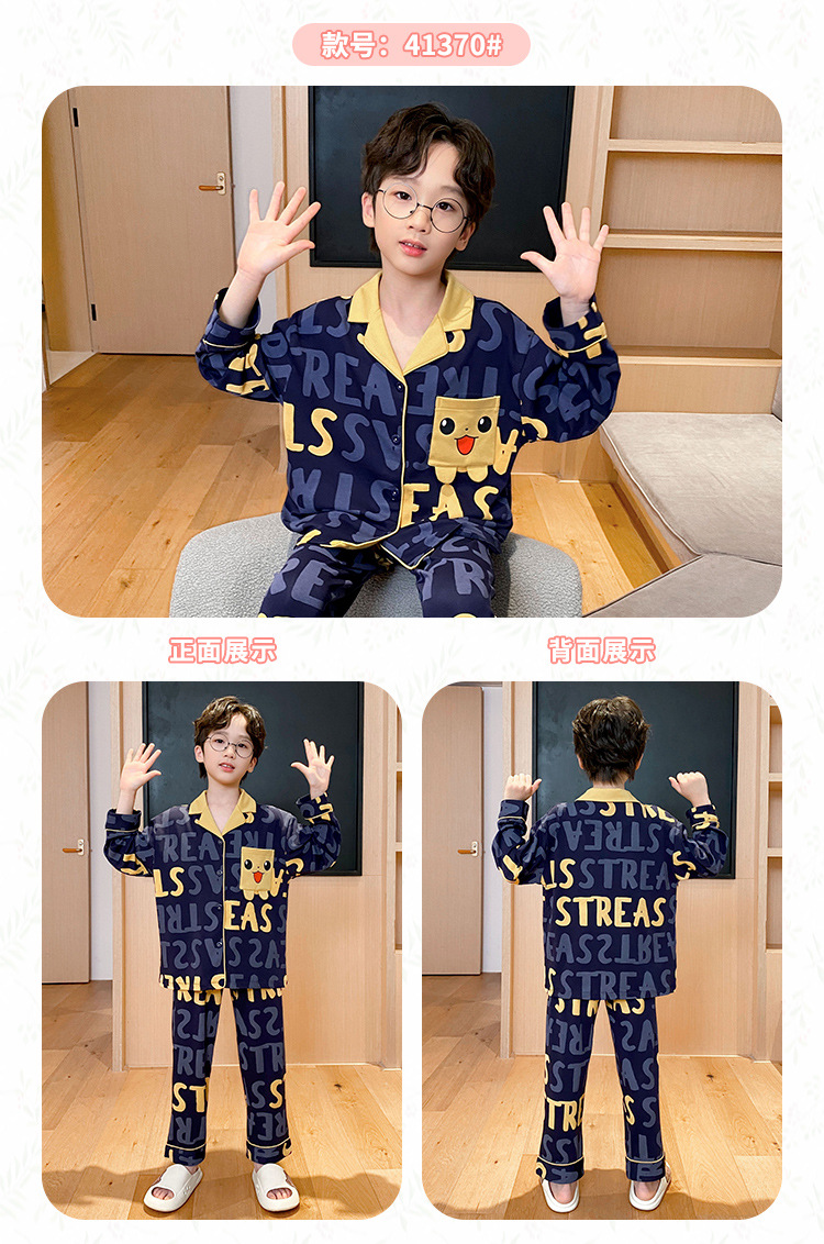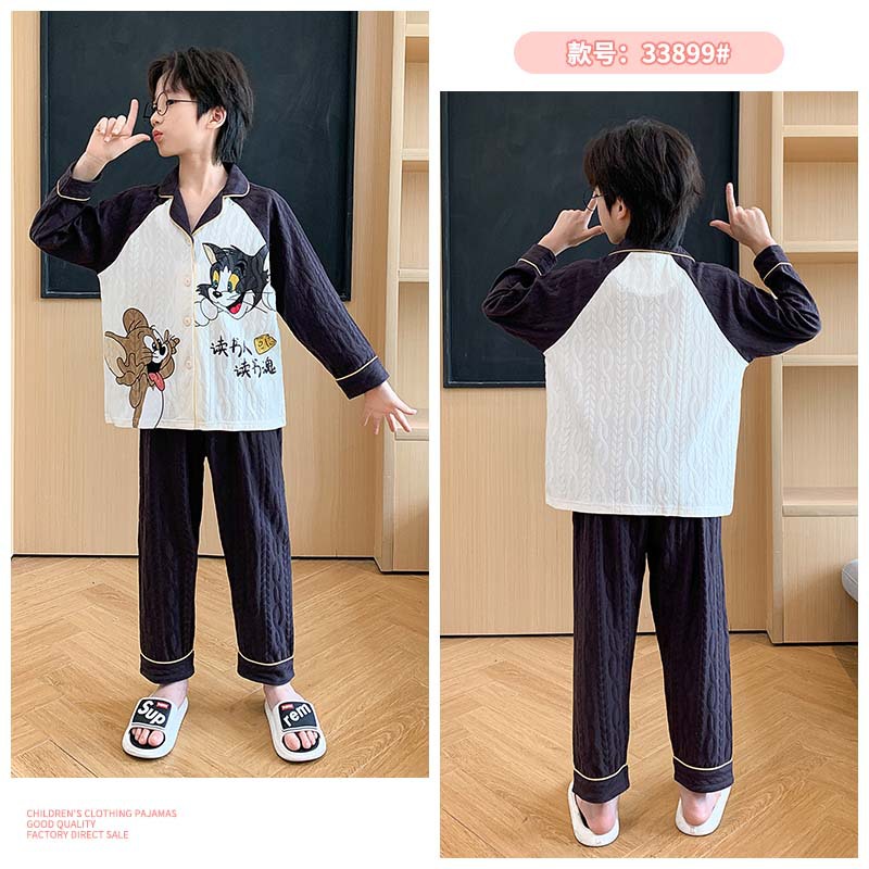 2025 새로운 어린이 잠옷 봄과 가을 소년 순면 긴팔 중대형 어린이 및 청소년 소년 가정 의류 여름스토어 가기