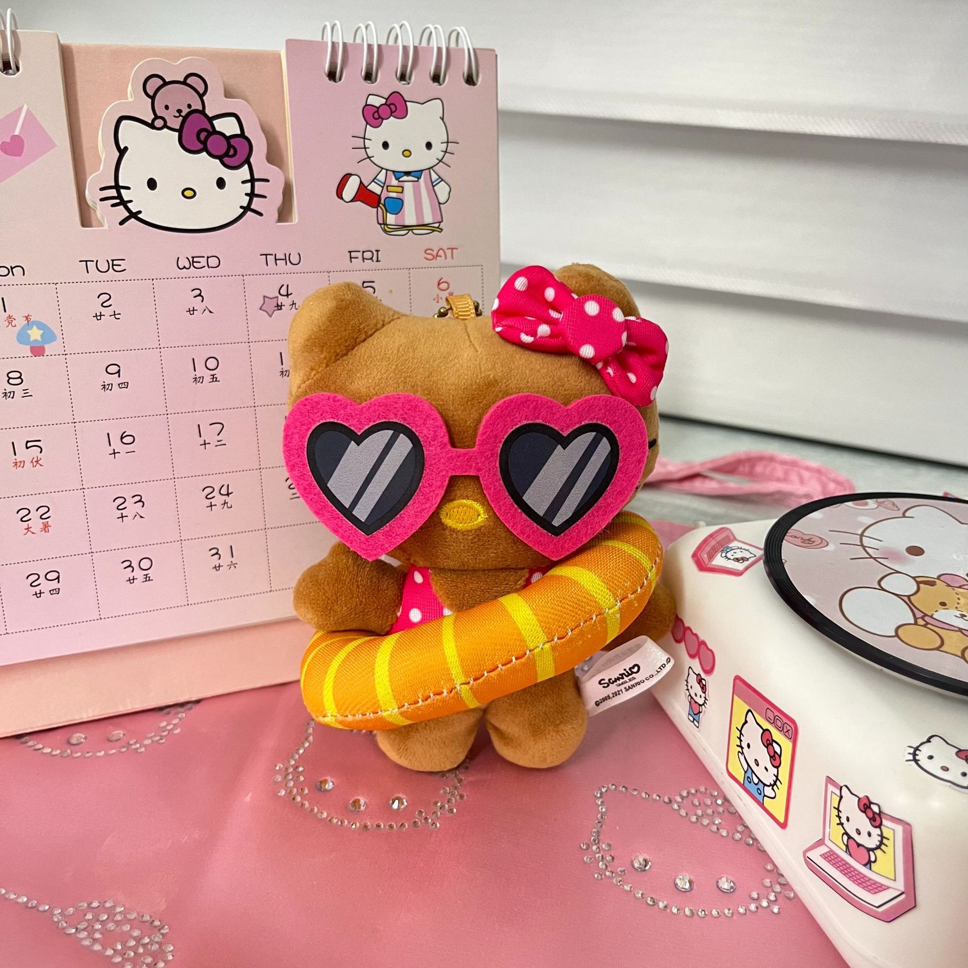 만화 애니메이션 선글라스 수영 튜브 검정 가죽 KT 키체인 장식 인형 소녀 배낭 장식용 작은 인형스토어 가기