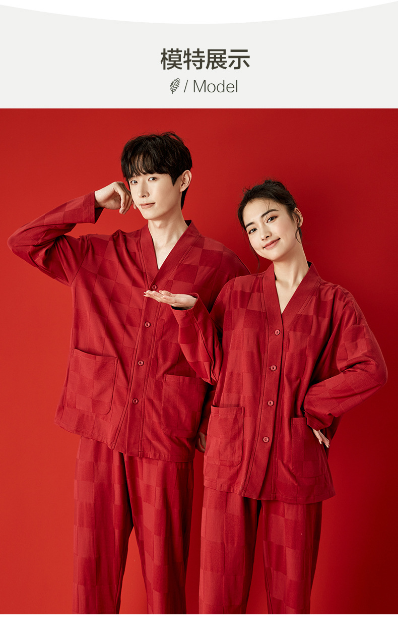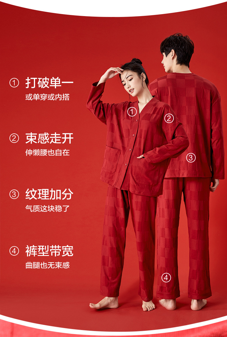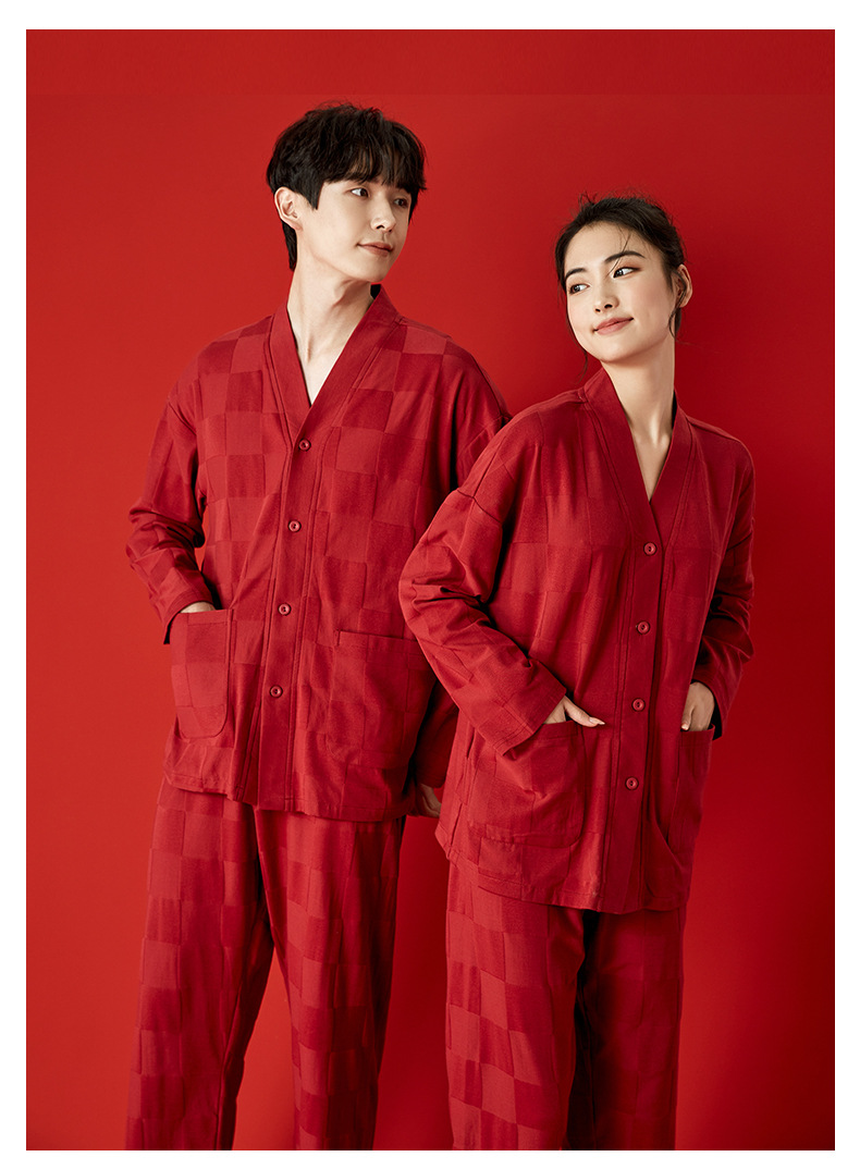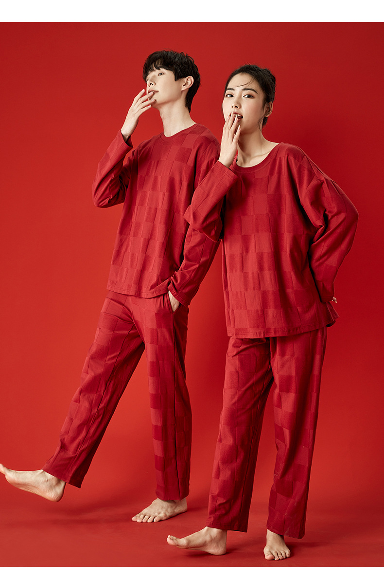 젊은이들을 위한 봄의 붉은 커플 잠옷, 남성용과 여성용, 고급스러운 긴팔 바지, 결혼식을 위한 홈웨어스토어 가기