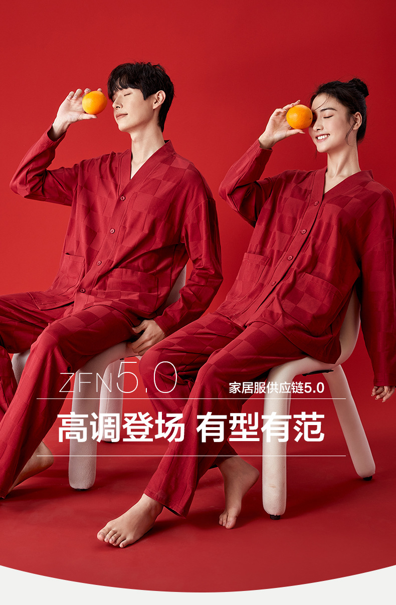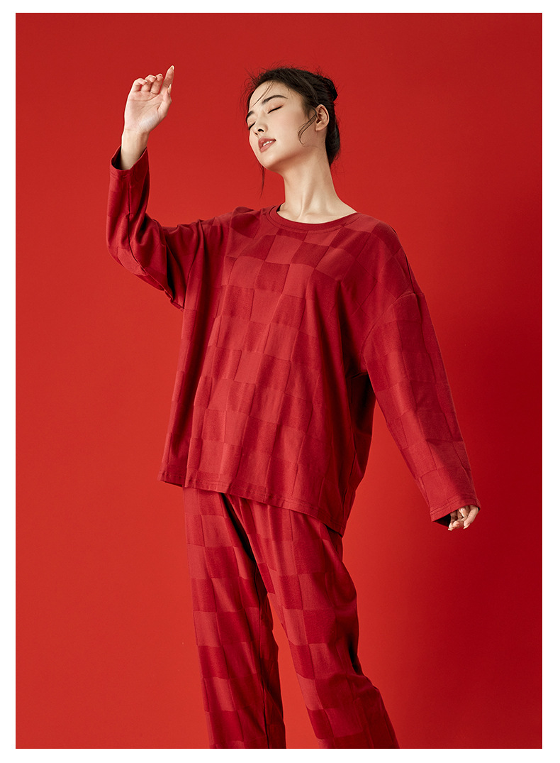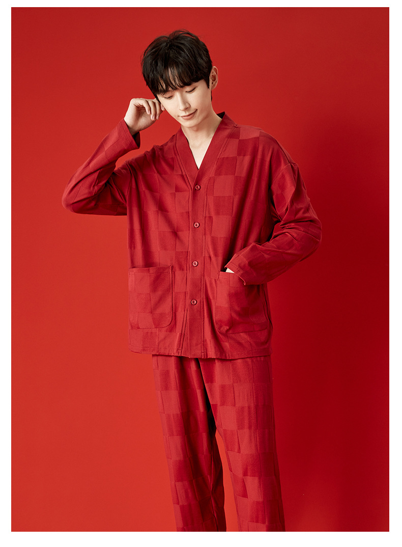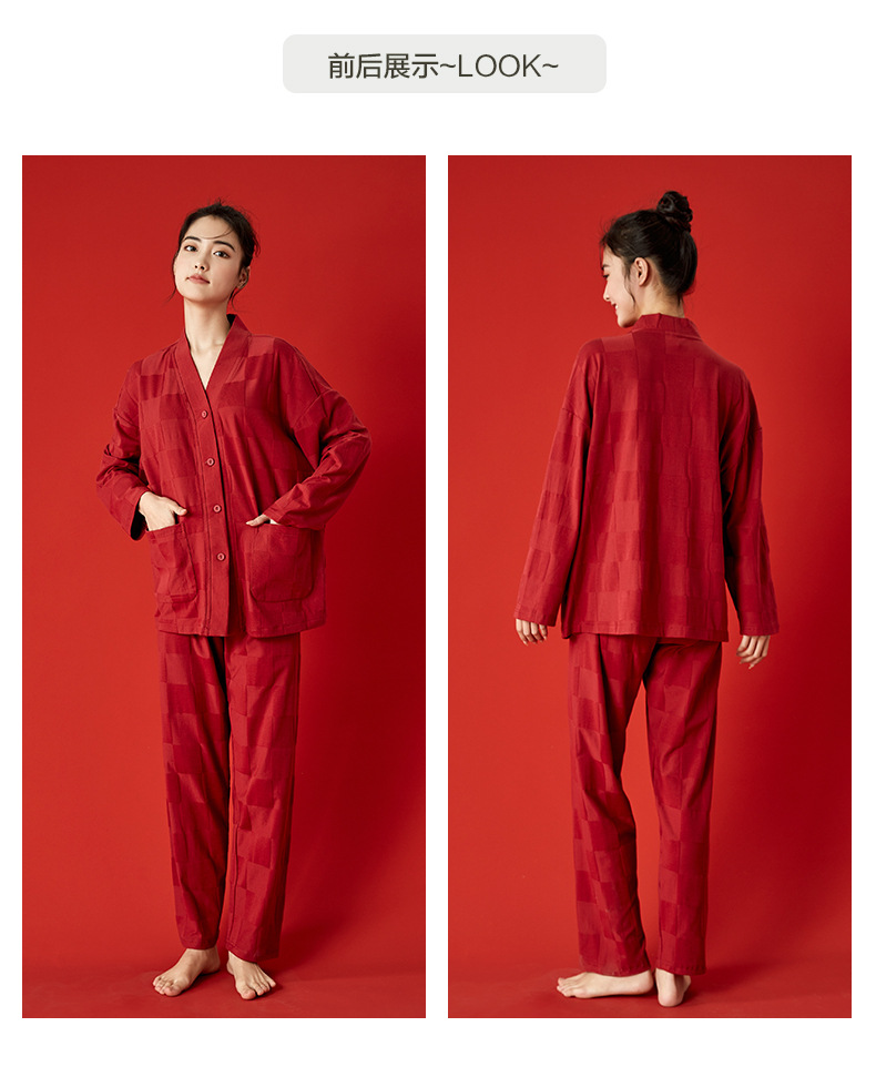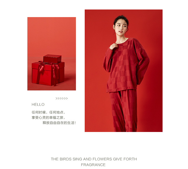 젊은이들을 위한 봄의 붉은 커플 잠옷, 남성용과 여성용, 고급스러운 긴팔 바지, 결혼식을 위한 홈웨어스토어 가기