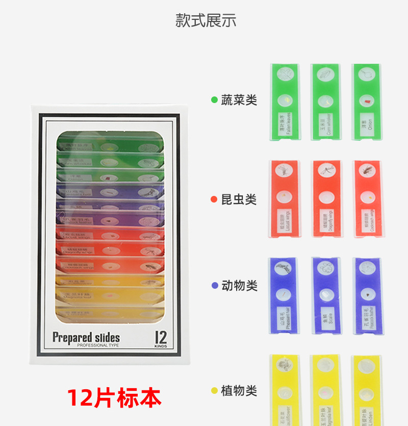 어린이 현미경 동물 및 식물 곤충 표본 슬라이드 학생 과학 실험 장비 교육 조기 교육인지 장난감