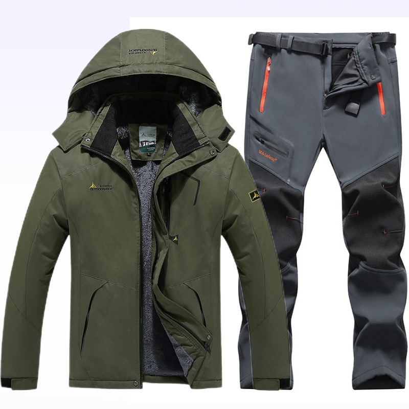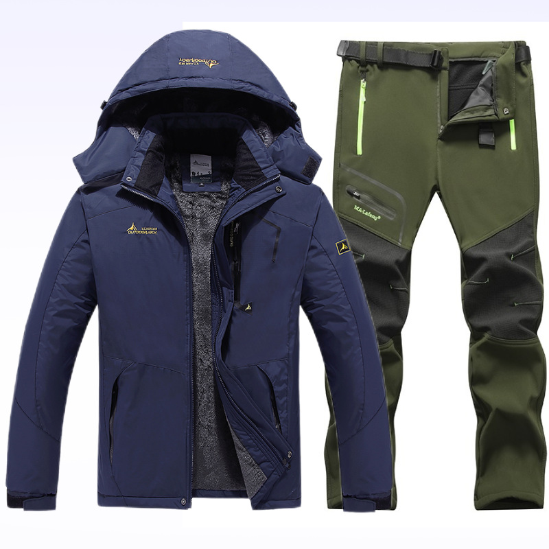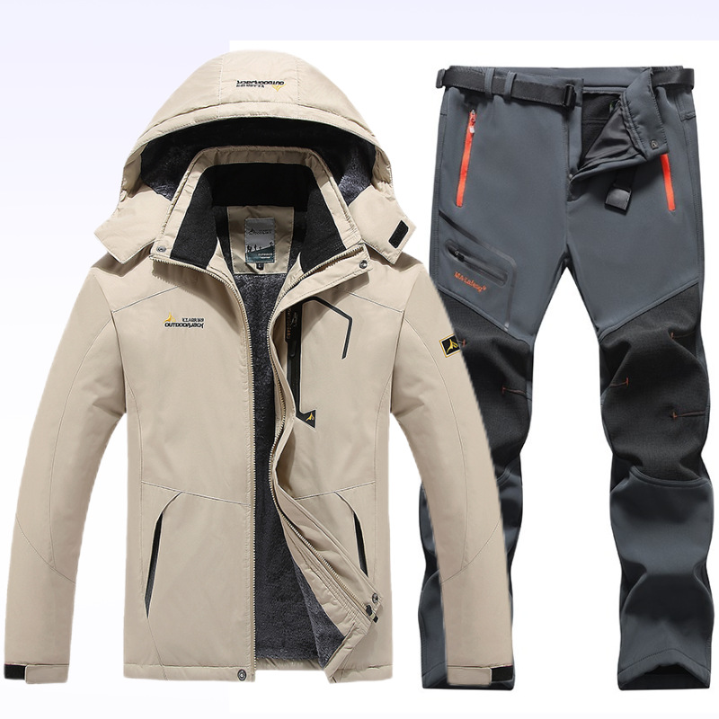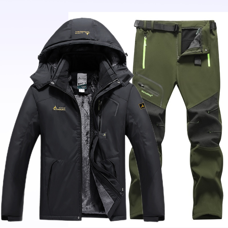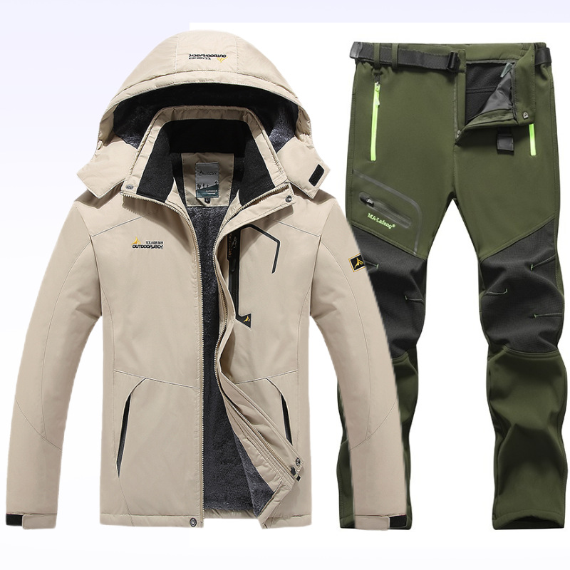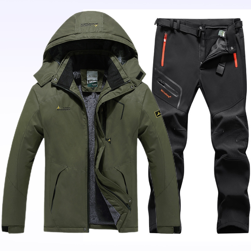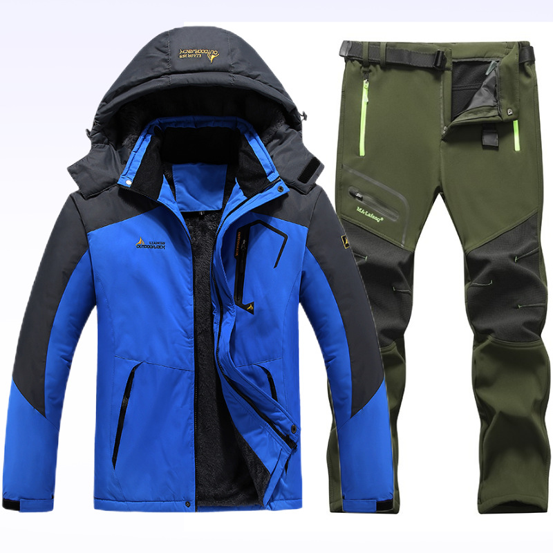 아마존 커플 야외 자켓 세트 등산 세트 냉간 따뜻한 재킷 자켓 기모 두꺼운 코튼 패딩 남성