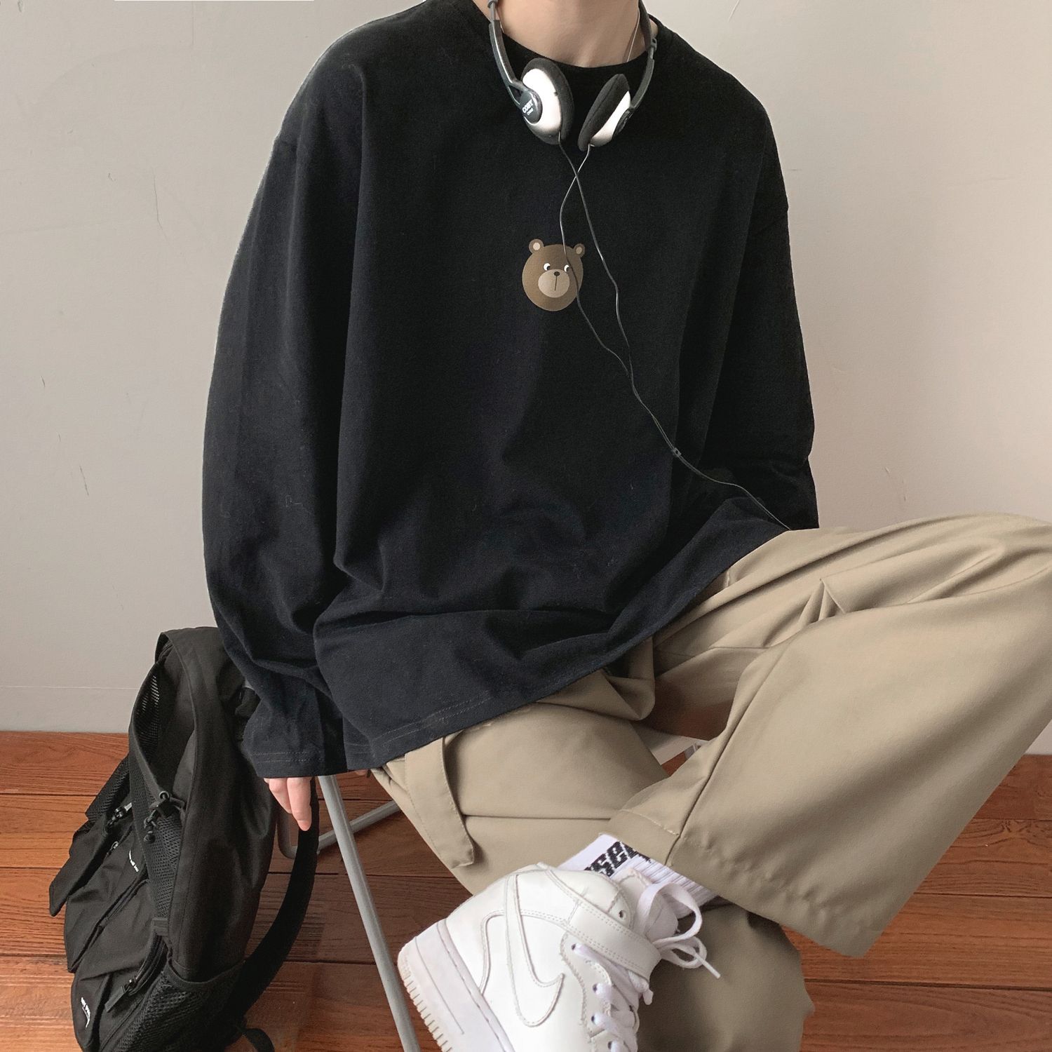 긴팔 티셔츠 남성용 느슨한 홍콩 스타일 트렌디 인 단순 인쇄 티셔츠 얇은 캐주얼 커플의 올매치 베이스 셔츠스토어 가기