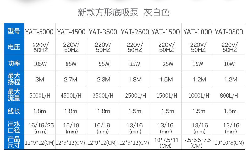 • 사각 바닥 흡입 펌프 10W 800L (베어 펌프)
