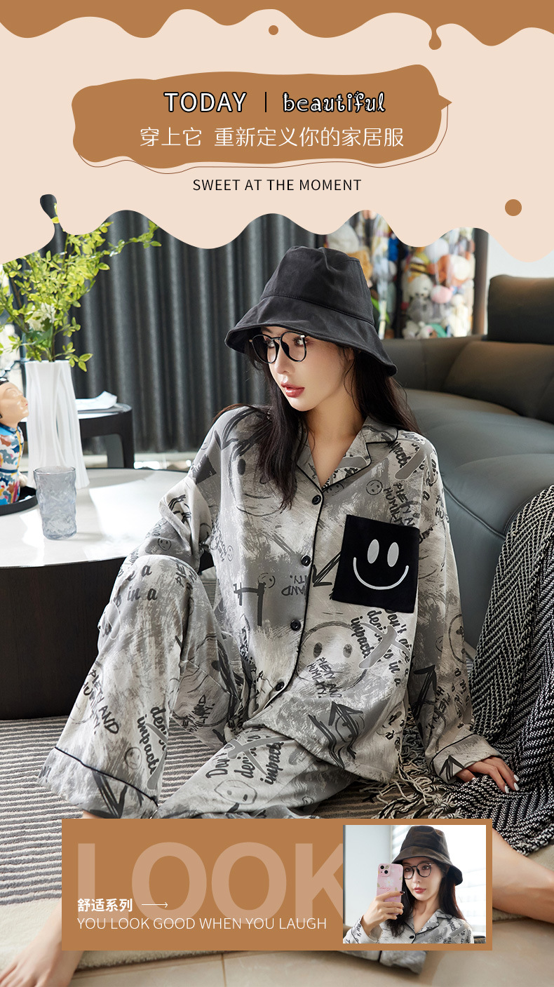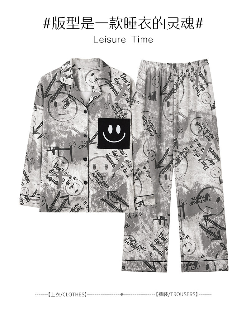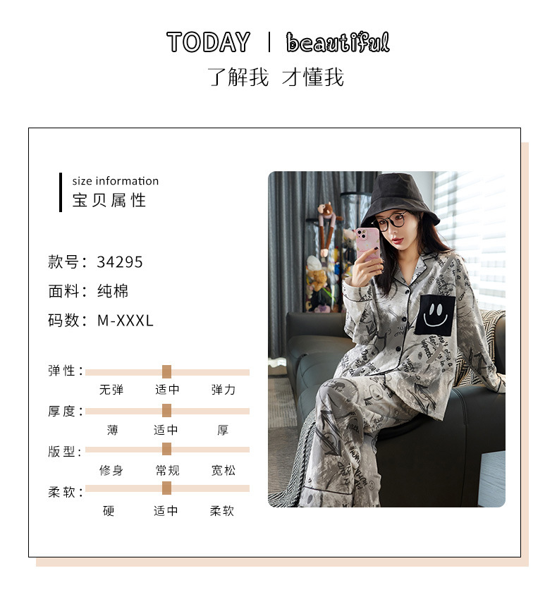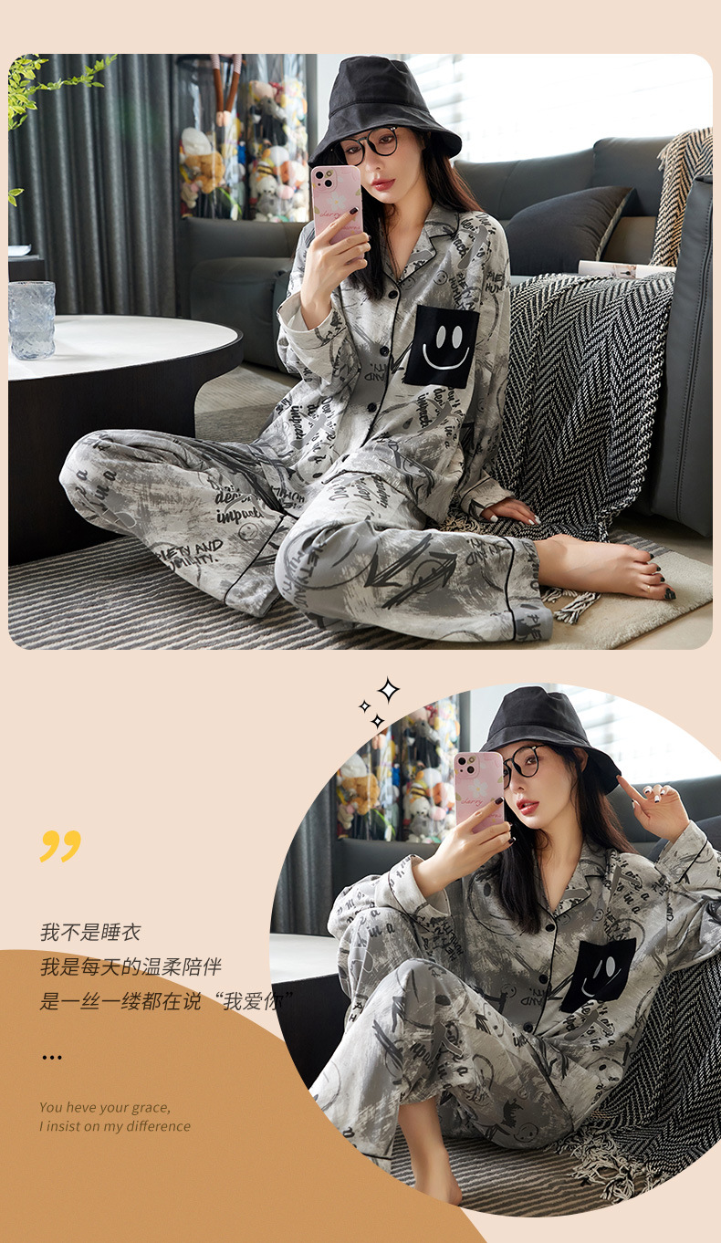 봄과 가을 새로운 도착 파자마 여성용 카디건 옷깃 긴 소매 모조 면 바지 세트 만화 달콤한 집 옷스토어 가기