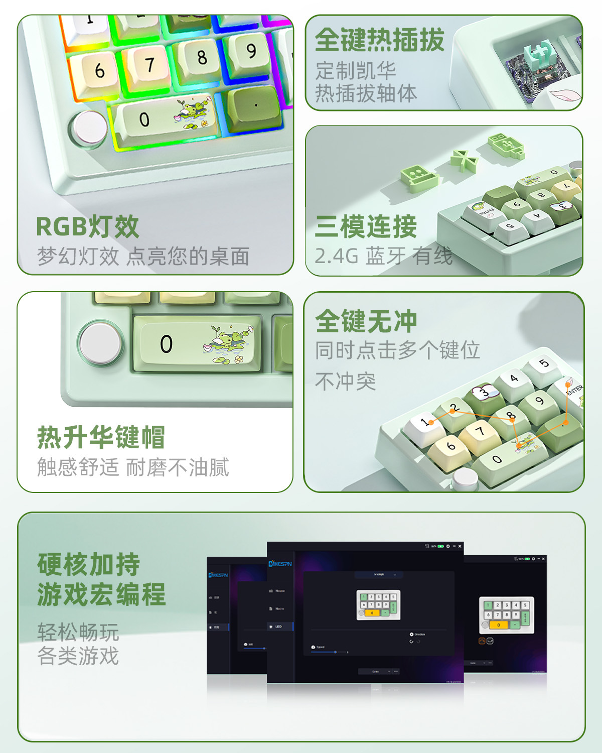 무선 3모드 핫스왑 가능 매크로 정의 RGB 게이밍 기계식 키패드, 최소 주문량 1개, 컴퓨터 액세서리, e스포츠 등급스토어 가기