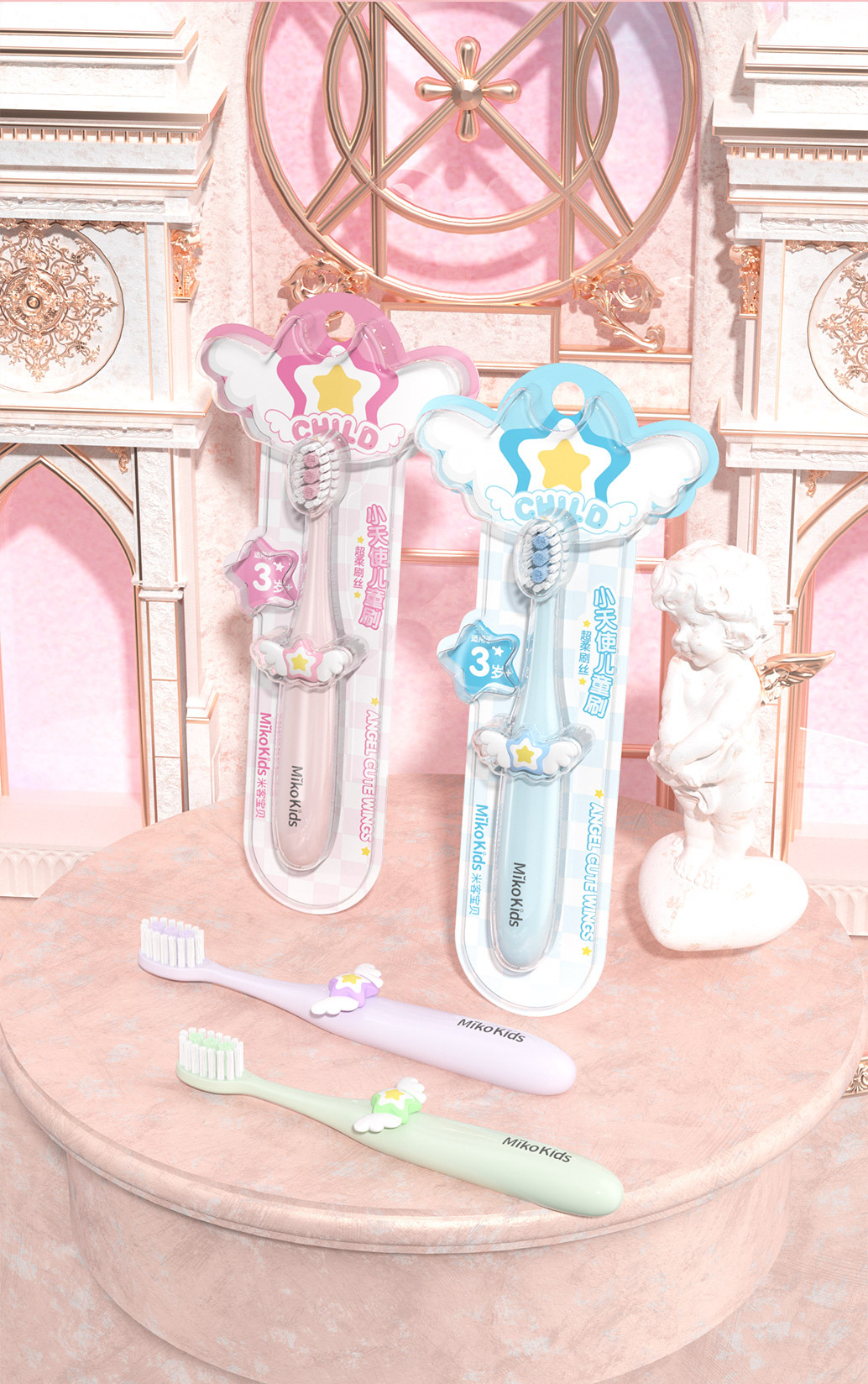 어린이용 부드러운 칫솔 가정용 잇몸 보호 귀여운 천사 이중모 세정 단일팩 제조업체 도매스토어 가기