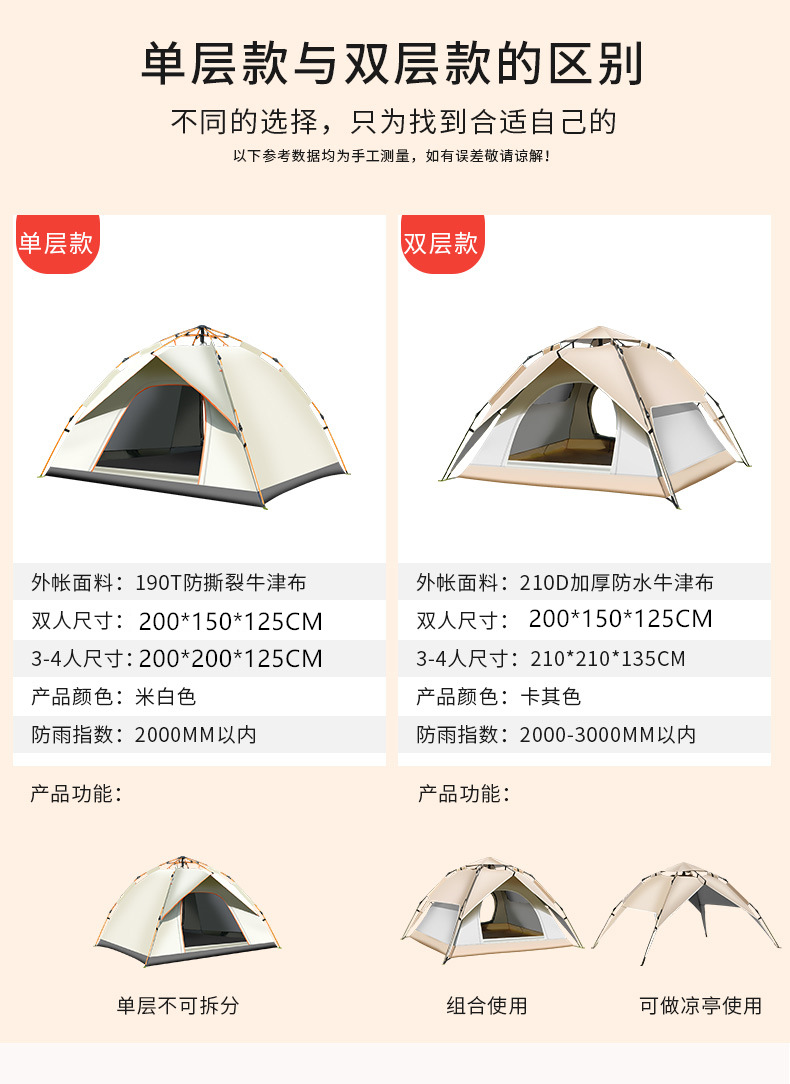 텐트 야외 캠핑 휴대용 접는 필드 장비 피크닉 캠핑 자동 두꺼운 비방과 선 스크린 세트
