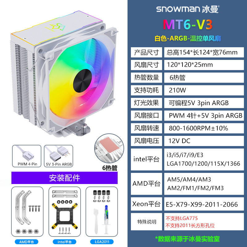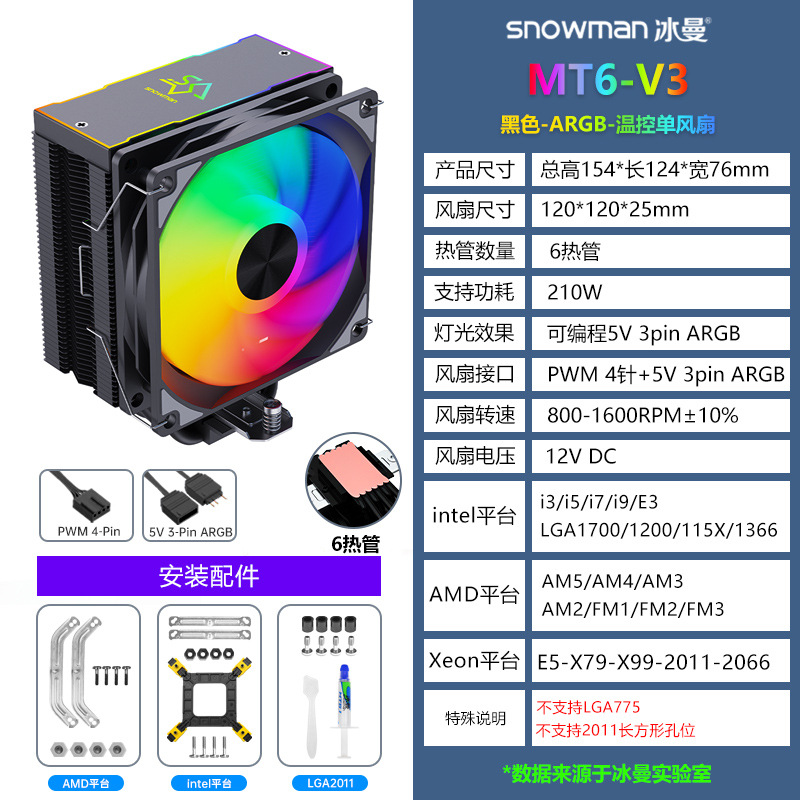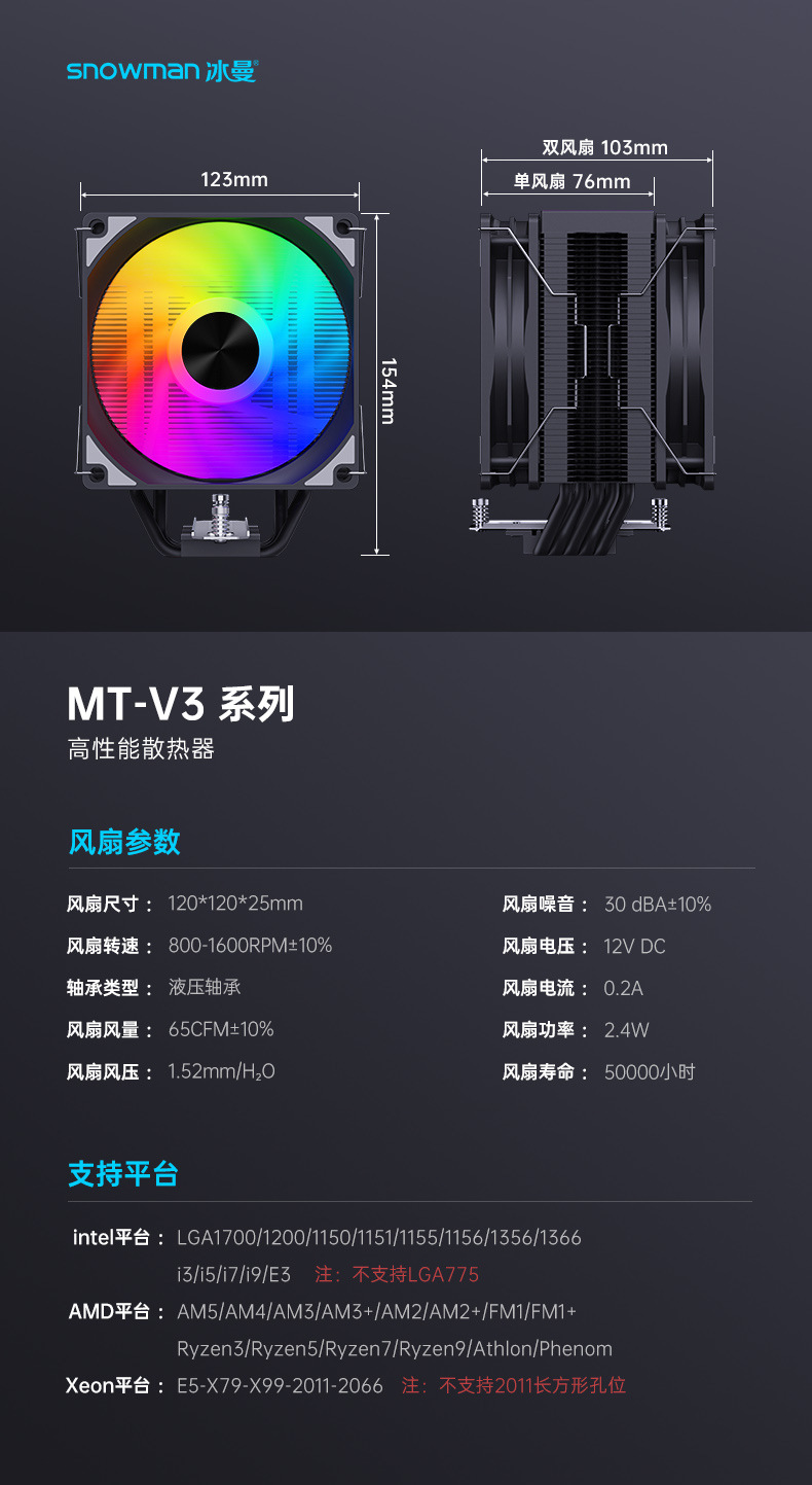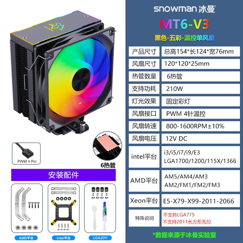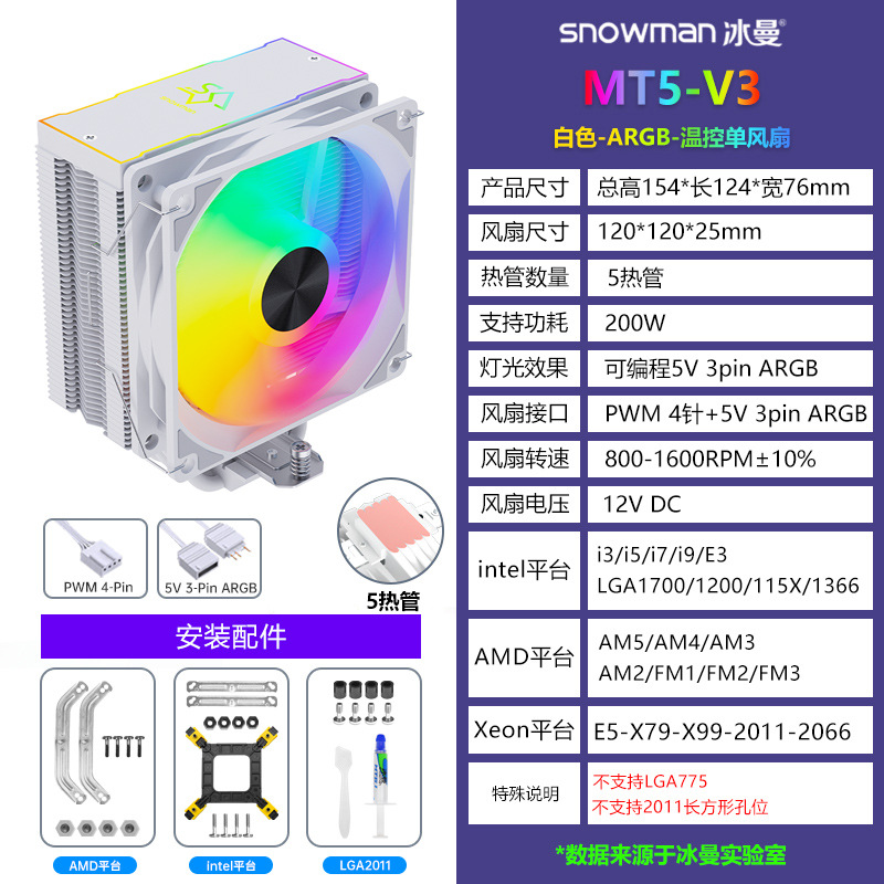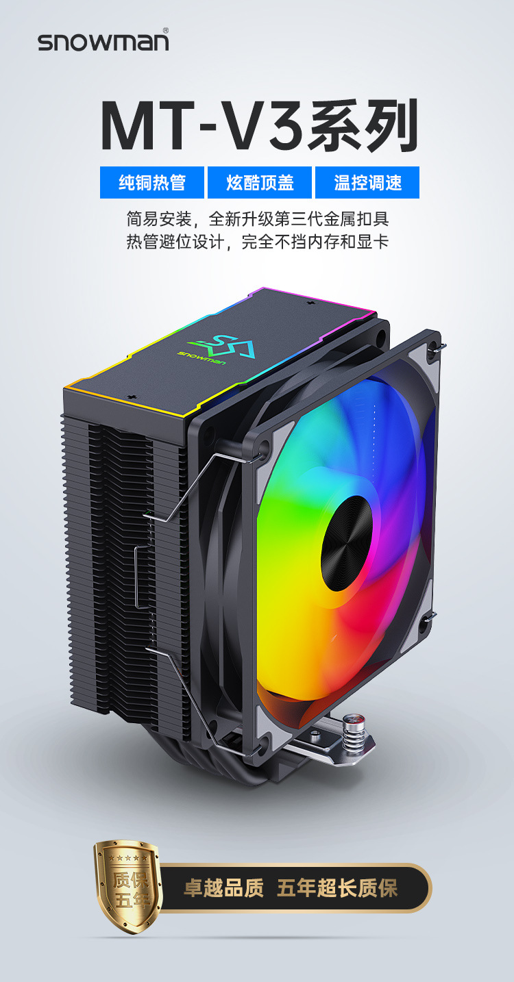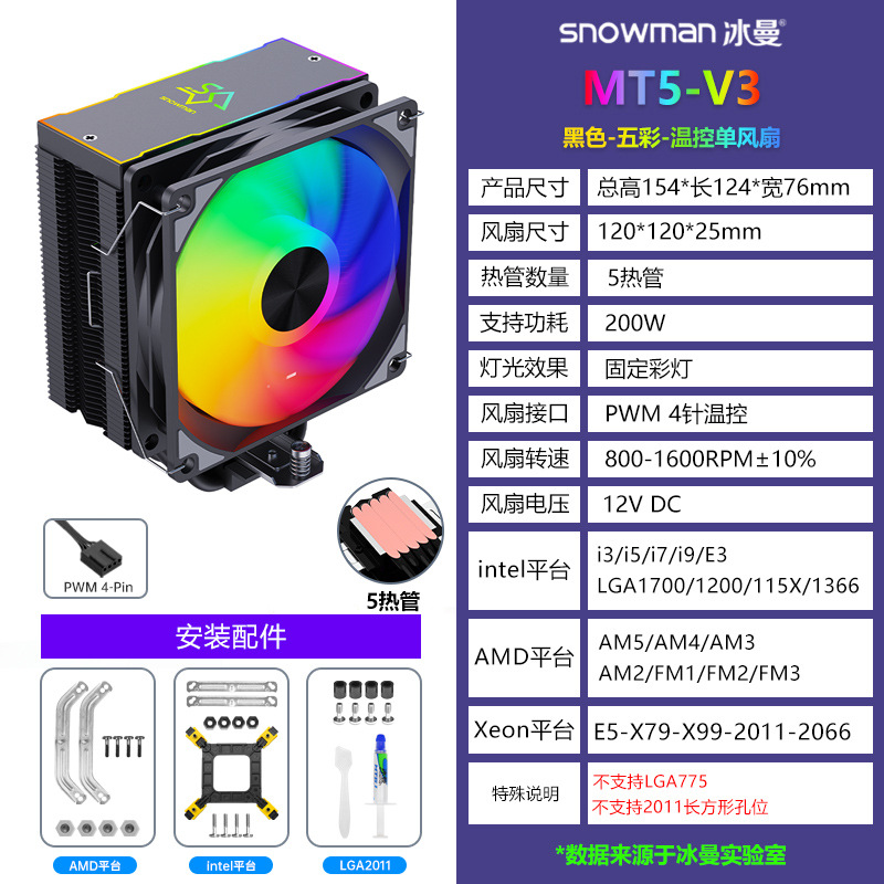SNOWMAN Bingman MT4-V3 공랭식 4 히트 파이프 CPU 라디에이터 1700 컴퓨터 X99 팬 2011AM4AM5스토어 가기