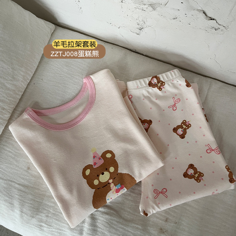 봄, 가을, 겨울 어린이 보물 세트 어린이 잠옷 투피스 속옷 양모 괄호 만화 홈 의류 도매