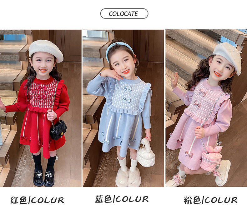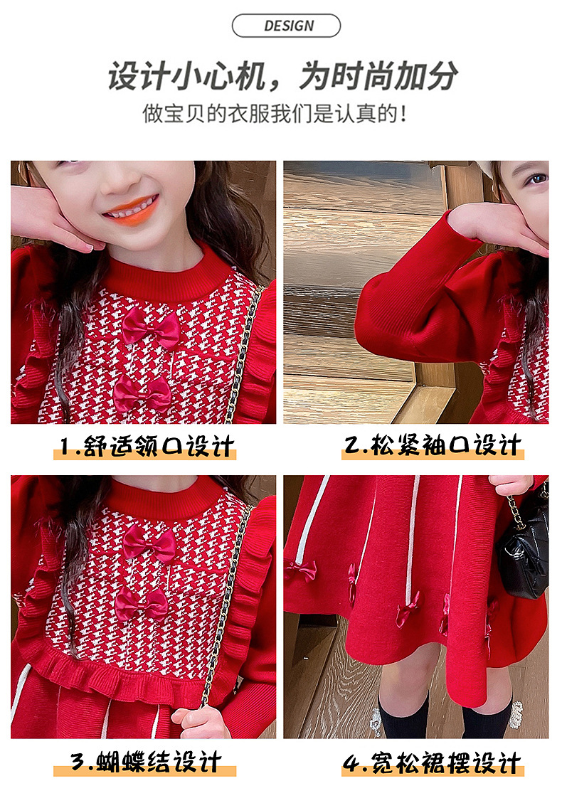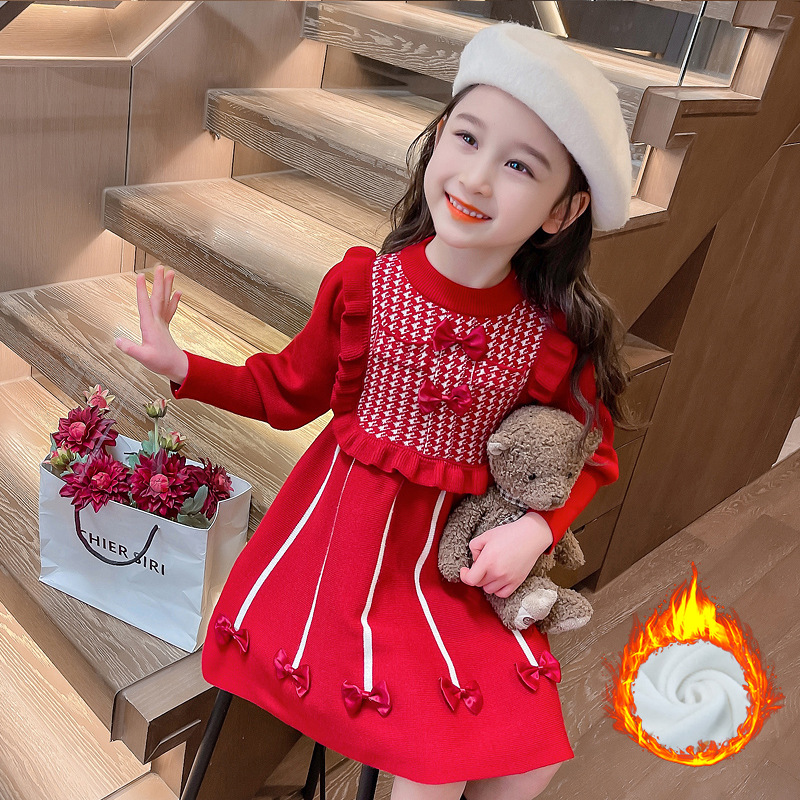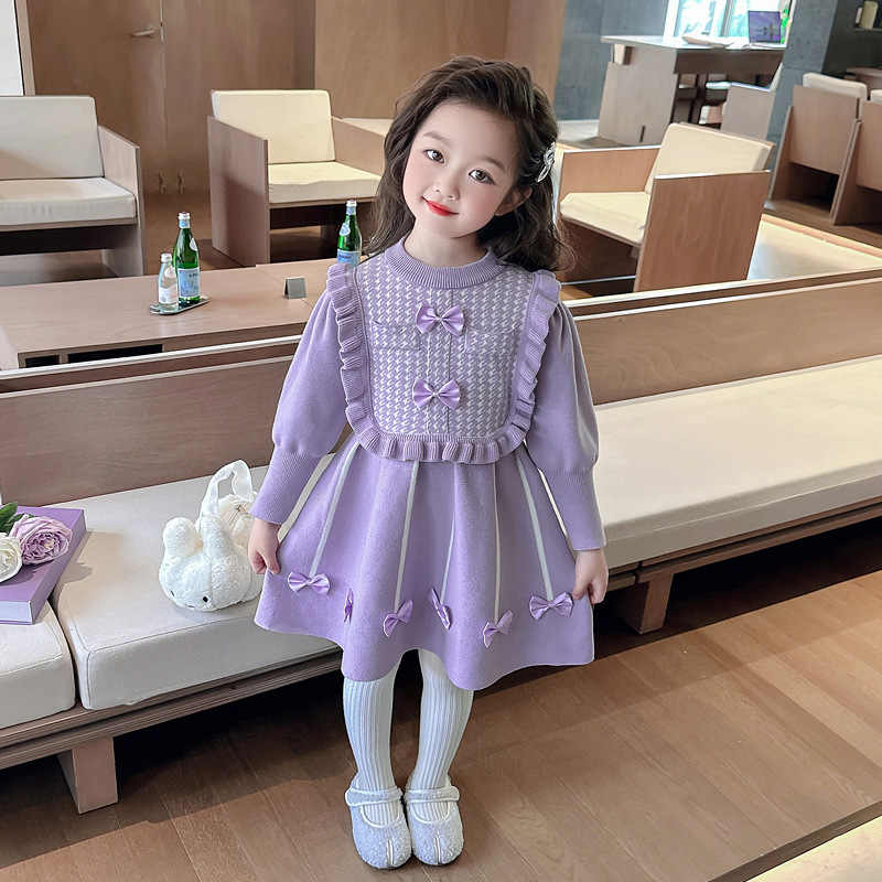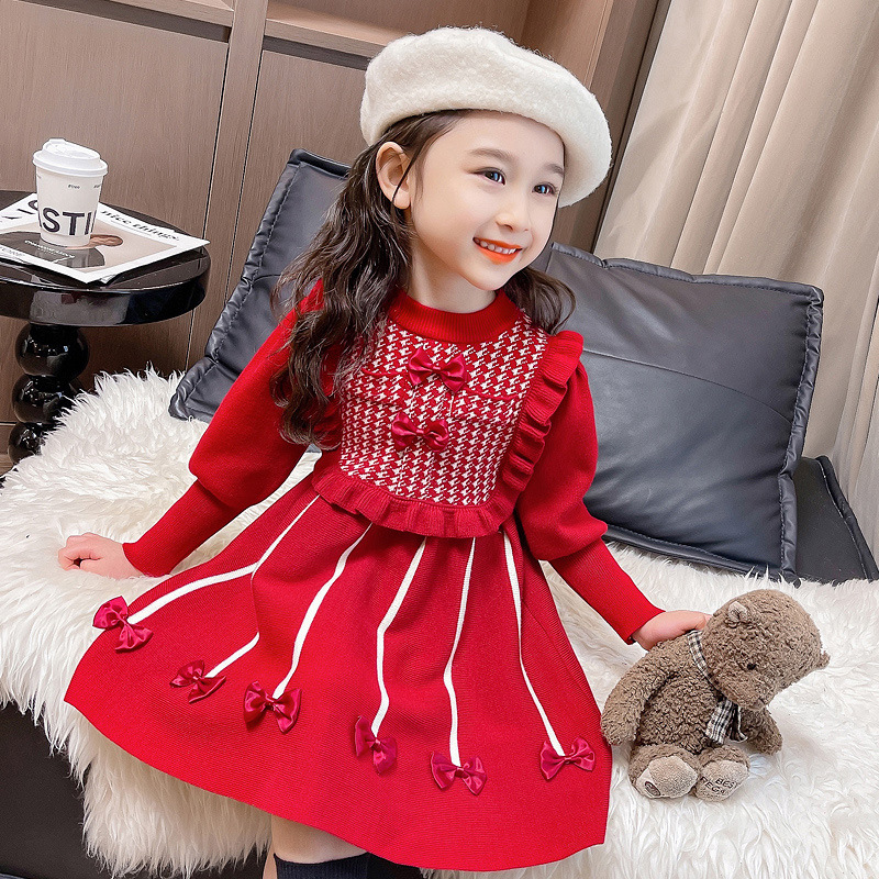 여아용 스웨터 가을 겨울 2025 신상 패션 어린 소녀 물떼새 격자무늬 나비 스웨터 드레스 유아용 니트웨어