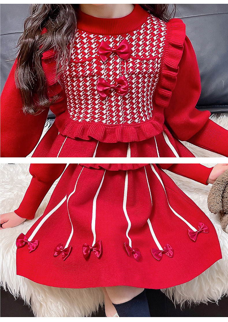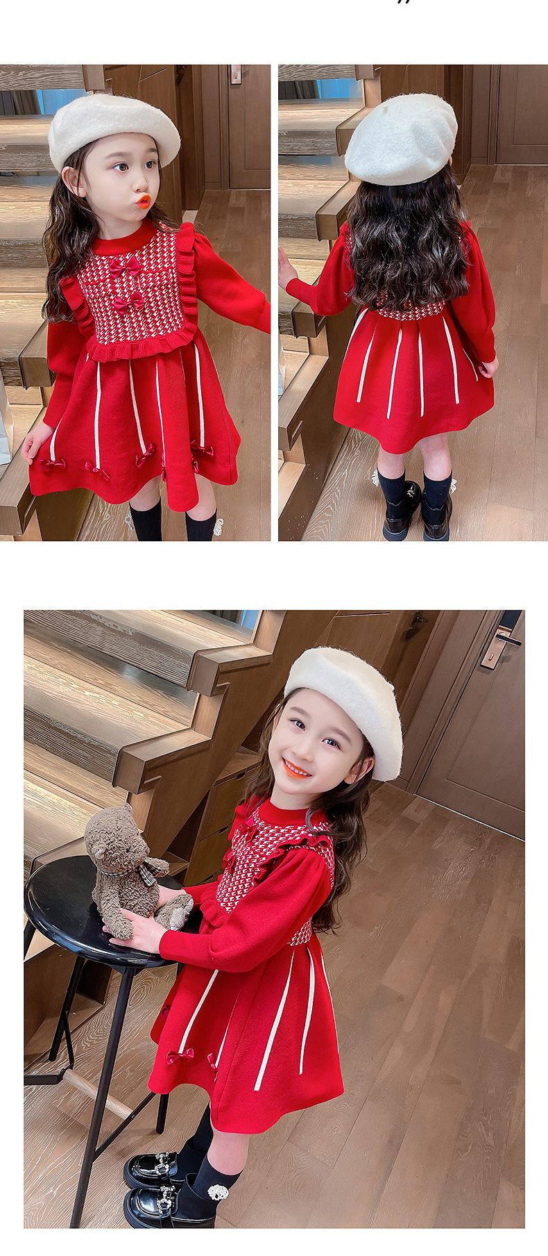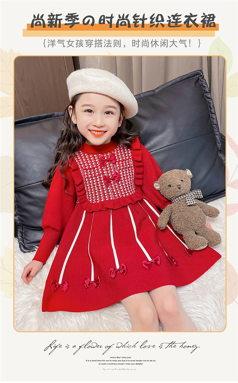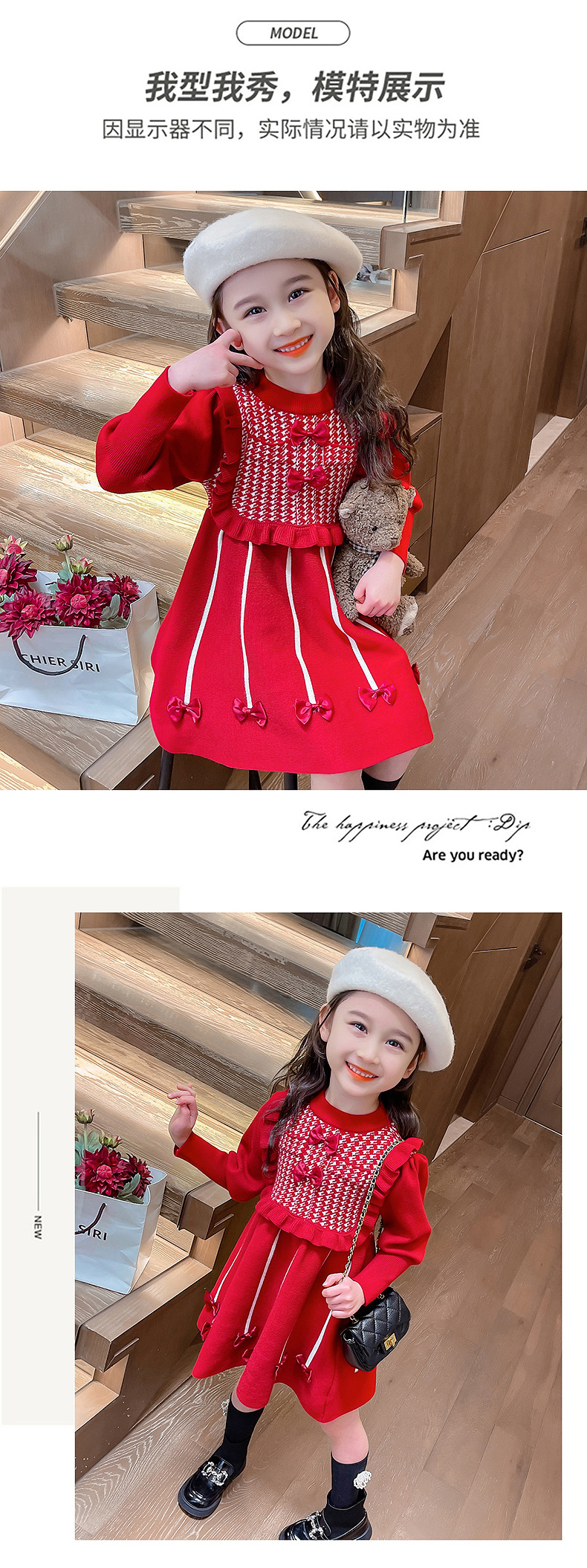 여아용 스웨터 가을 겨울 2025 신상 패션 어린 소녀 물떼새 격자무늬 나비 스웨터 드레스 유아용 니트웨어
