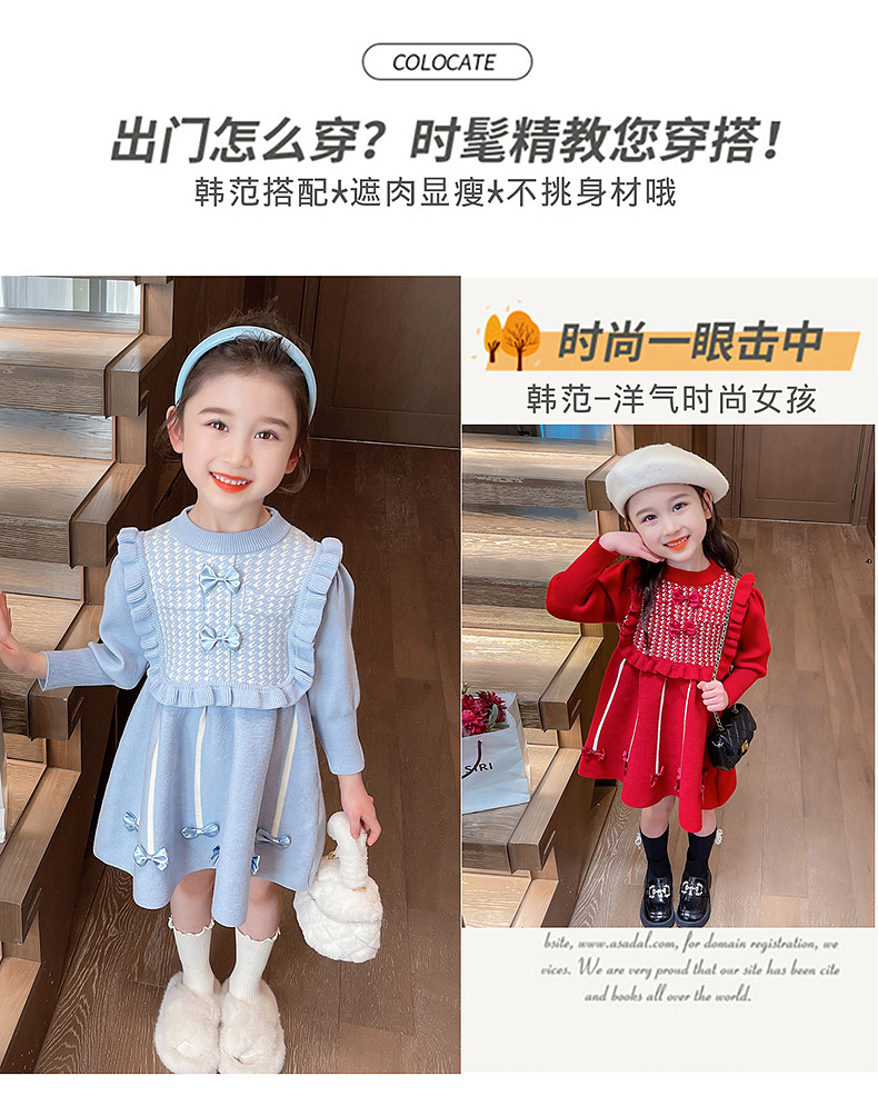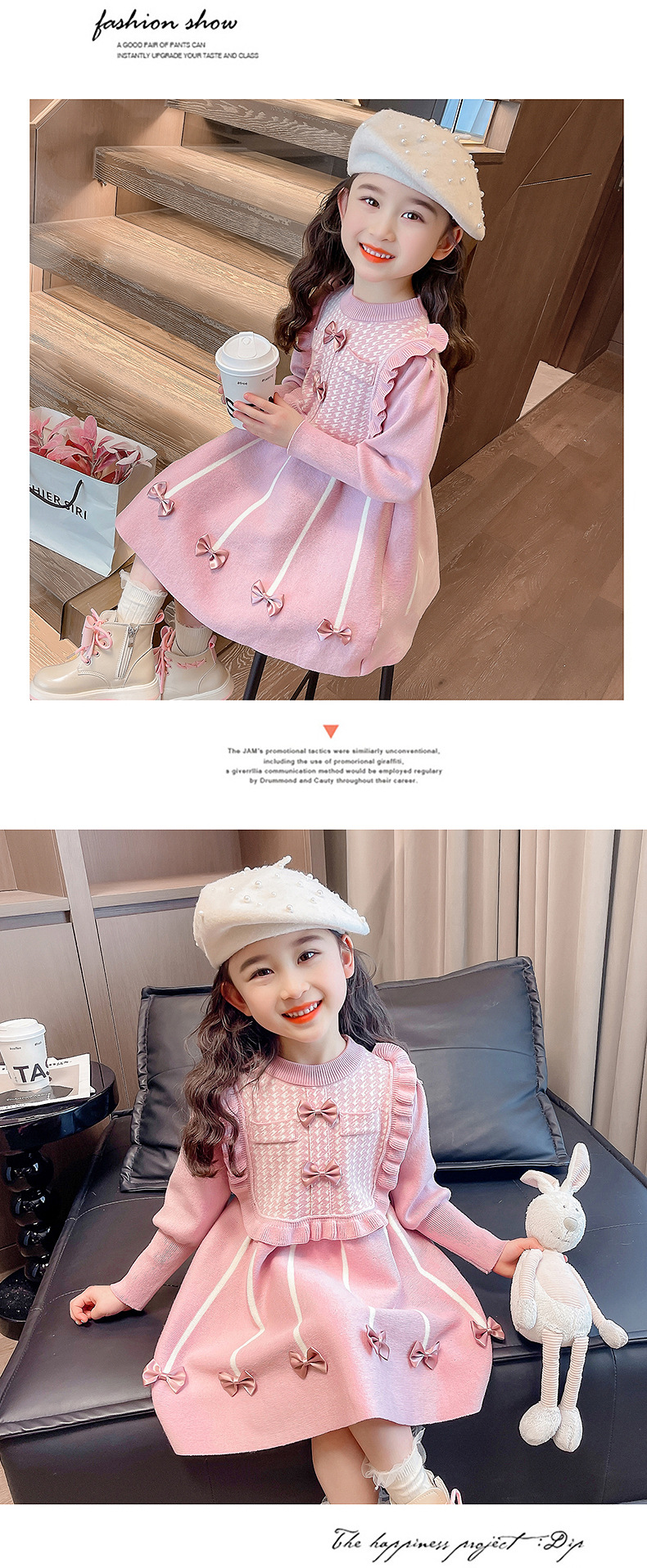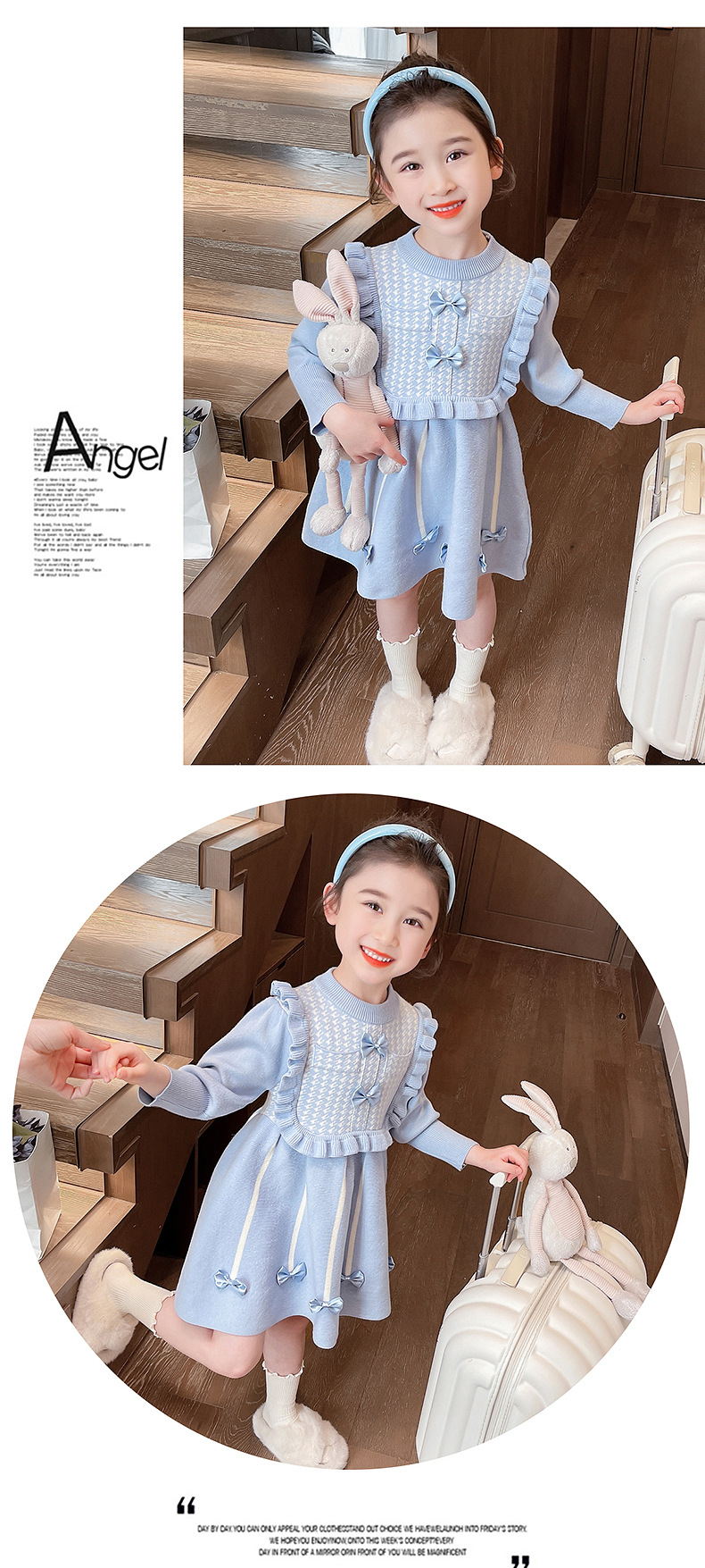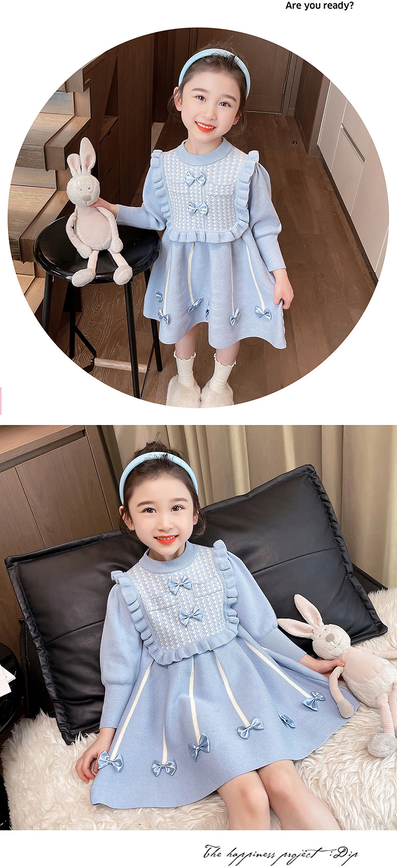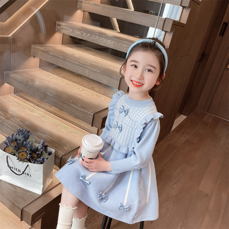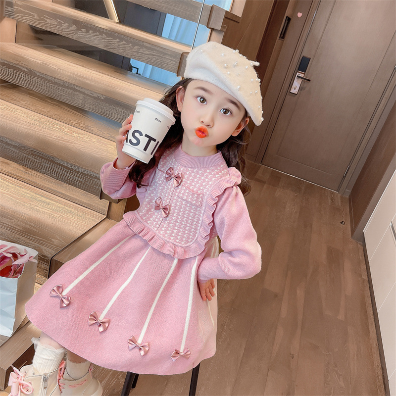 여아용 스웨터 가을 겨울 2025 신상 패션 어린 소녀 물떼새 격자무늬 나비 스웨터 드레스 유아용 니트웨어스토어 가기