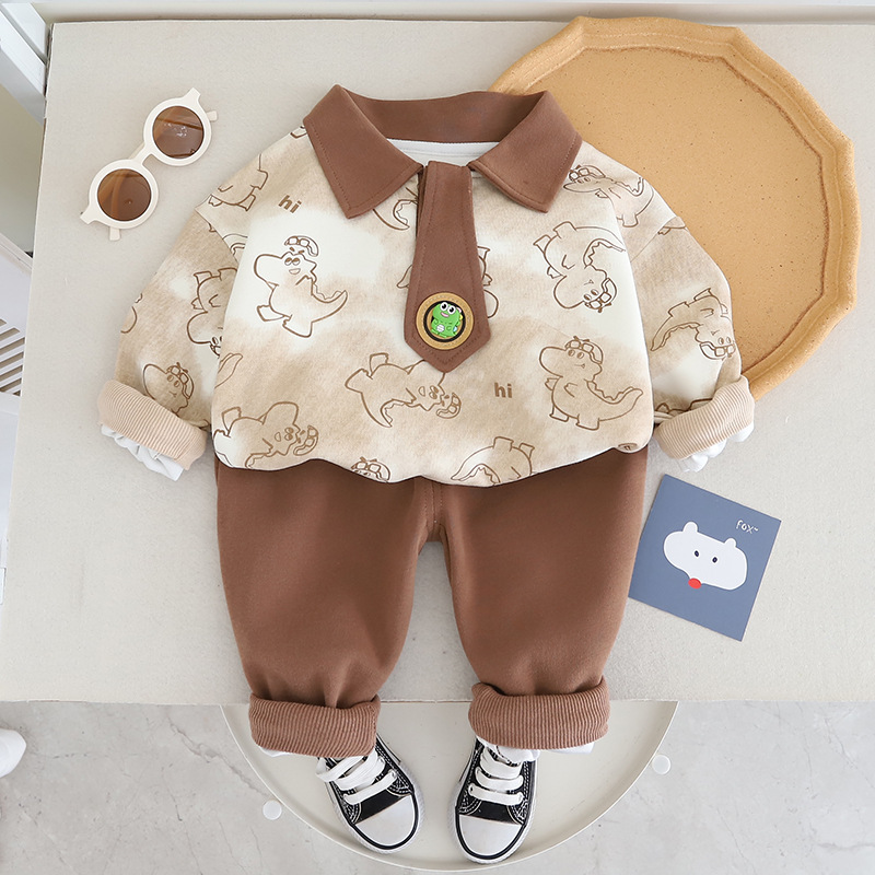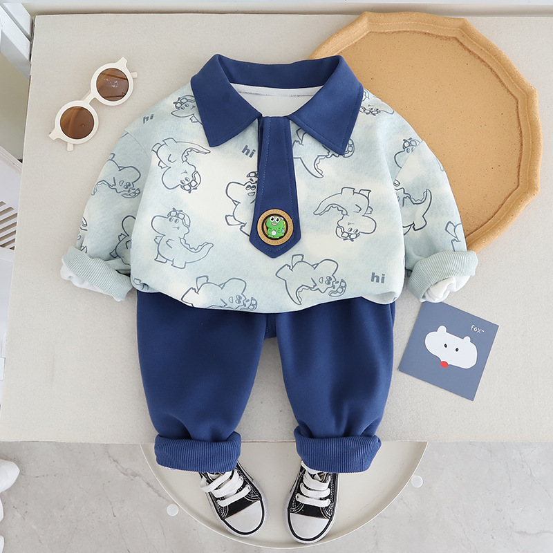 소년의 봄과 가을 세트 2024 새로운 아기 어린이 레저 아기 가을 원피스 서양식 긴 소매 운동복 2 조각 유행 세트스토어 가기