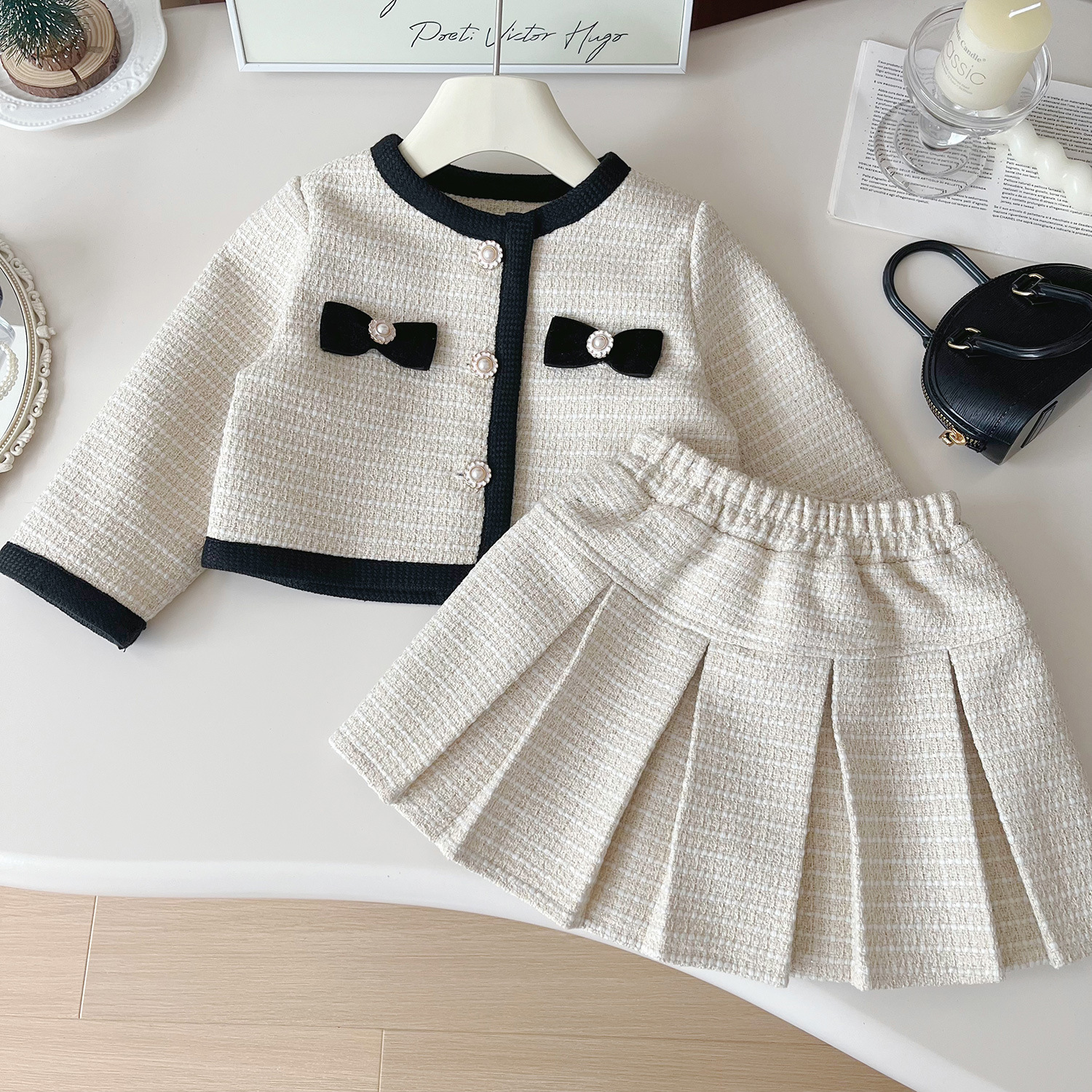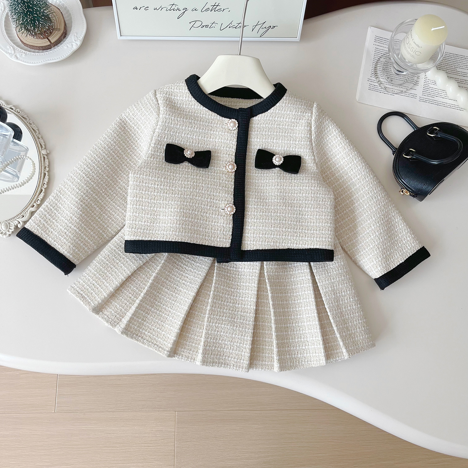 소녀 세트 2024 가을 새로운 한국 스타일 향기로운 스타일 카디건 재킷 스커트 세트 국경 머리