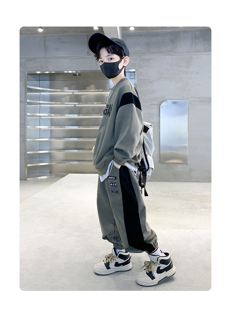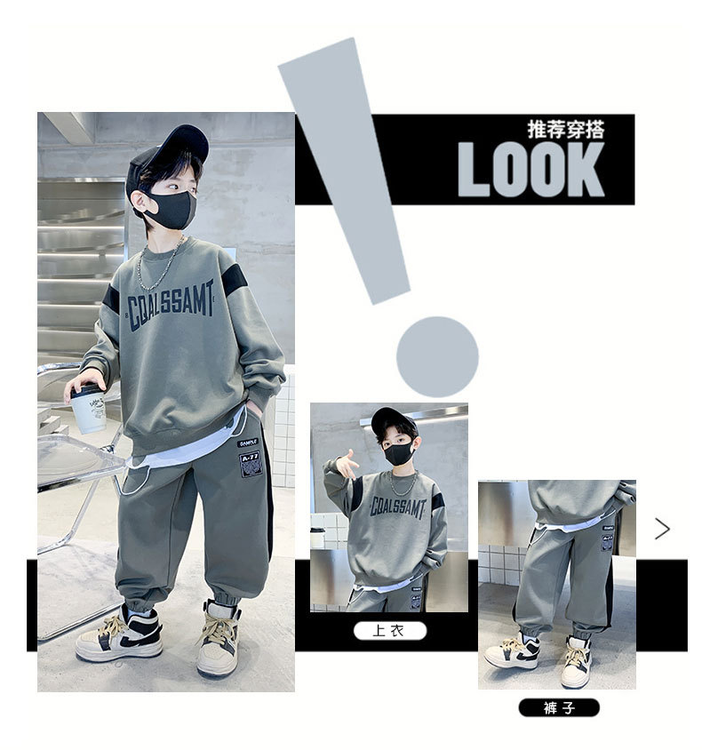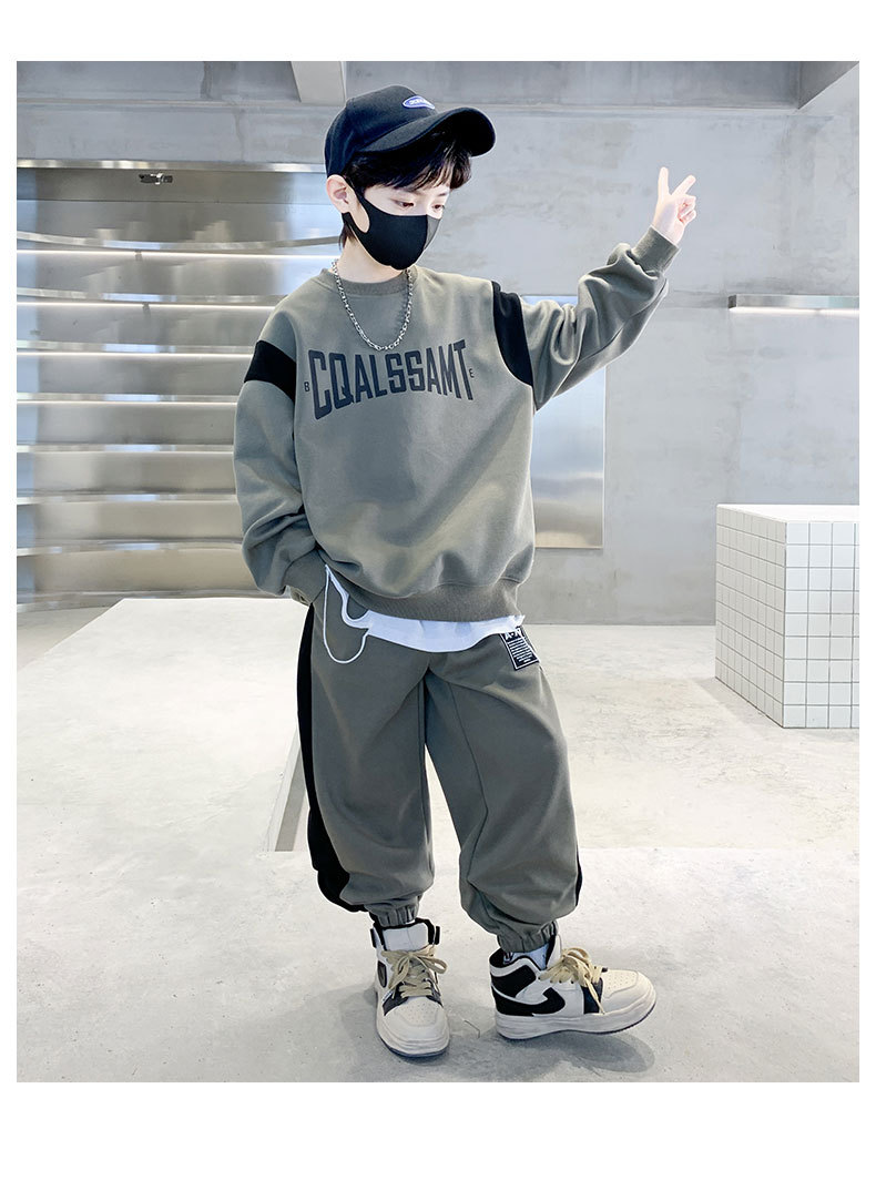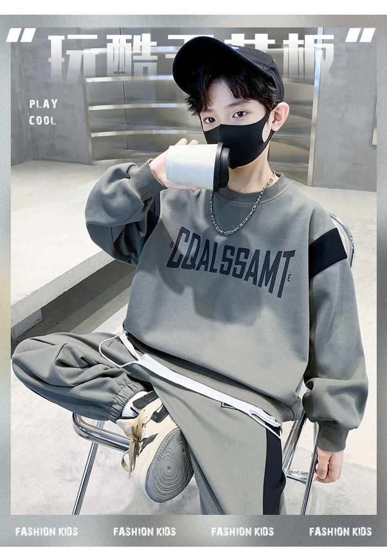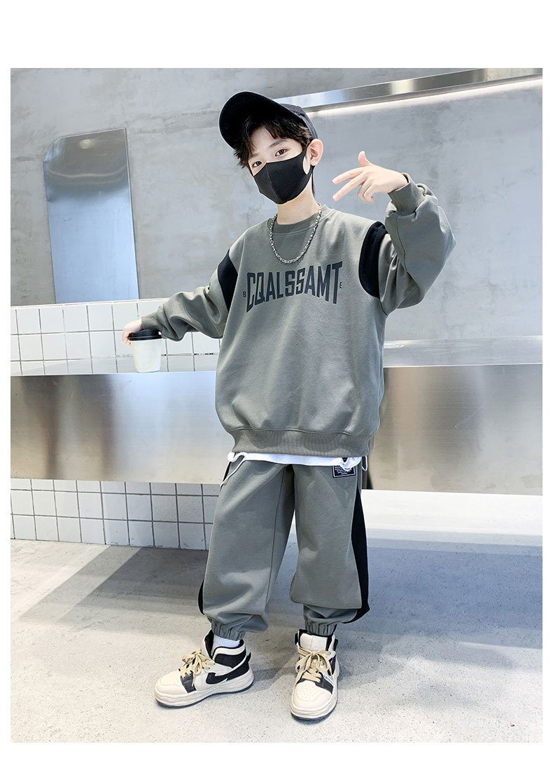 소년 편지 운동복 한국식 어린이 세트 2024 새로운 패션 소년 느슨한 프라이드 스트리트 투피스 세트스토어 가기