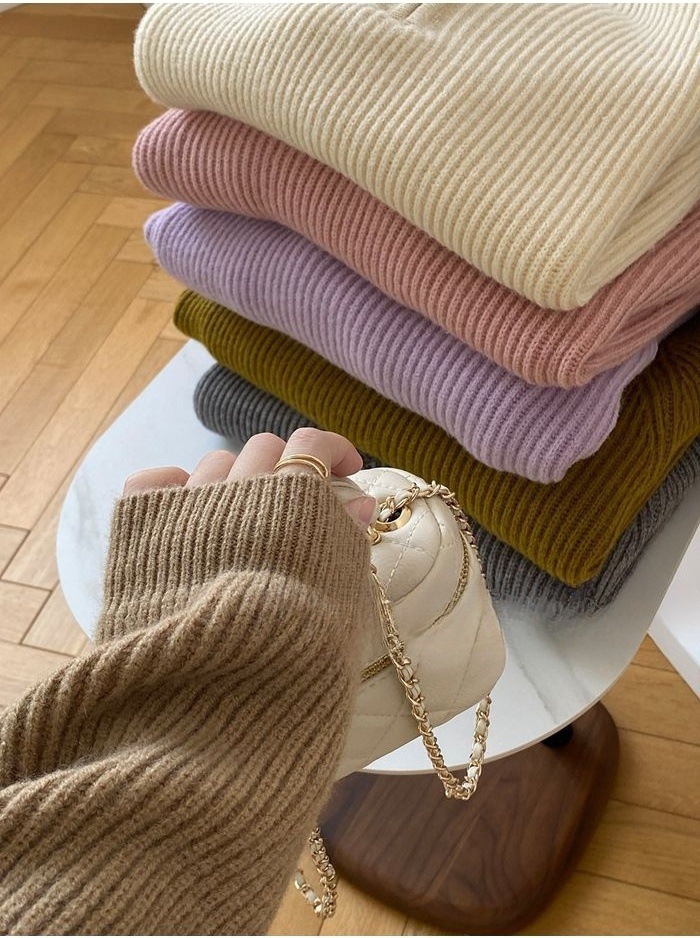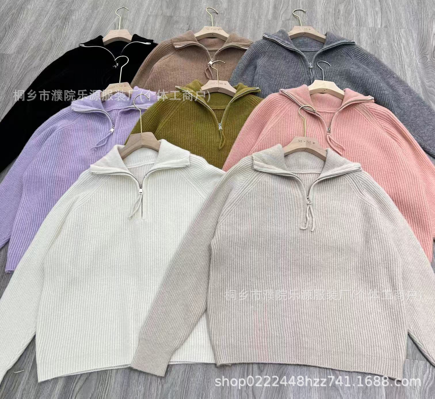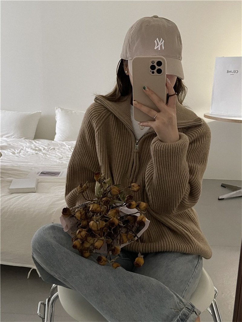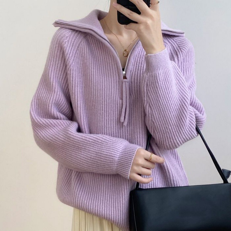 가을과 겨울 새로운 한국 하이 엔드 센스 하프 지퍼 수직 칼라 핏 스트립 느슨한 스웨터 코트 여성용 긴팔 스웨터 탑스토어 가기