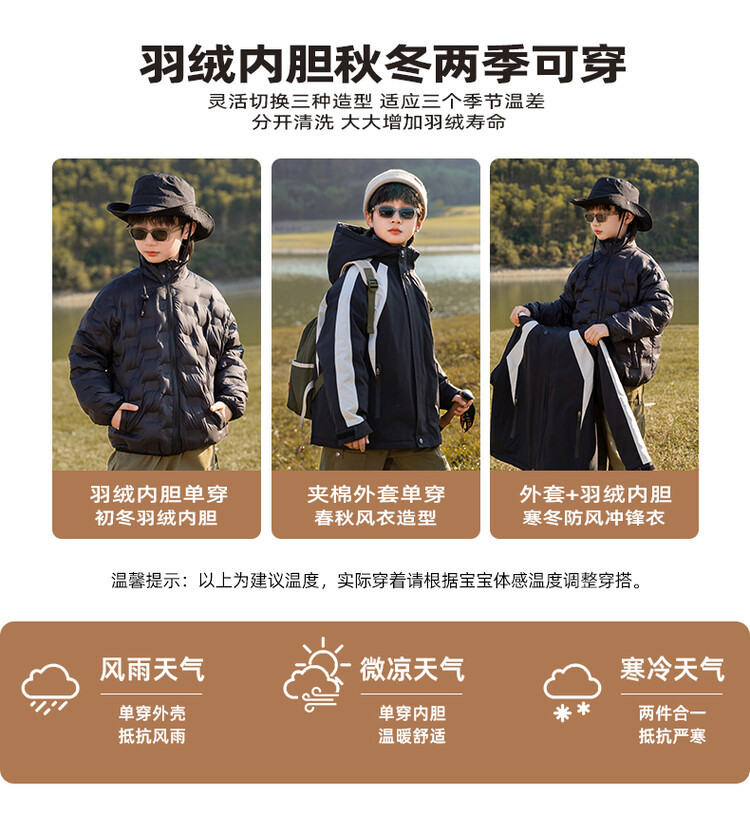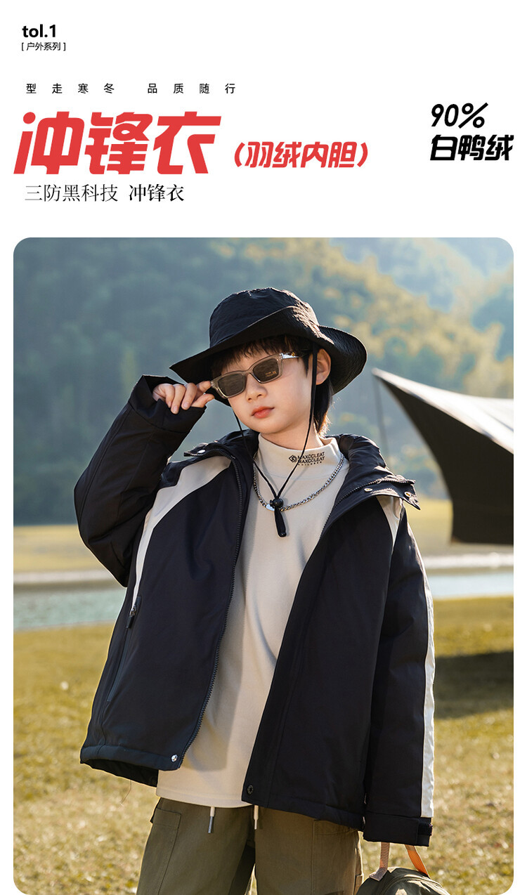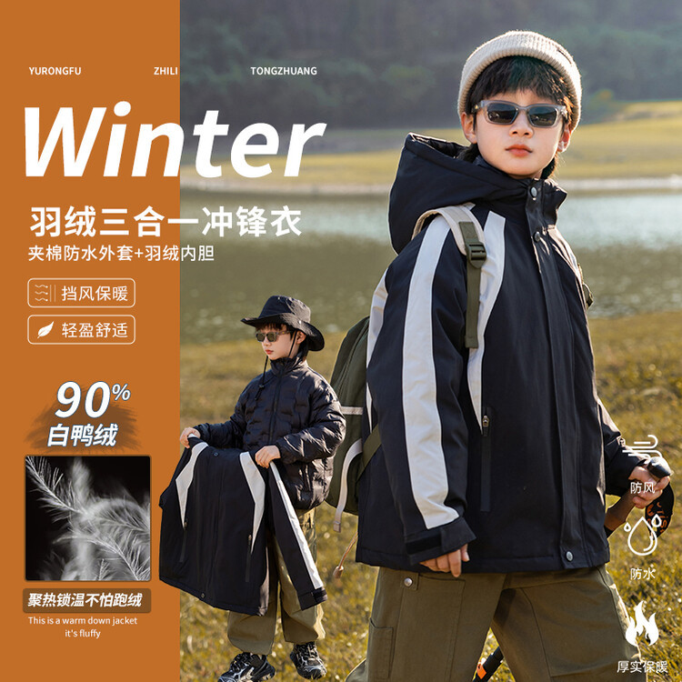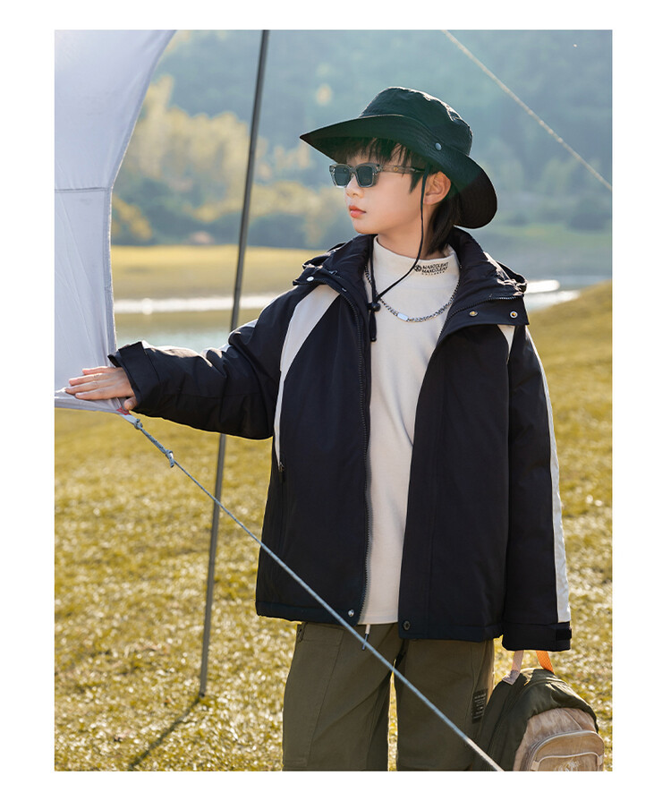 90 화이트 덕 다운 보이즈 컬러 매칭 3 대 1 충전 겨울 새로운 윈드 브레이커 코트 유행 후드가 두꺼운 코트