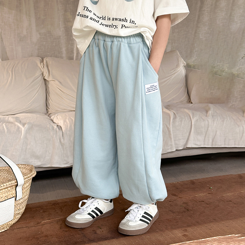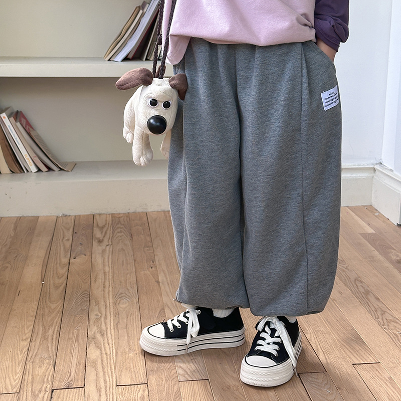 Aimo Beibei 소년 소녀 한국 스타일 캐주얼 초등학생 라벨 스웨트 팬츠 유행 어린이 커프 바지 가을 어린이 바지스토어 가기