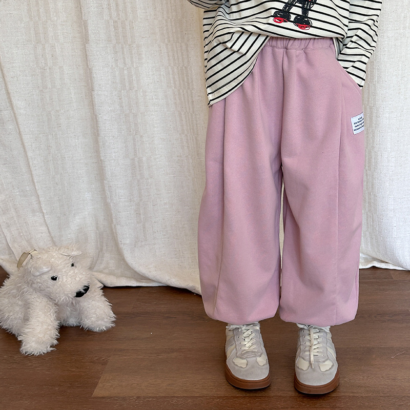 Aimo Beibei 소년 소녀 한국 스타일 캐주얼 초등학생 라벨 스웨트 팬츠 유행 어린이 커프 바지 가을 어린이 바지