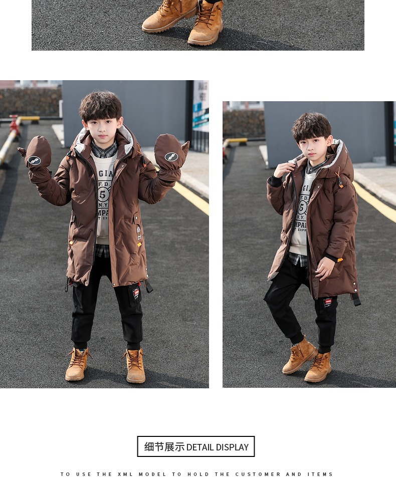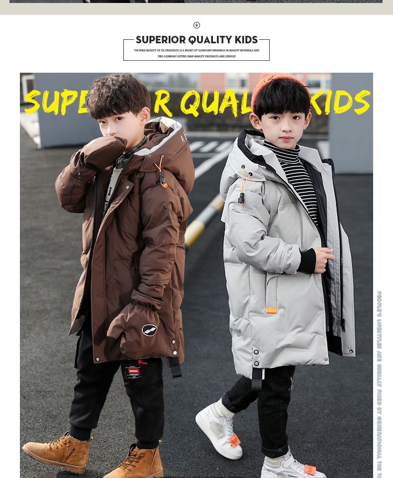 어린이 의류 소년의 겨울 코튼 코트 2024 새로운 스타일 중대형 어린이 중 및 롱 보이즈 두꺼운 코튼 패딩 재킷 유행스토어 가기