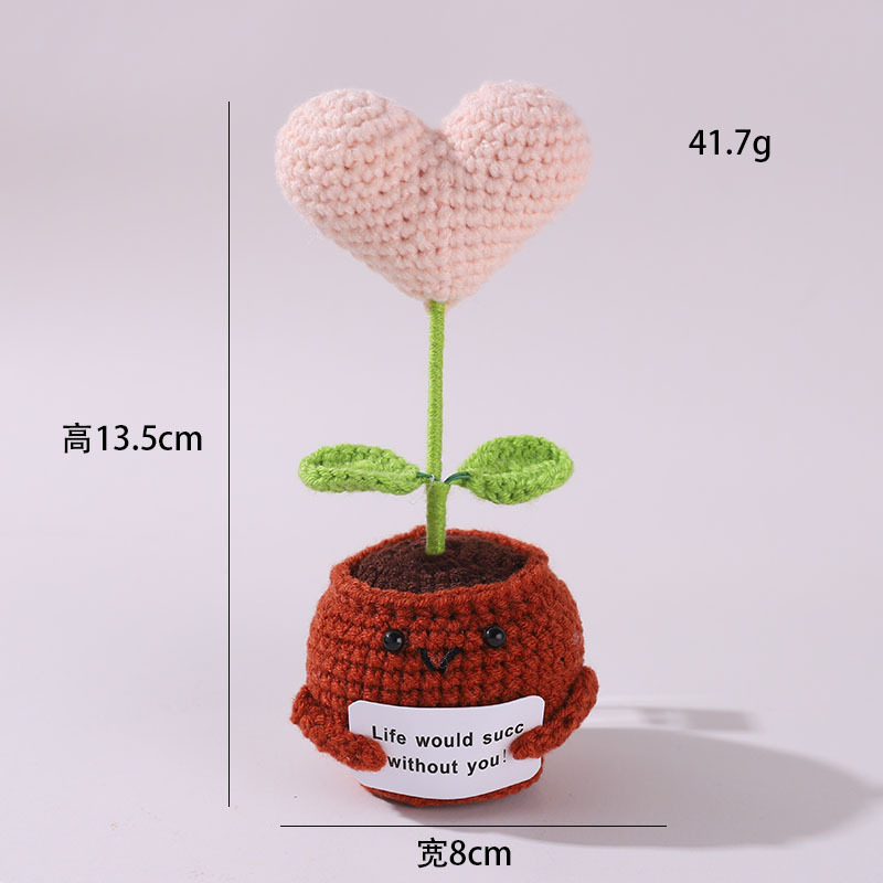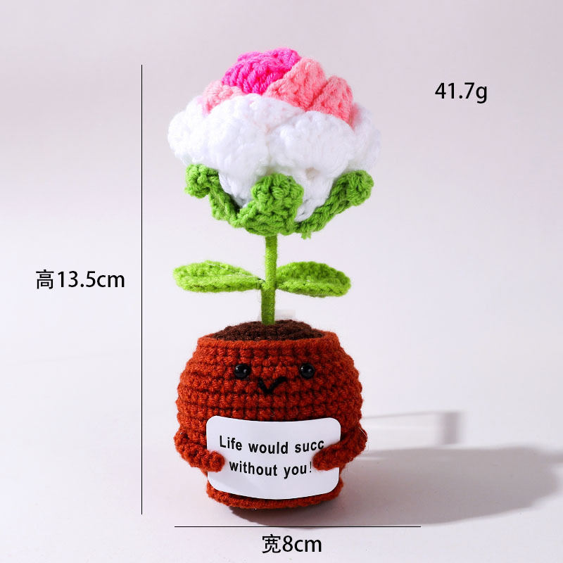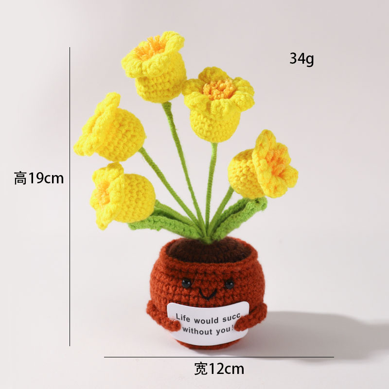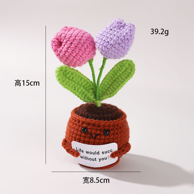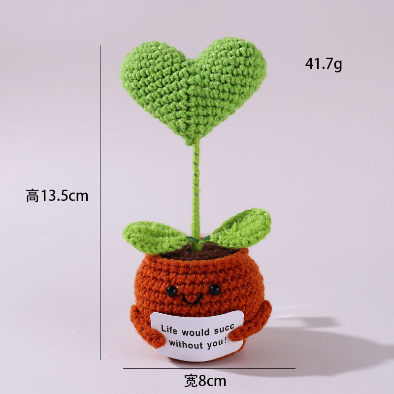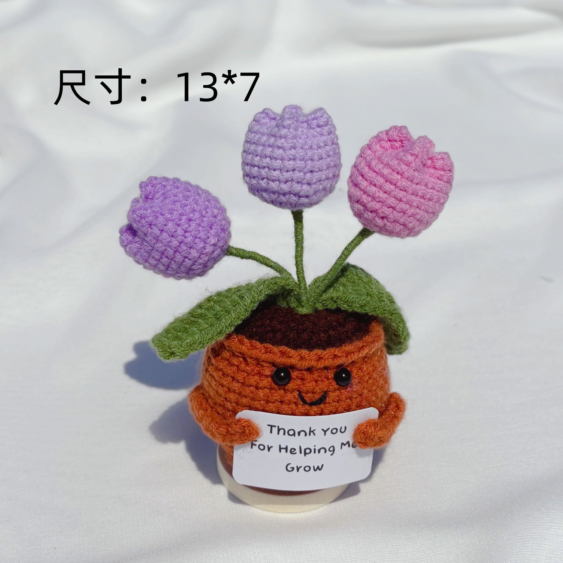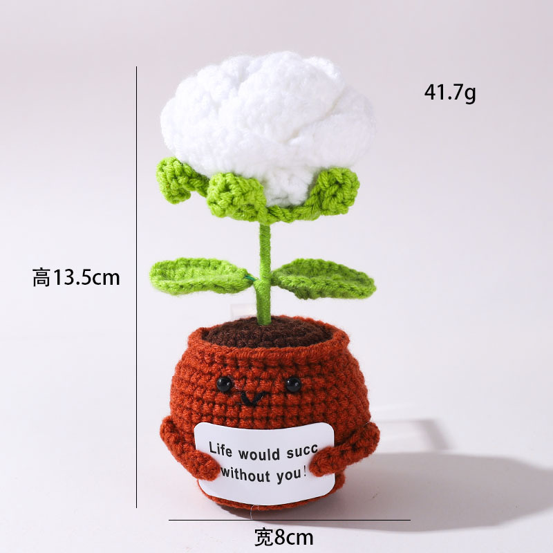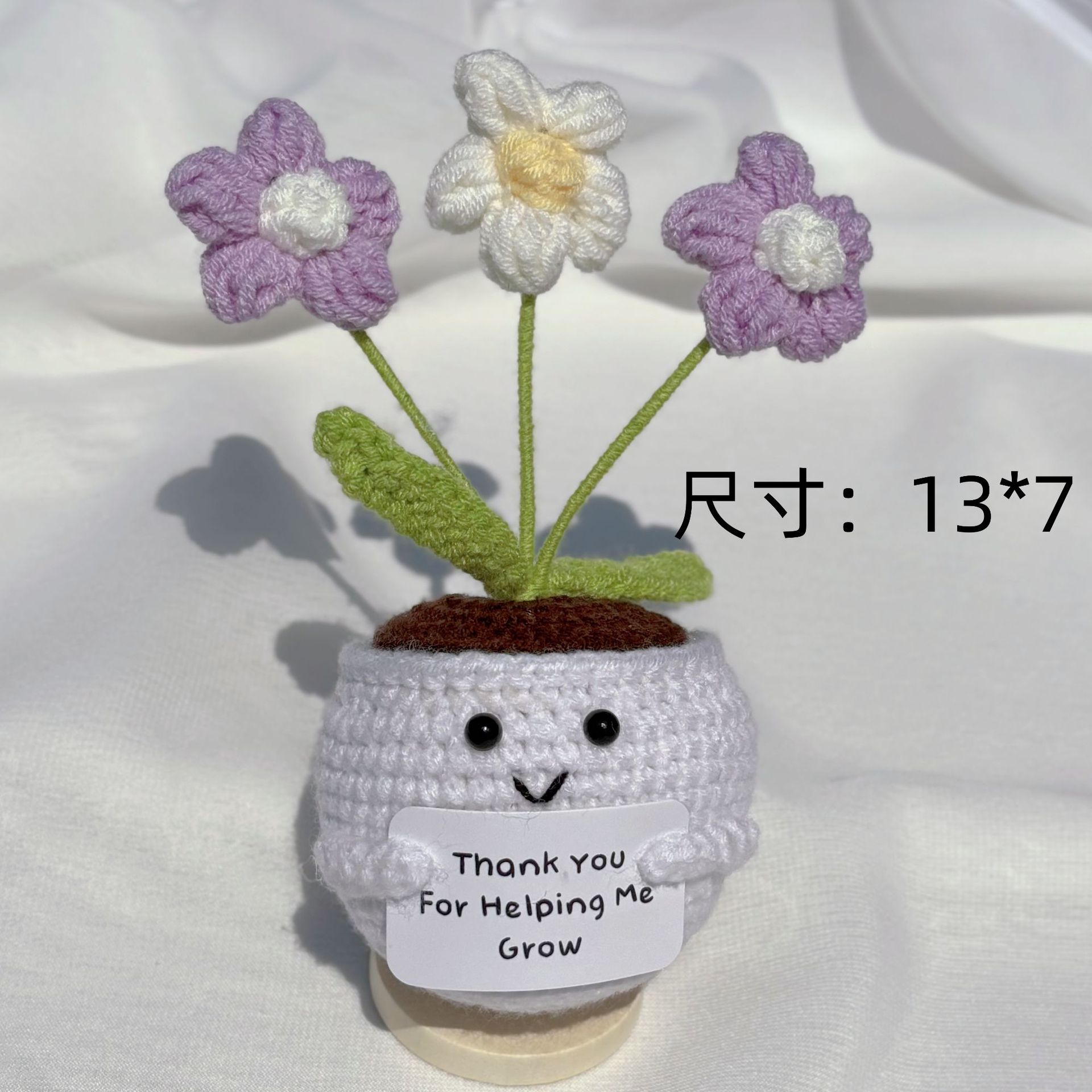 완성 된 양모 손으로 짠 긍정적 인 감자 인형 짠 화분 장식 뜨개질 긍정적 인 에너지 인공 꽃과 녹색 식물