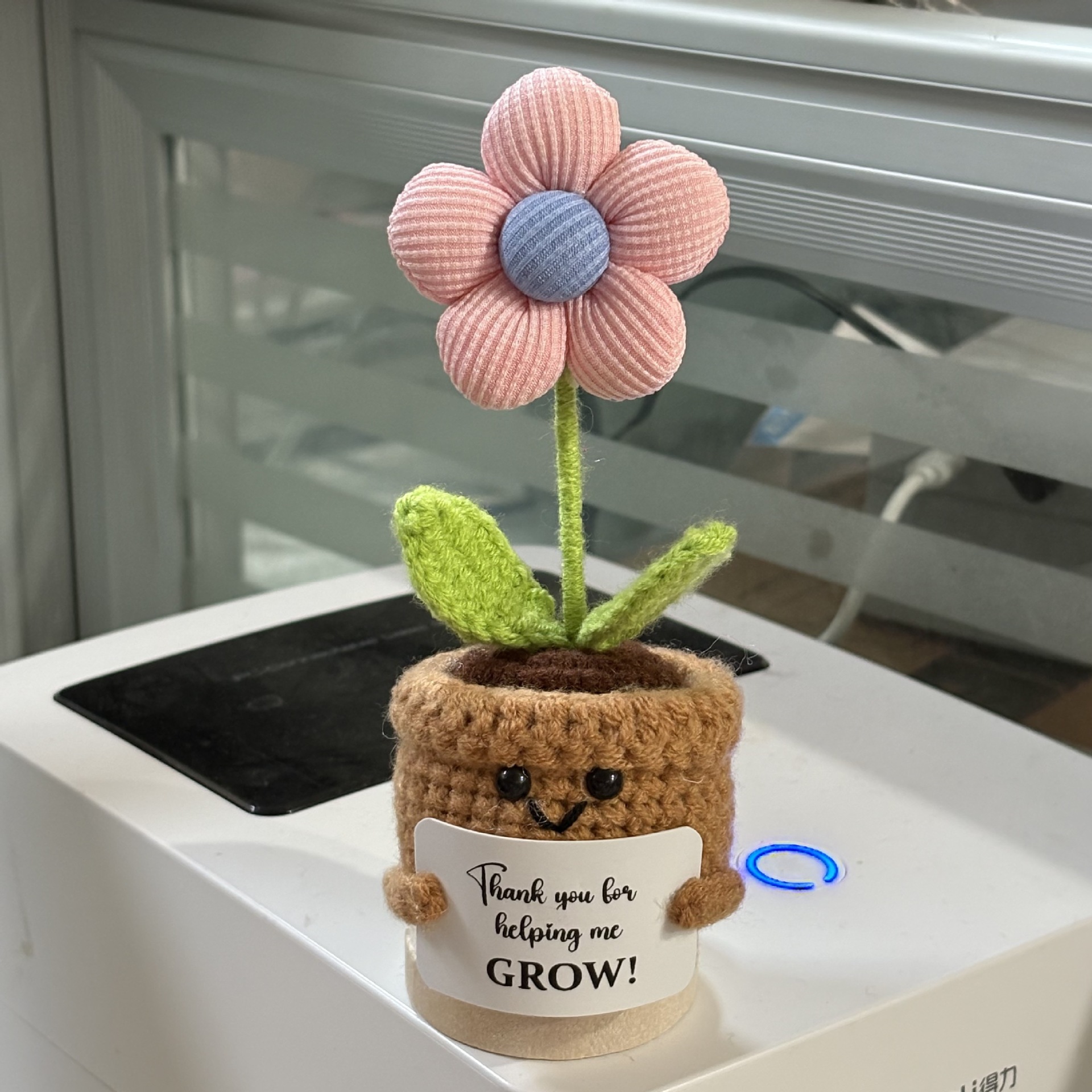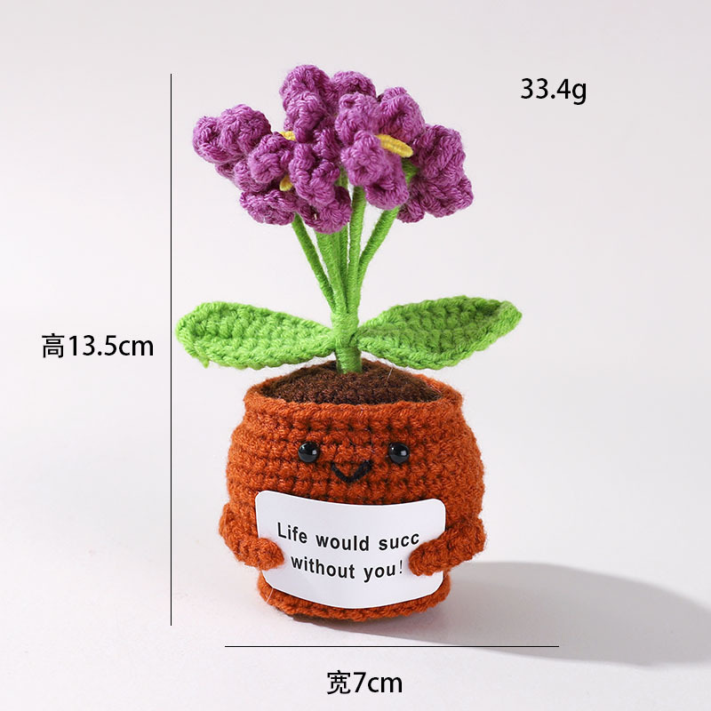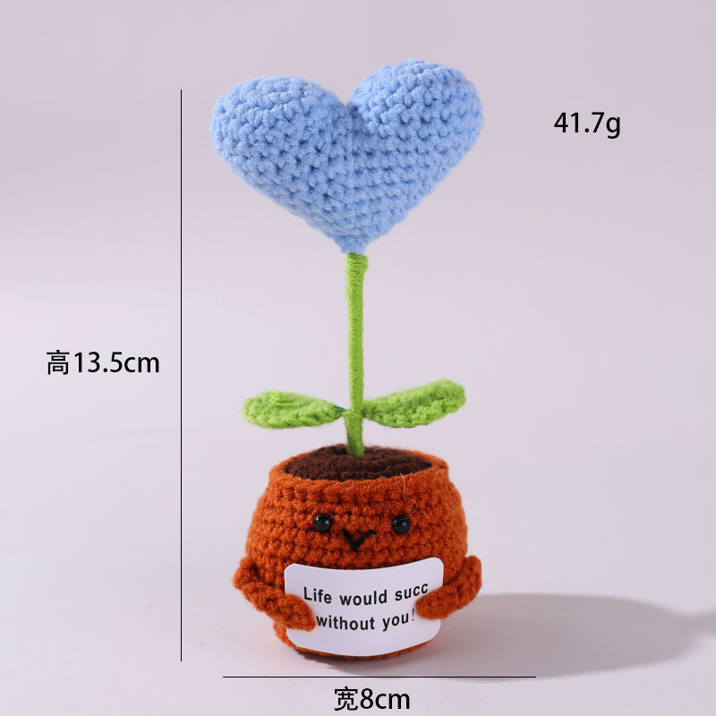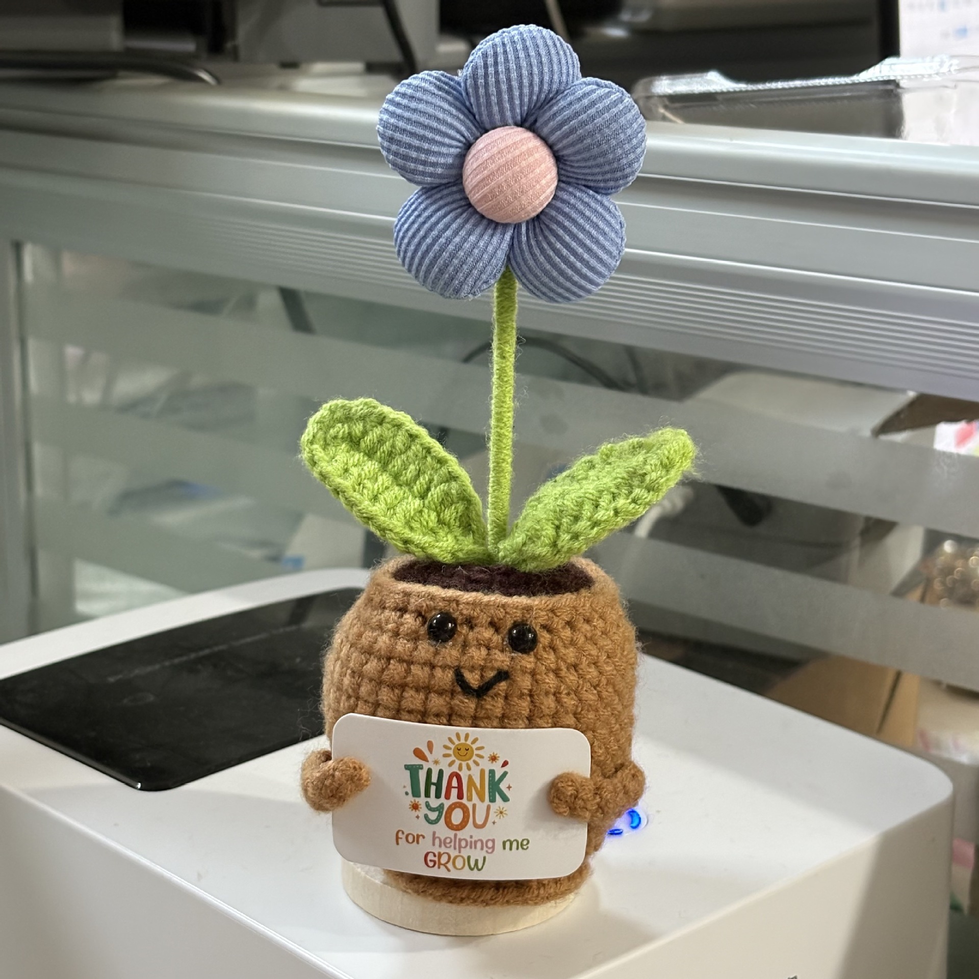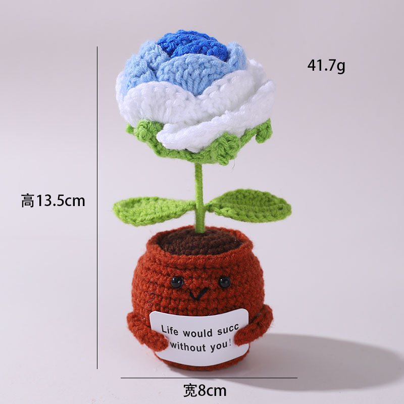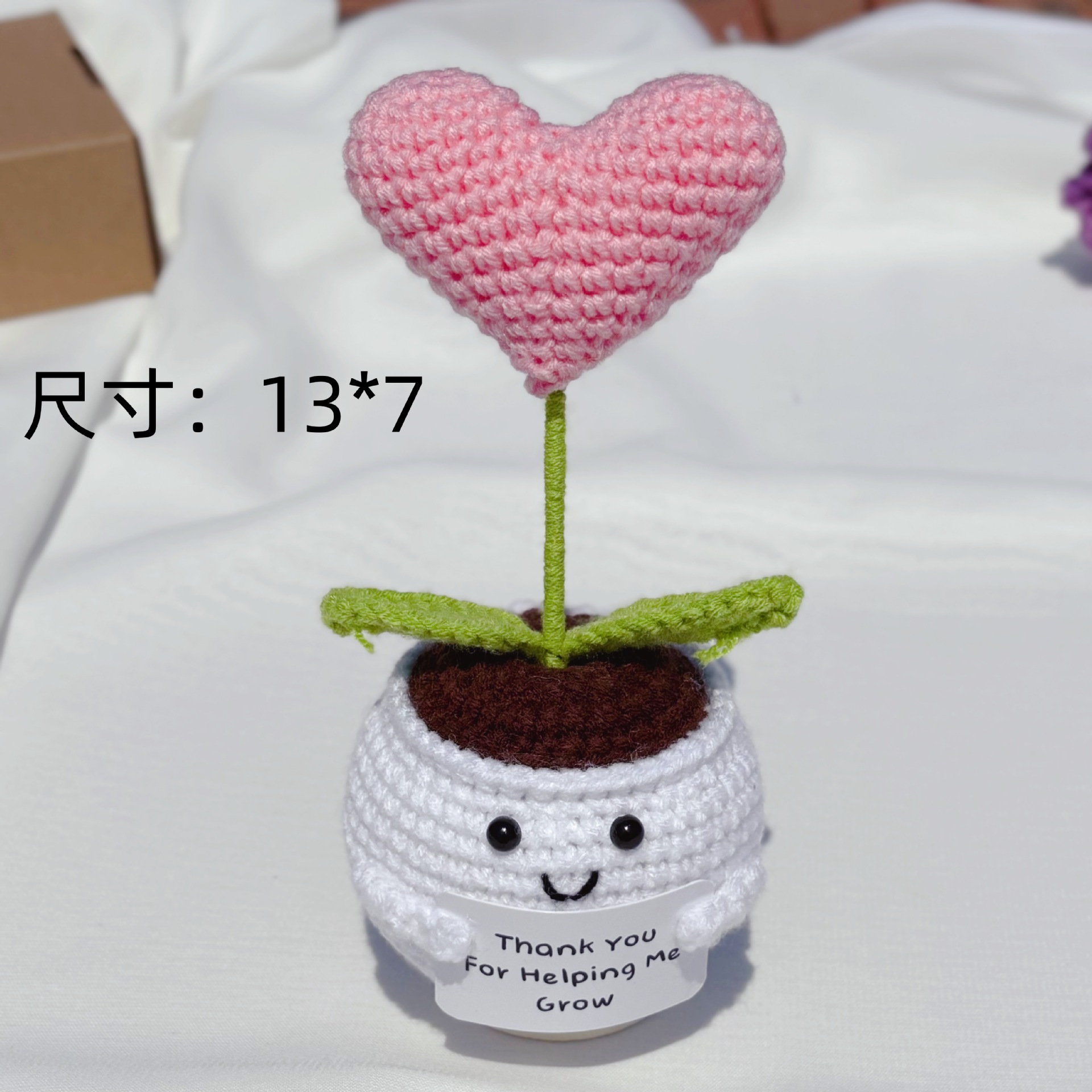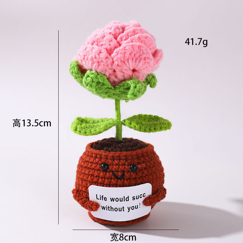 완성 된 양모 손으로 짠 긍정적 인 감자 인형 짠 화분 장식 뜨개질 긍정적 인 에너지 인공 꽃과 녹색 식물