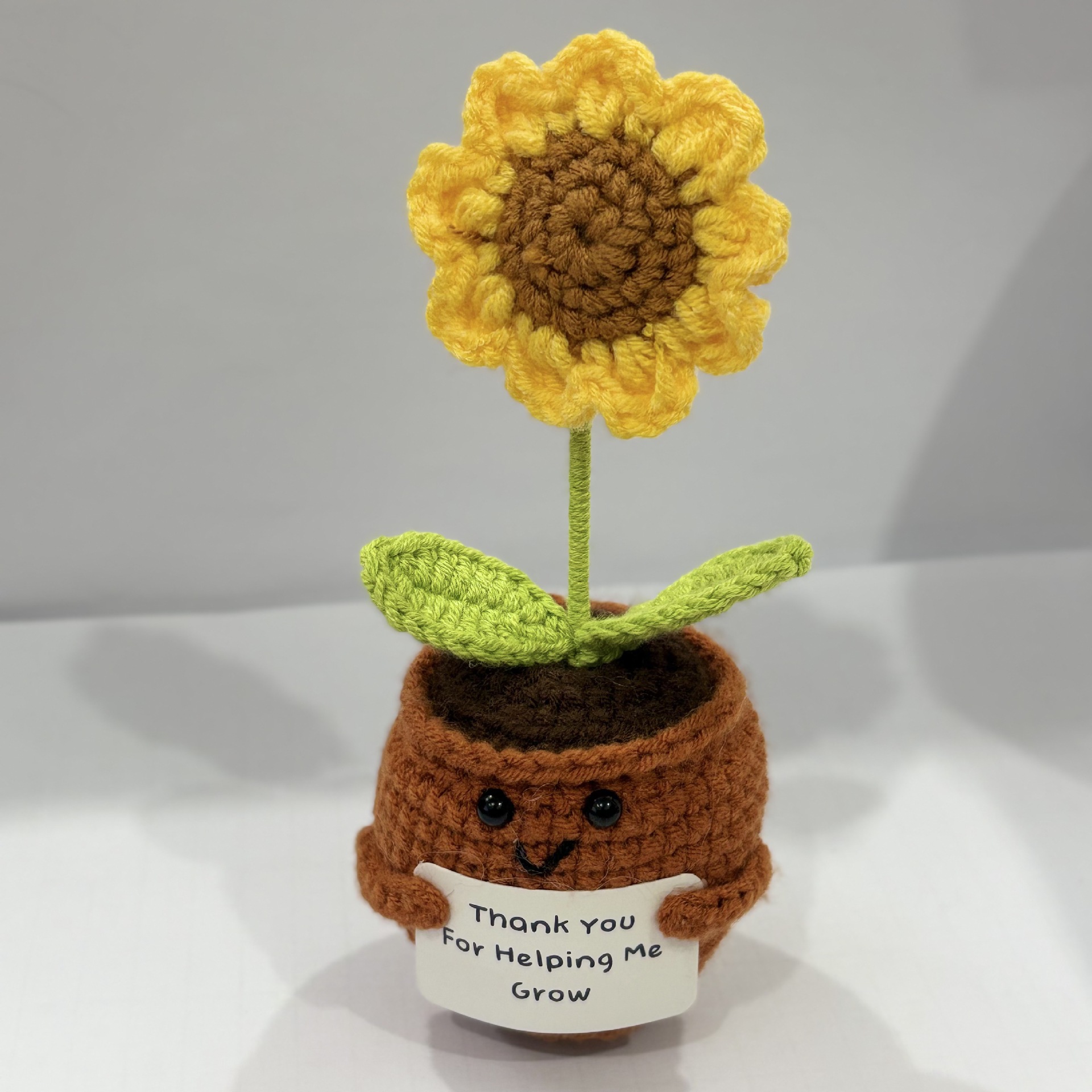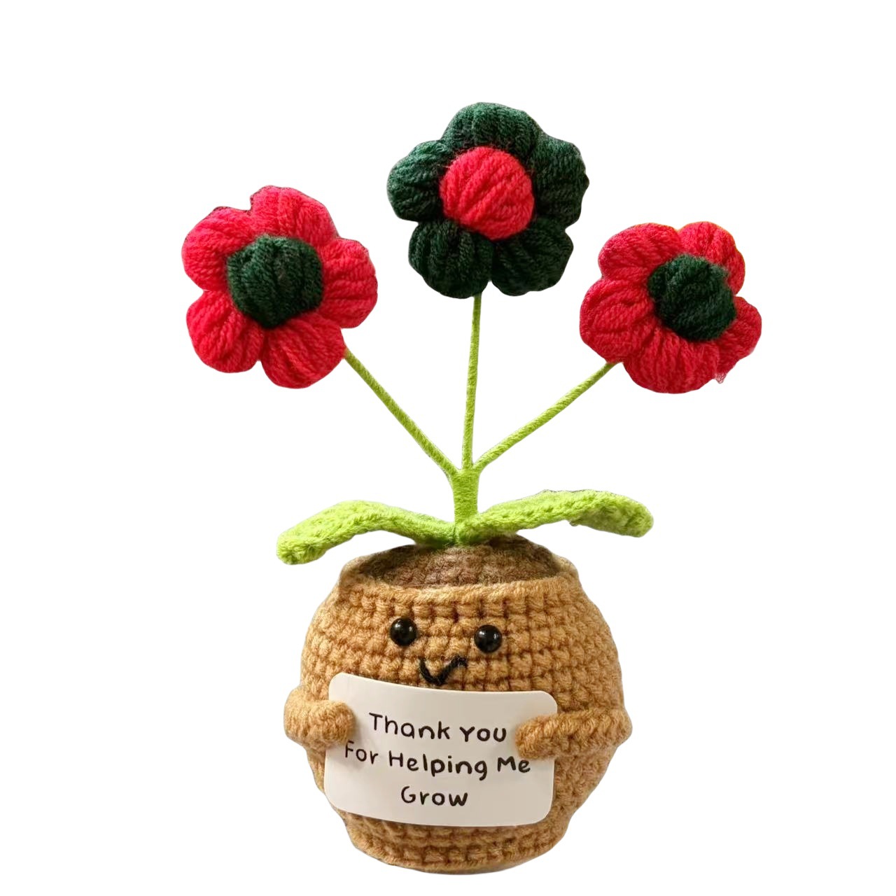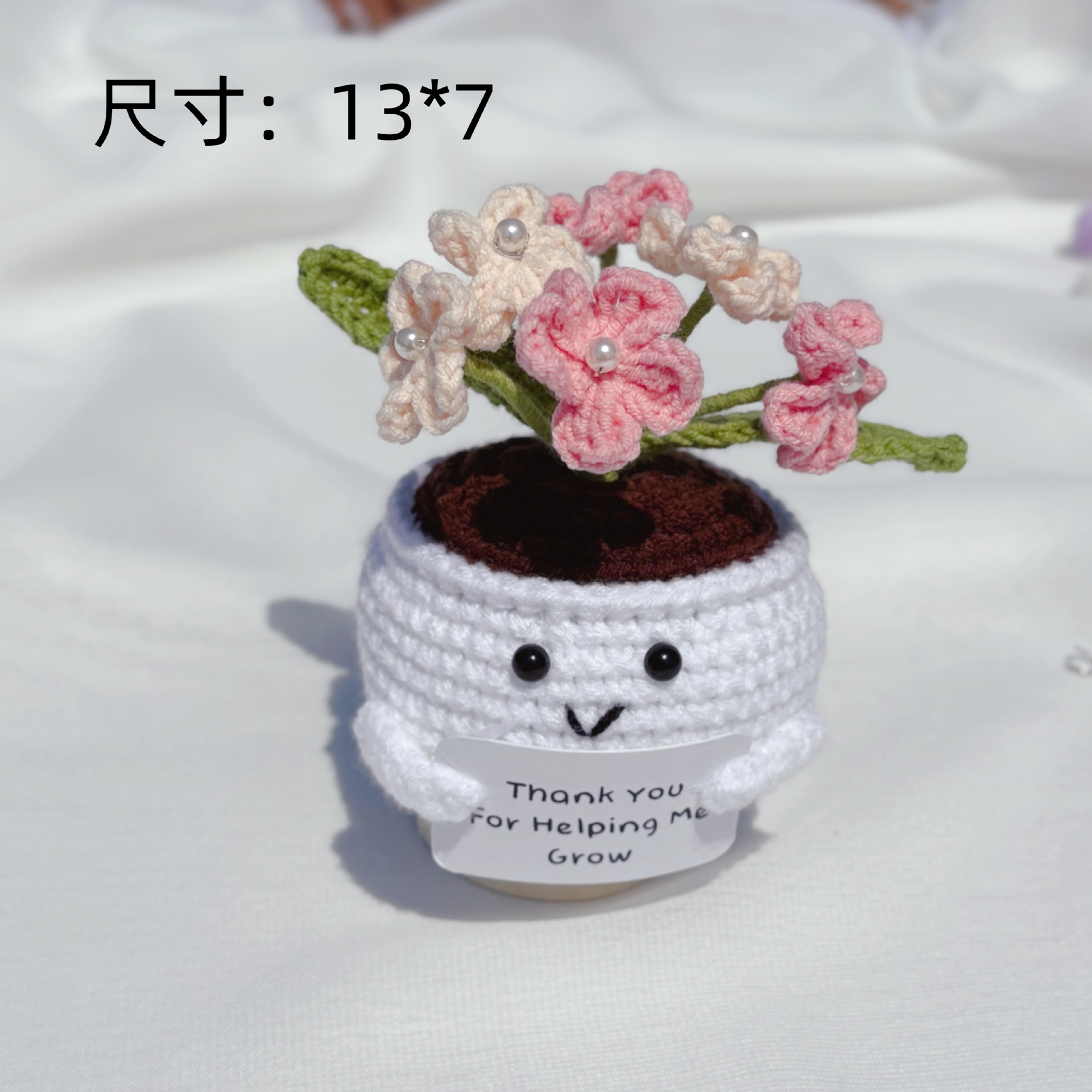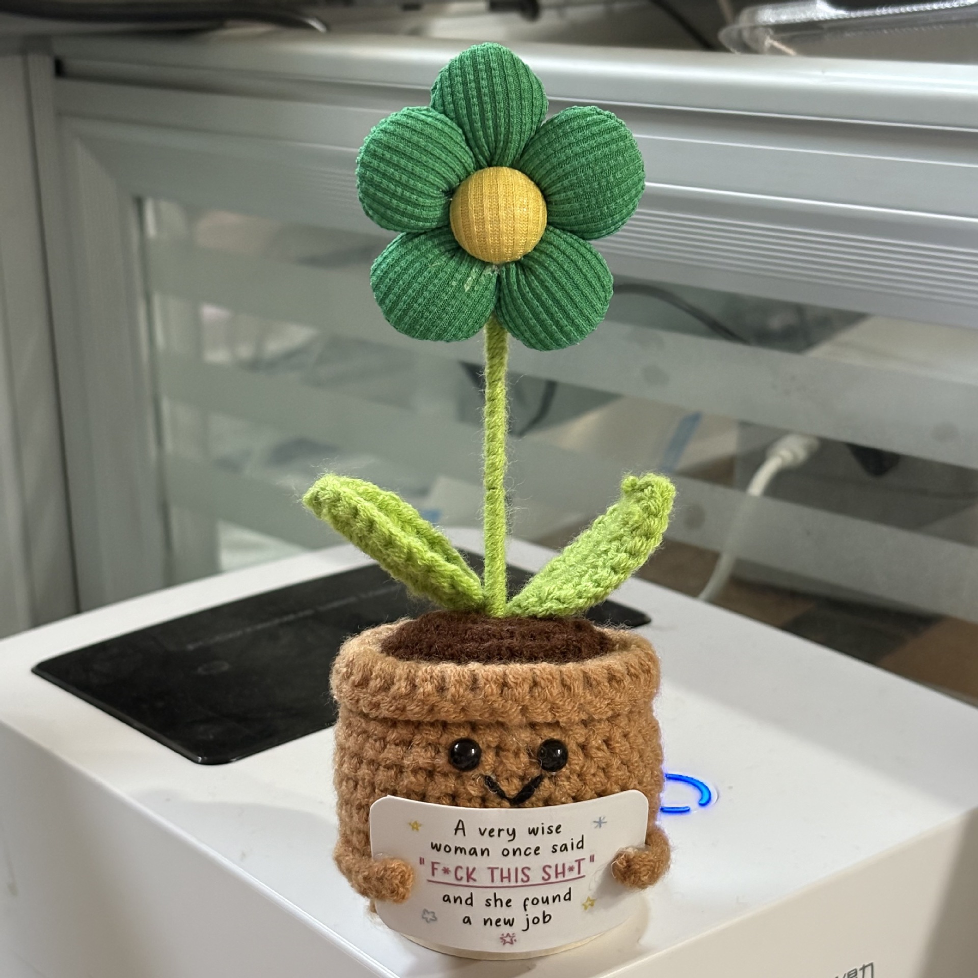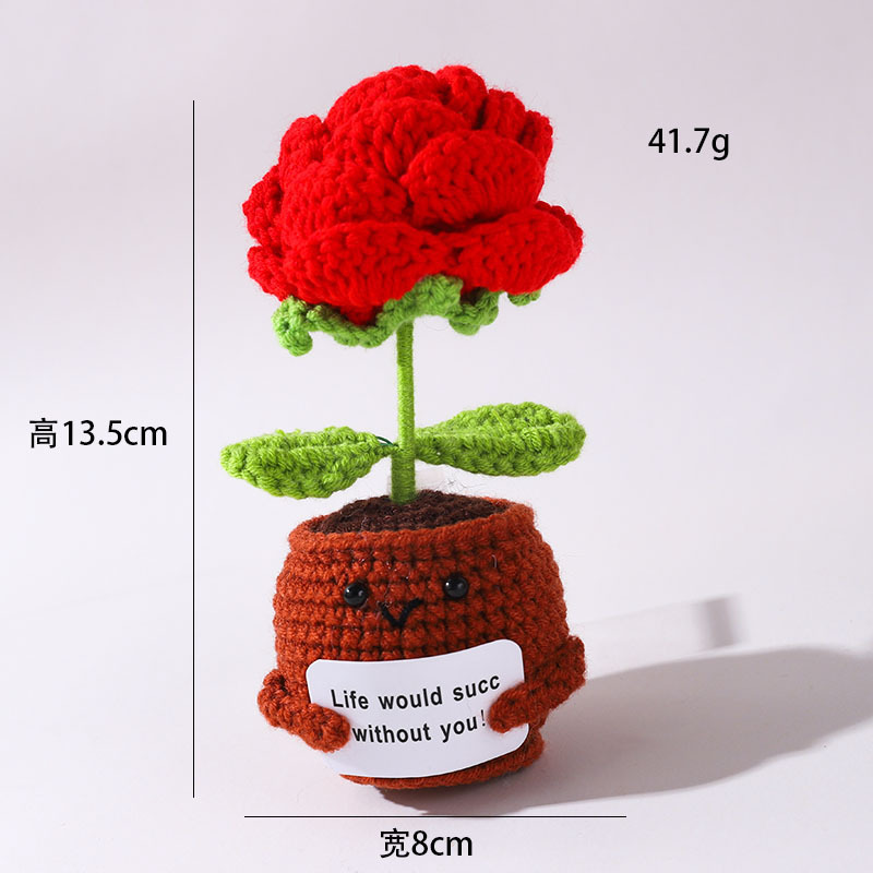 완성 된 양모 손으로 짠 긍정적 인 감자 인형 짠 화분 장식 뜨개질 긍정적 인 에너지 인공 꽃과 녹색 식물