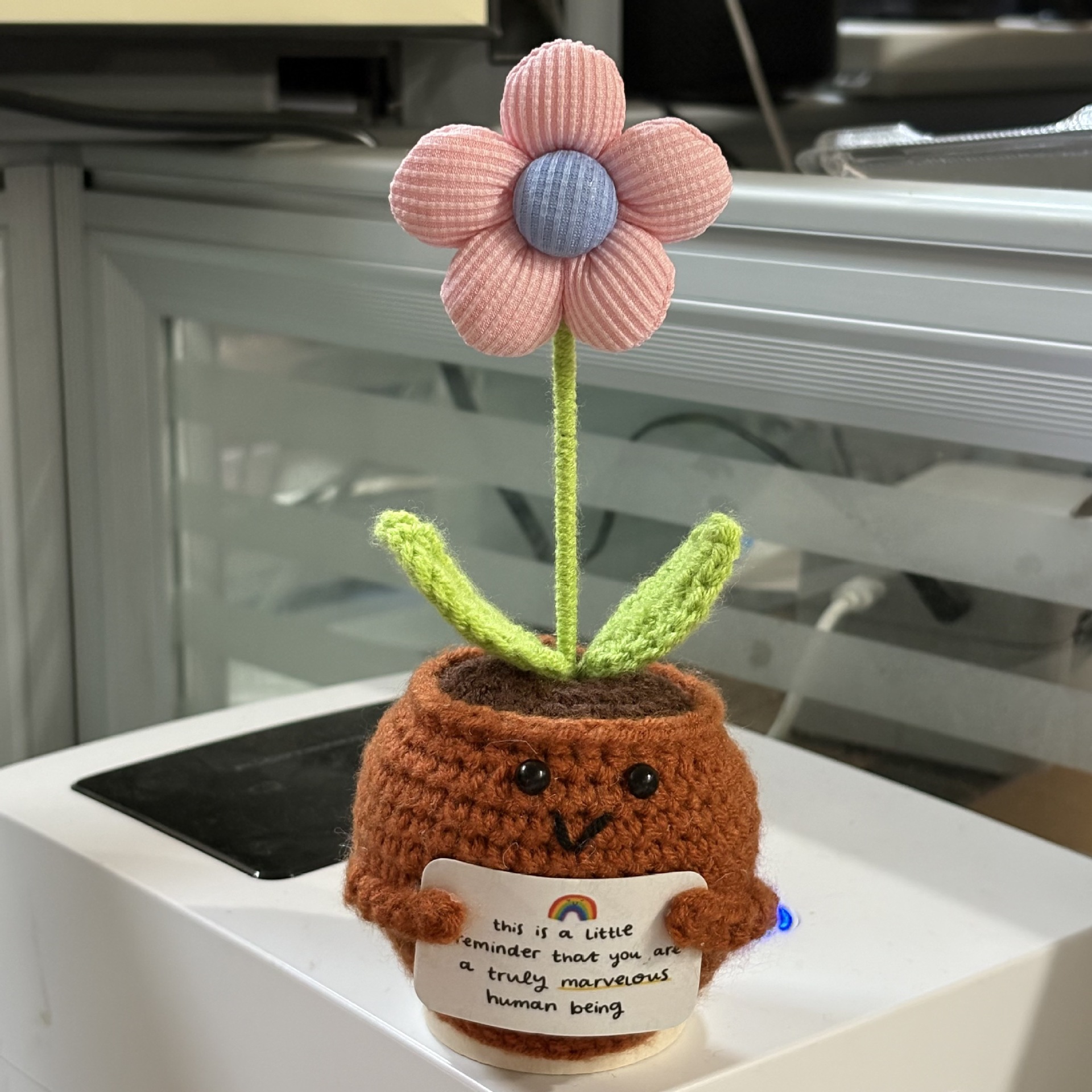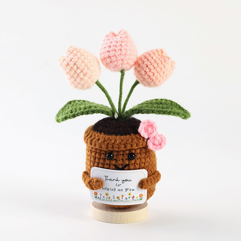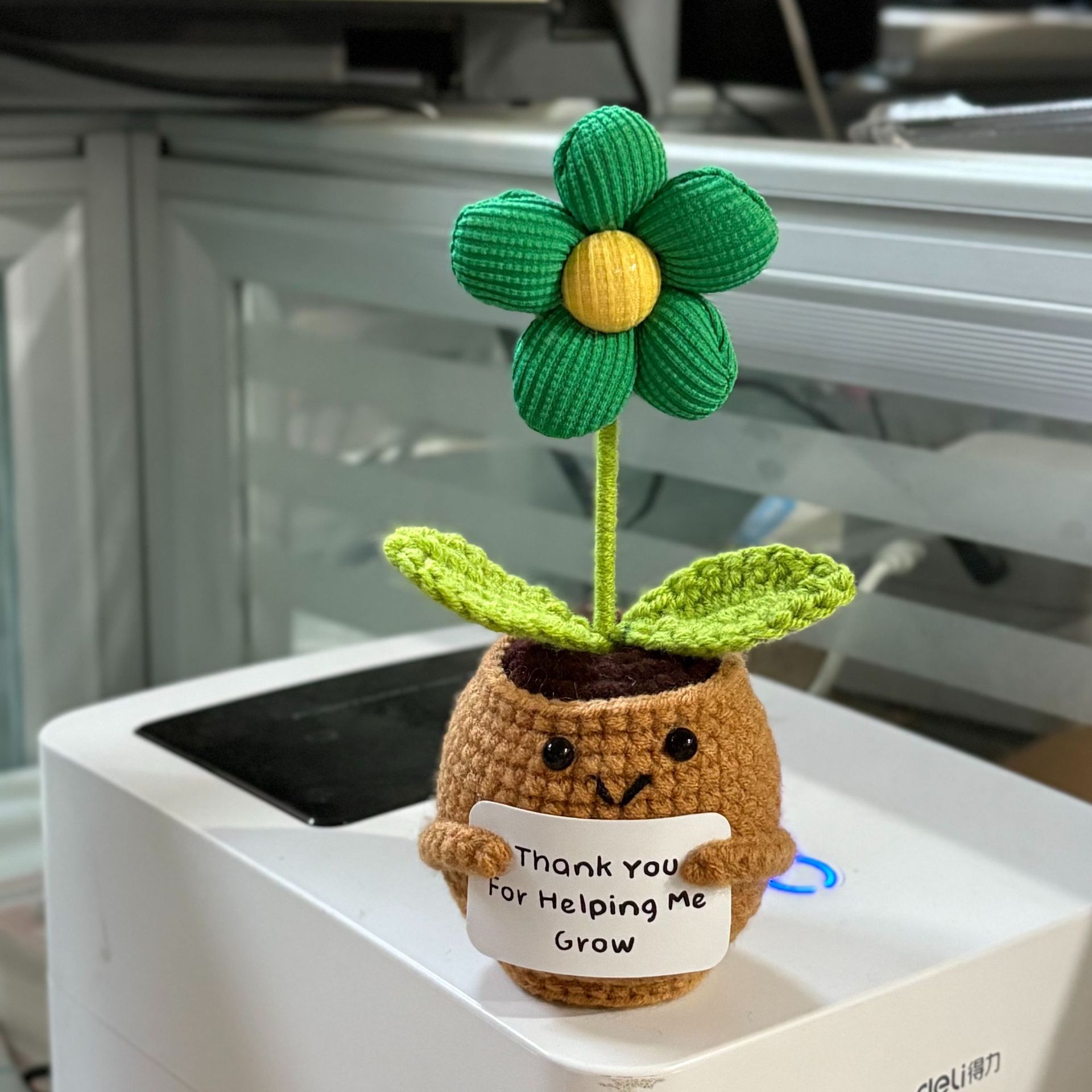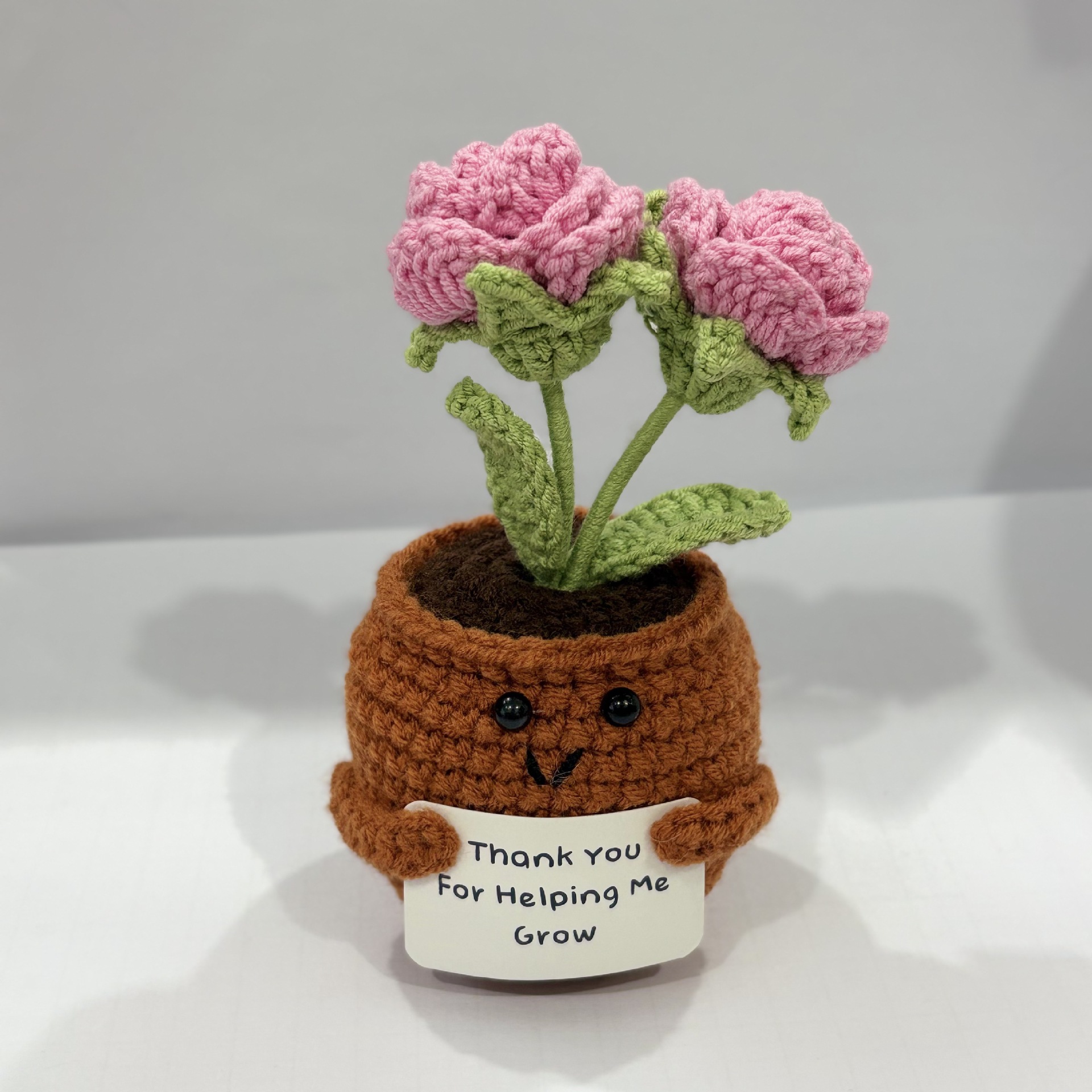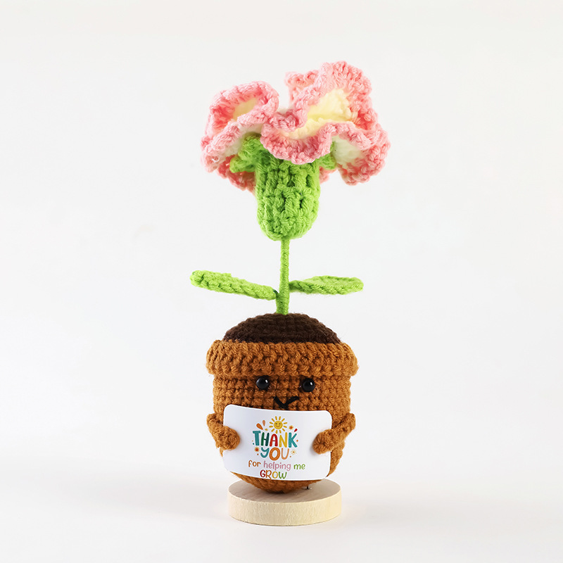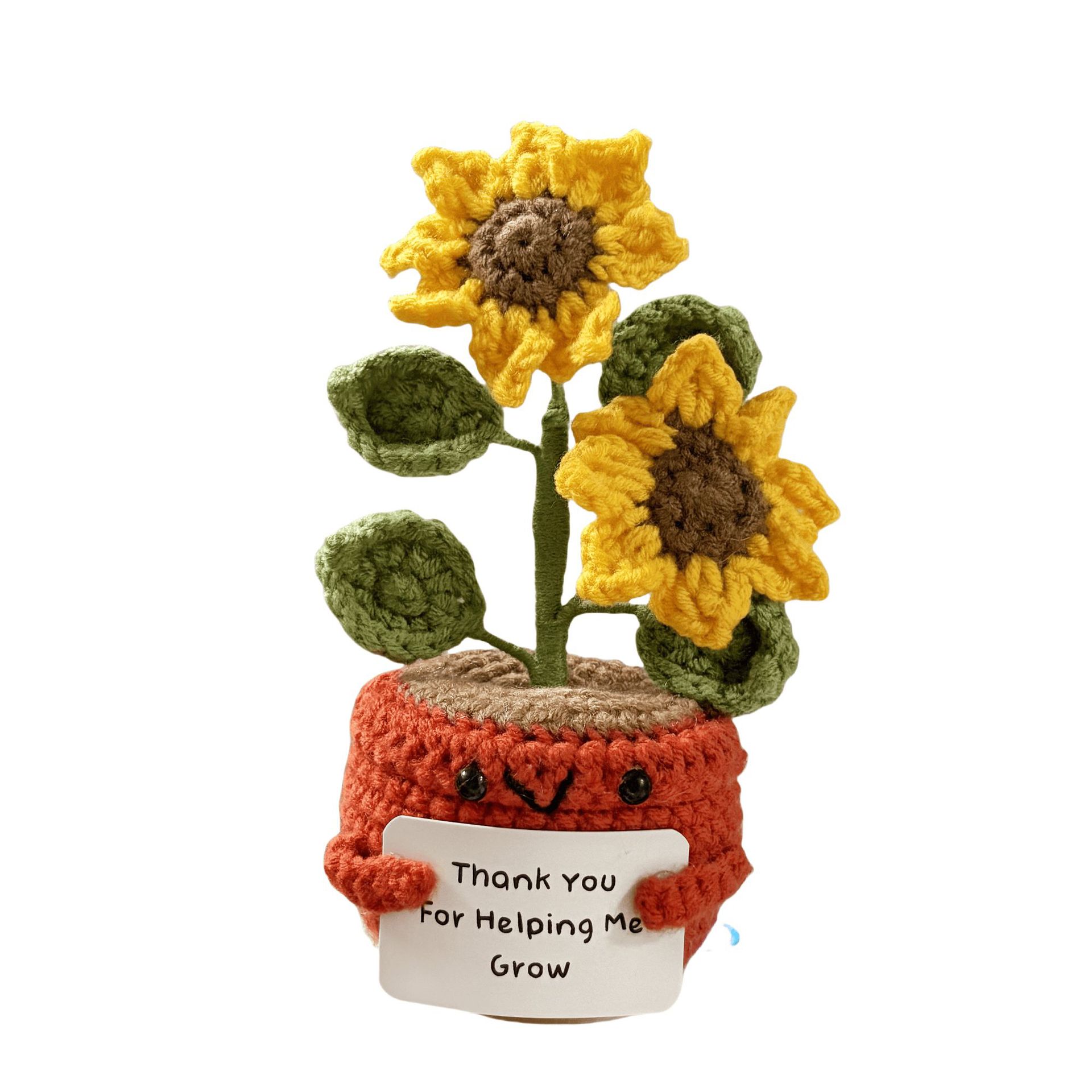 완성 된 양모 손으로 짠 긍정적 인 감자 인형 짠 화분 장식 뜨개질 긍정적 인 에너지 인공 꽃과 녹색 식물
