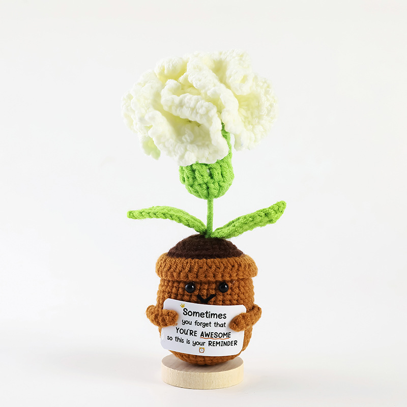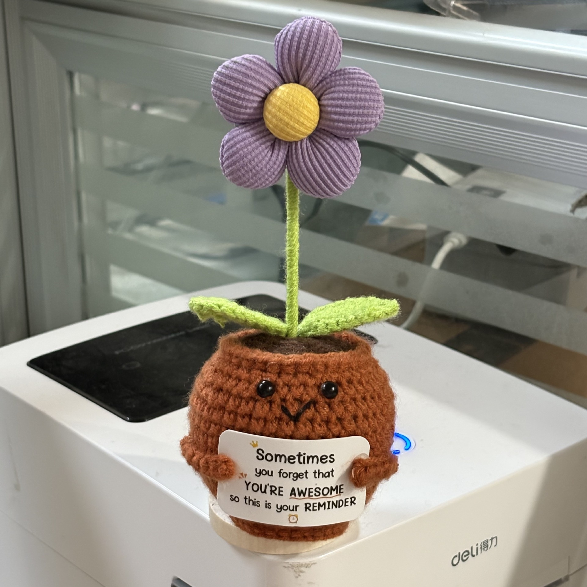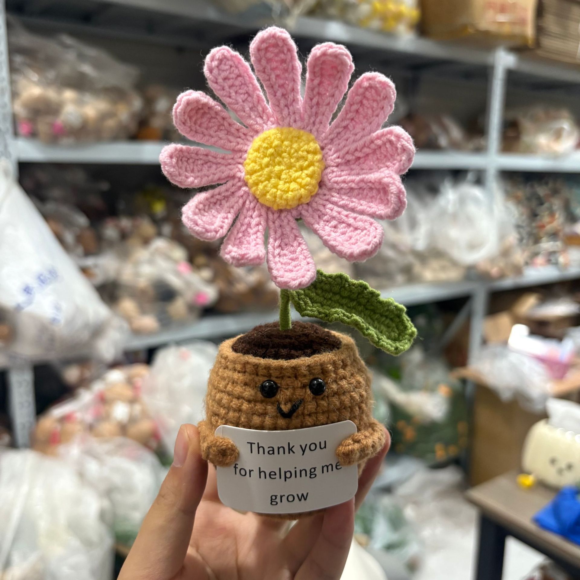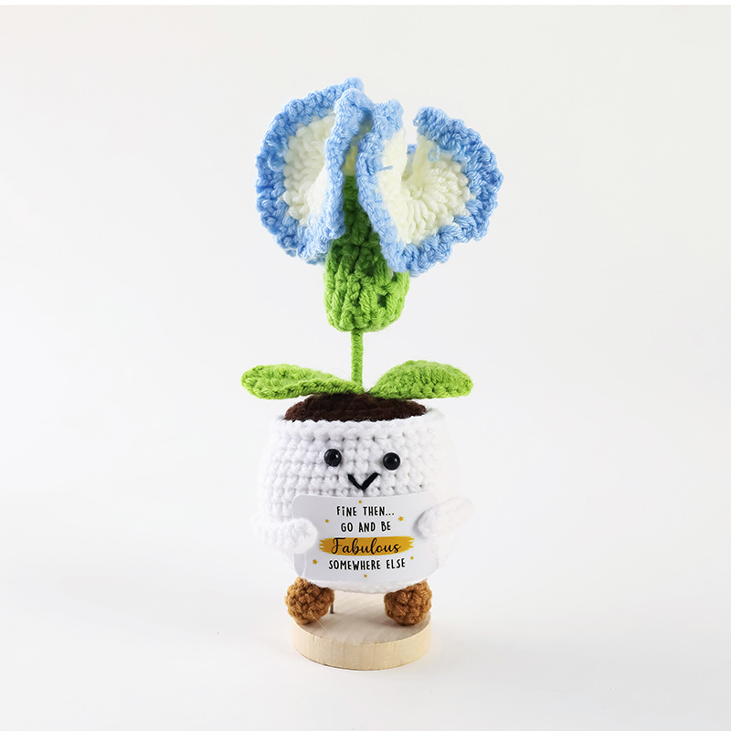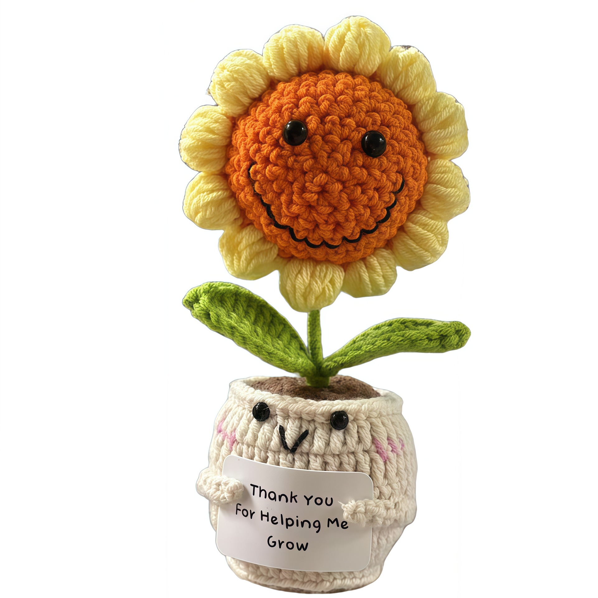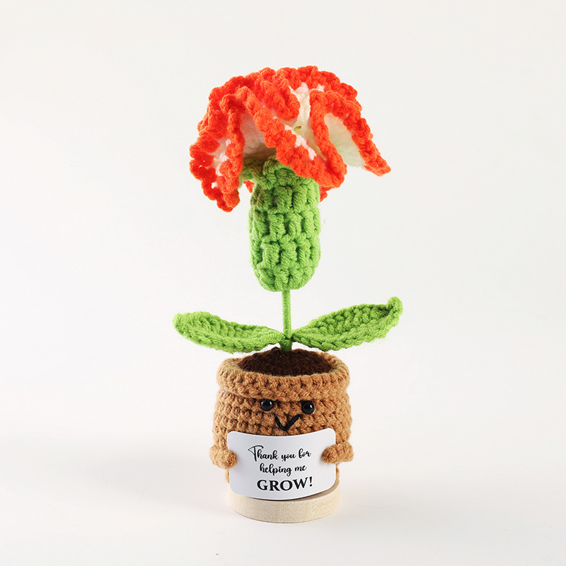 완성 된 양모 손으로 짠 긍정적 인 감자 인형 짠 화분 장식 뜨개질 긍정적 인 에너지 인공 꽃과 녹색 식물