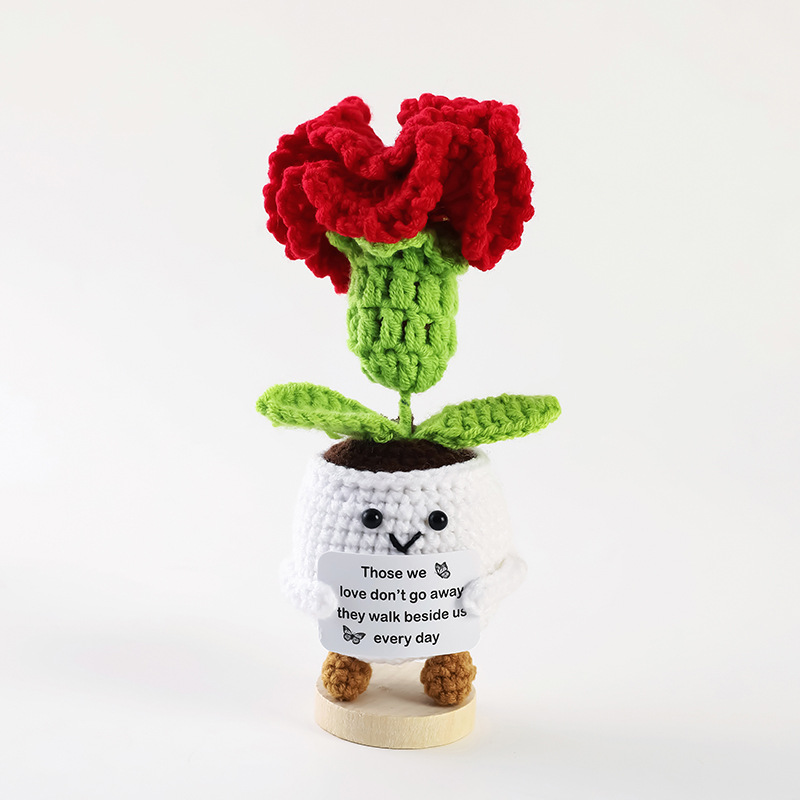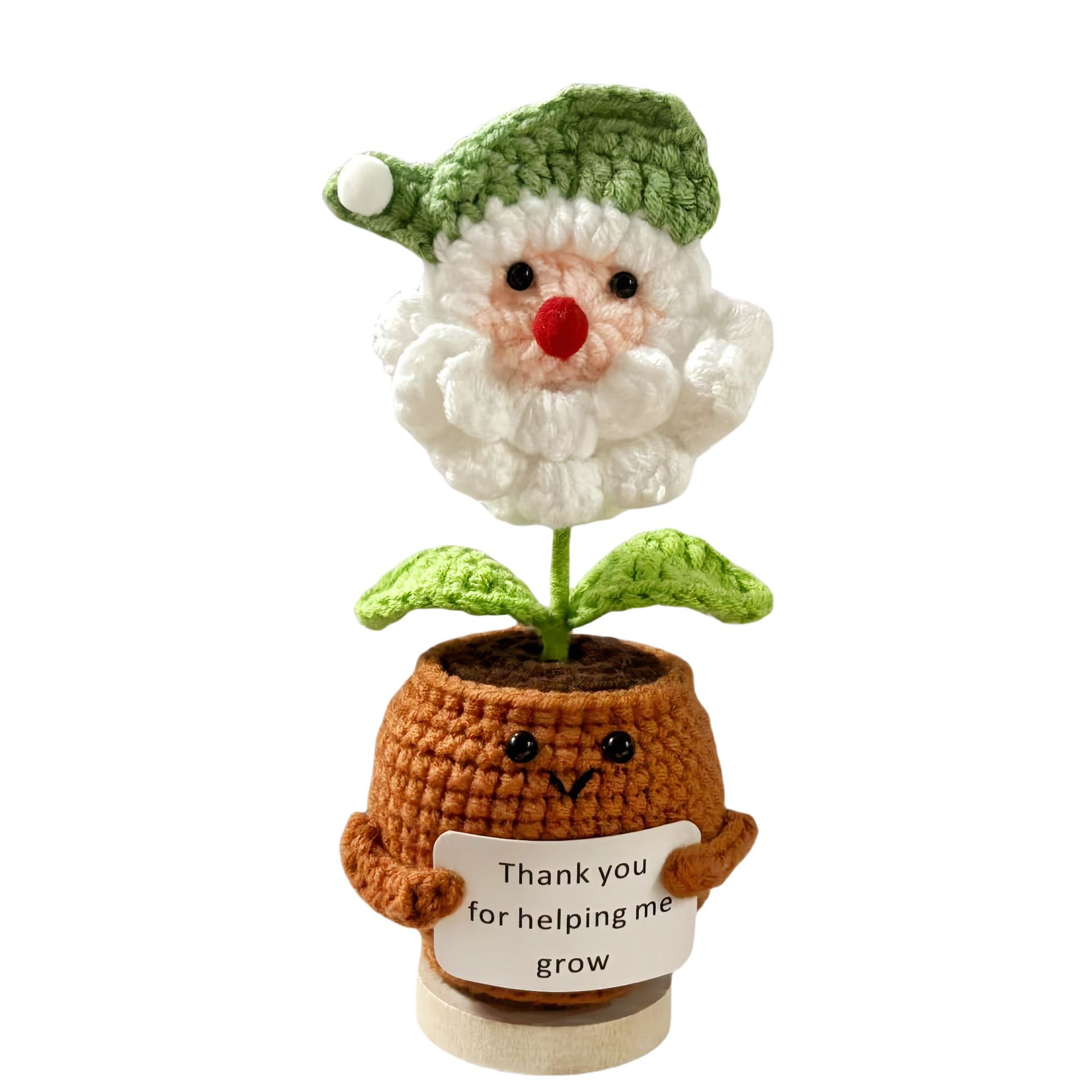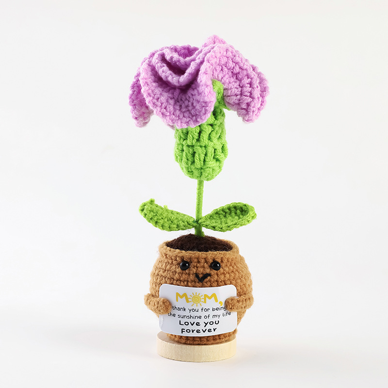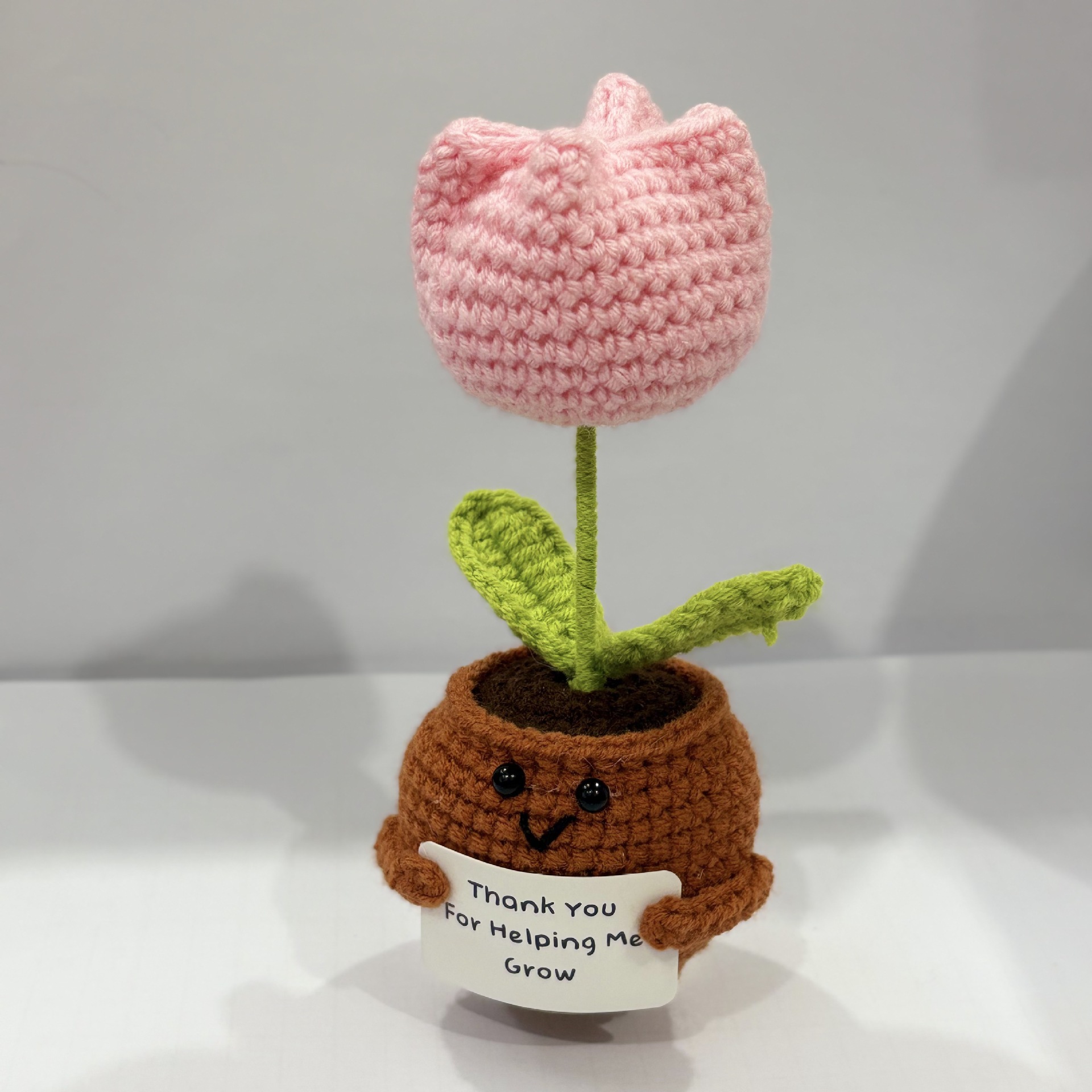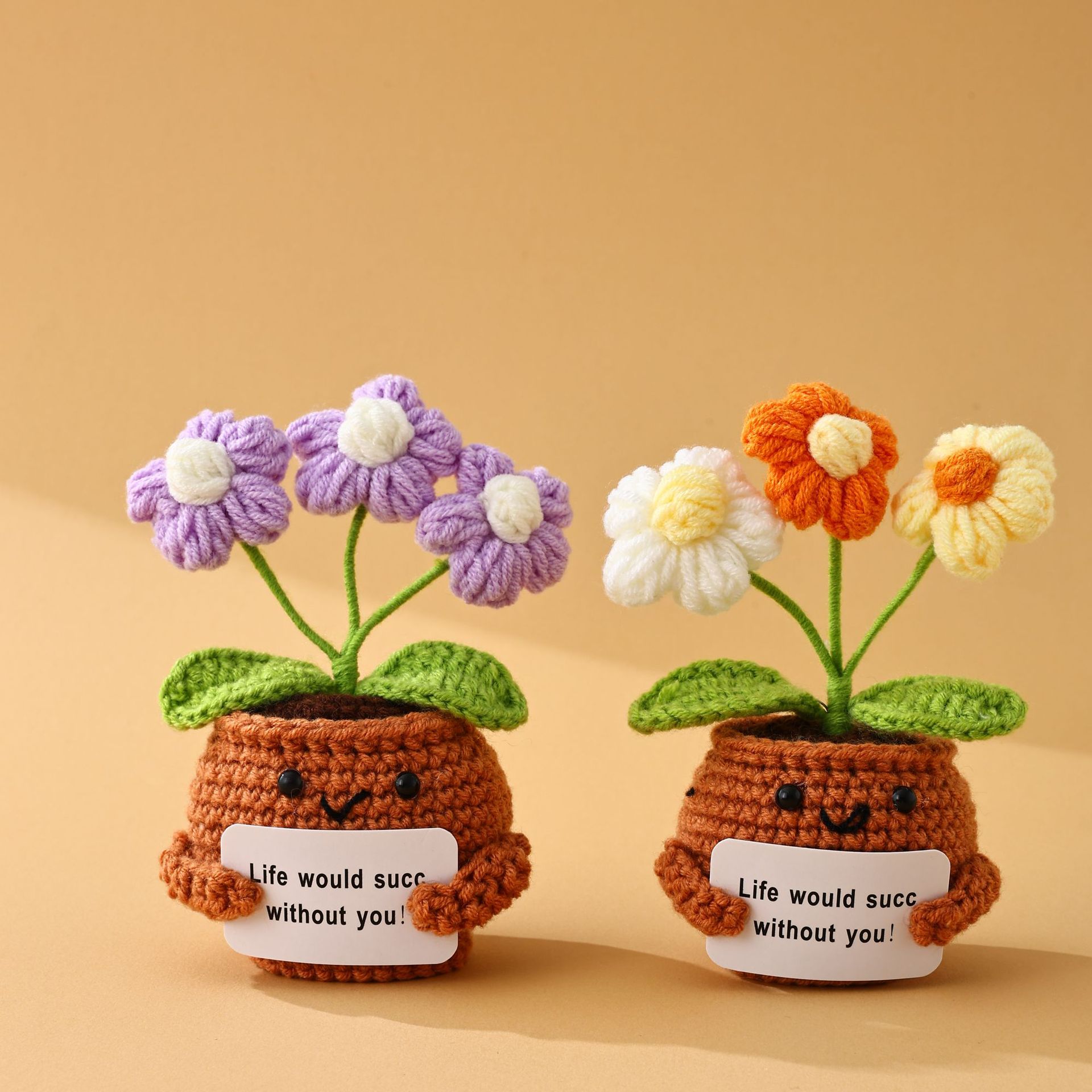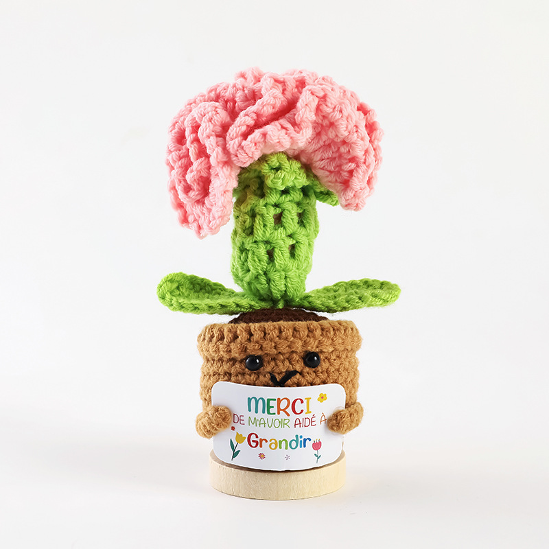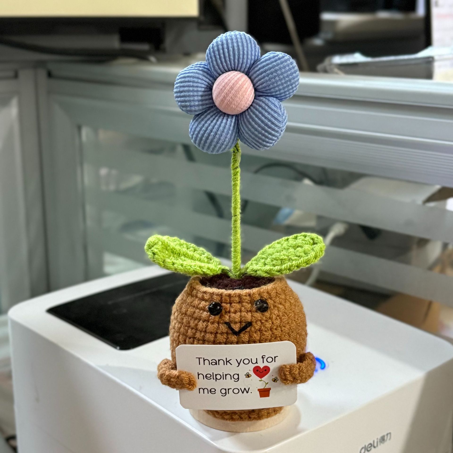 완성 된 양모 손으로 짠 긍정적 인 감자 인형 짠 화분 장식 뜨개질 긍정적 인 에너지 인공 꽃과 녹색 식물