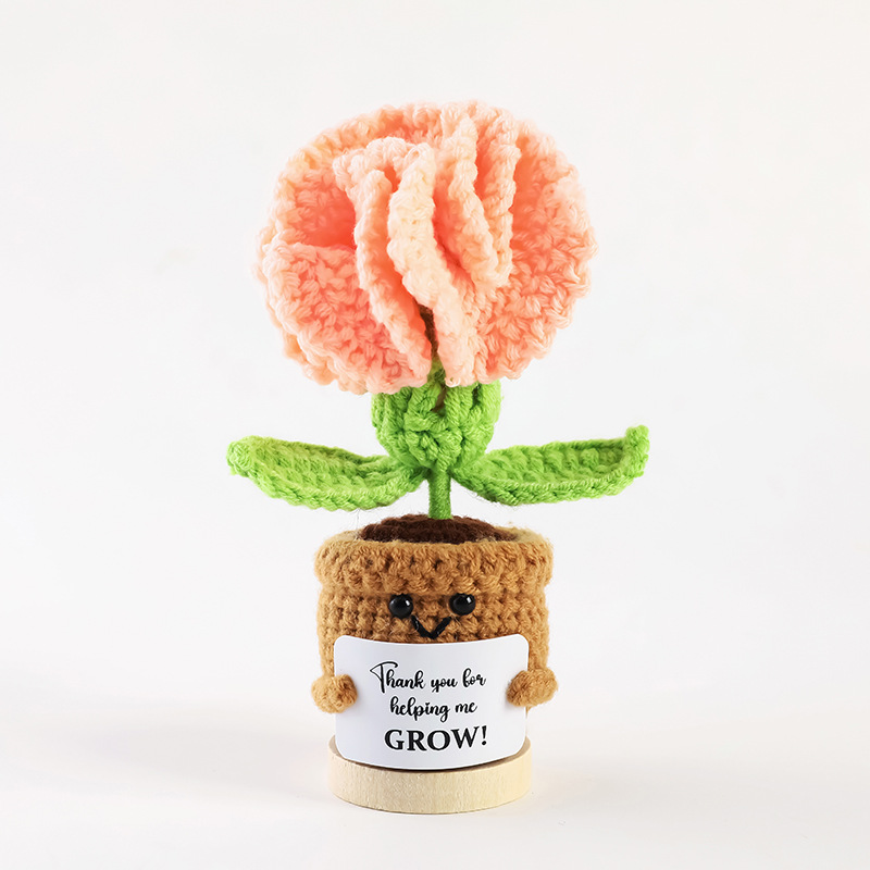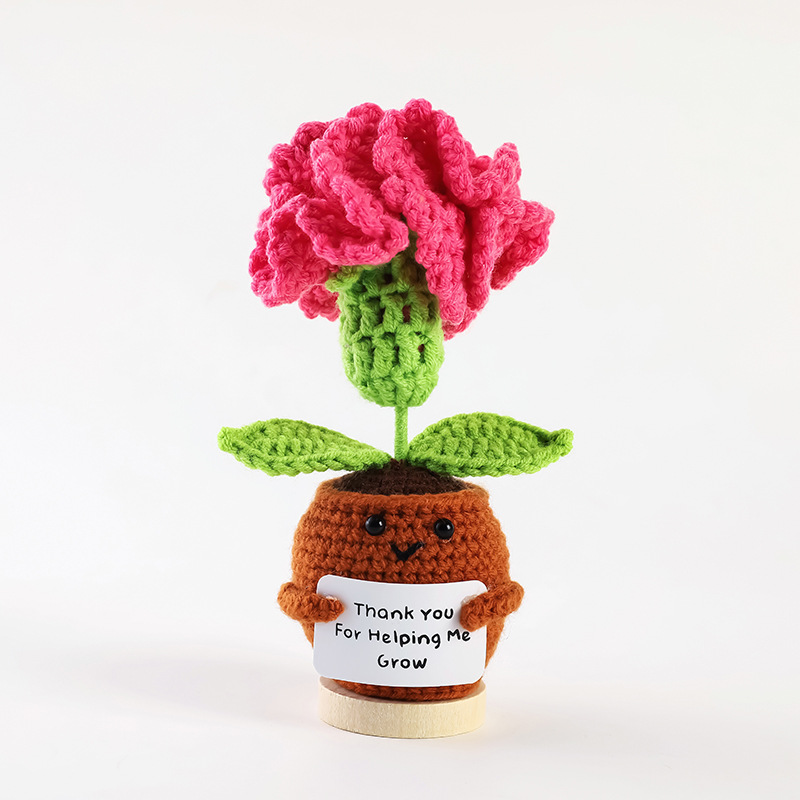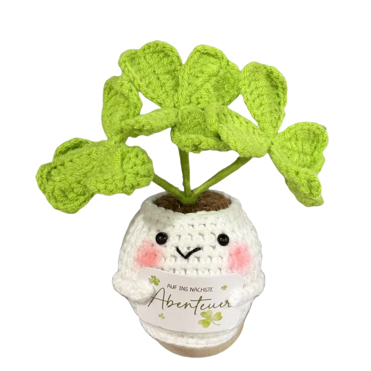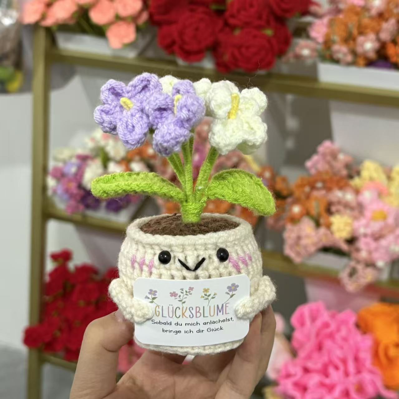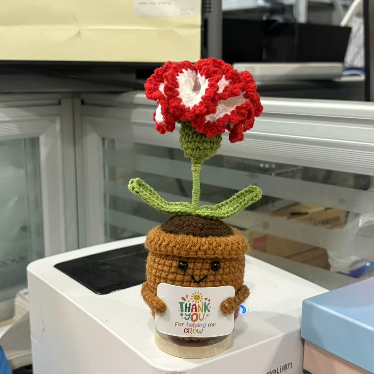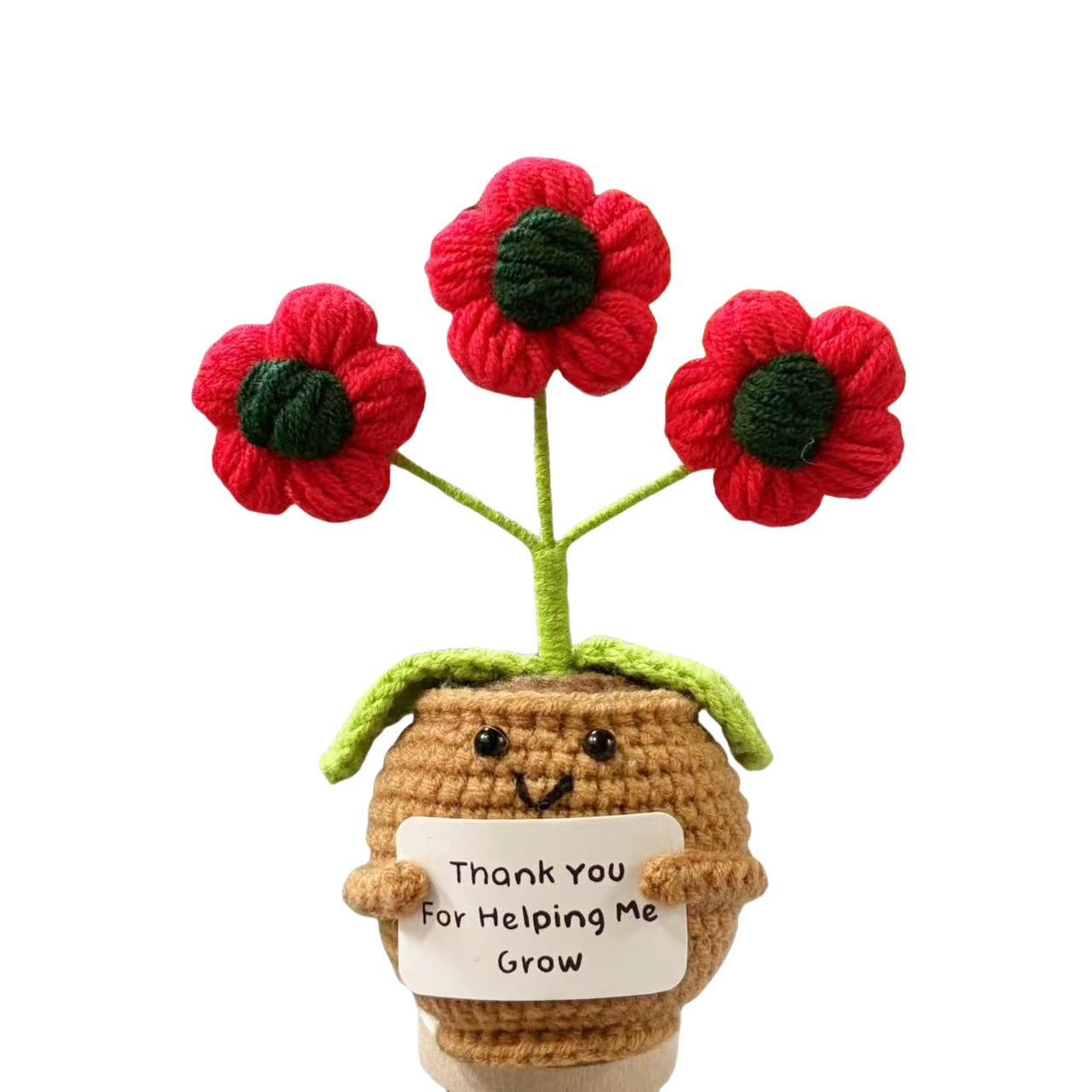 완성 된 양모 손으로 짠 긍정적 인 감자 인형 짠 화분 장식 뜨개질 긍정적 인 에너지 인공 꽃과 녹색 식물