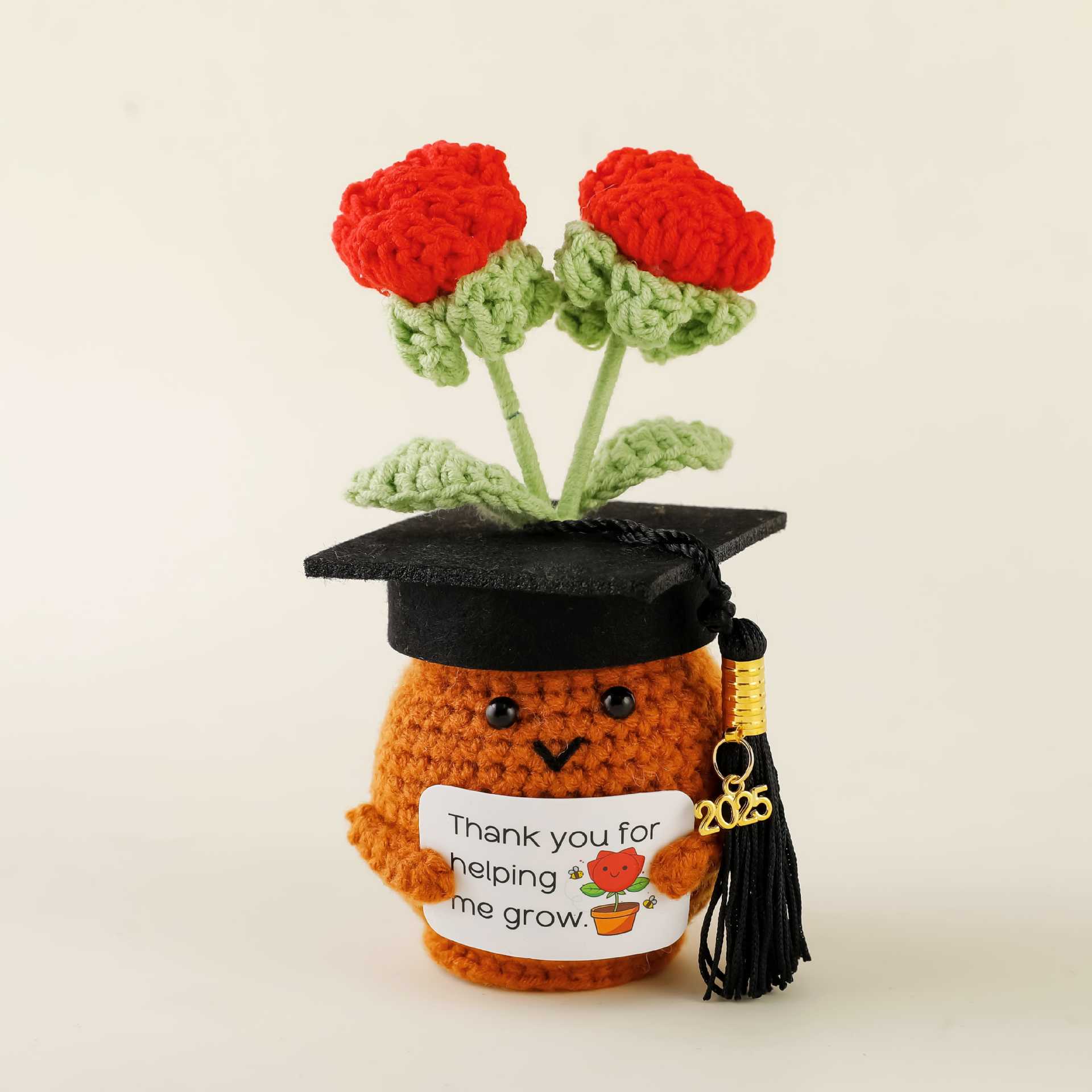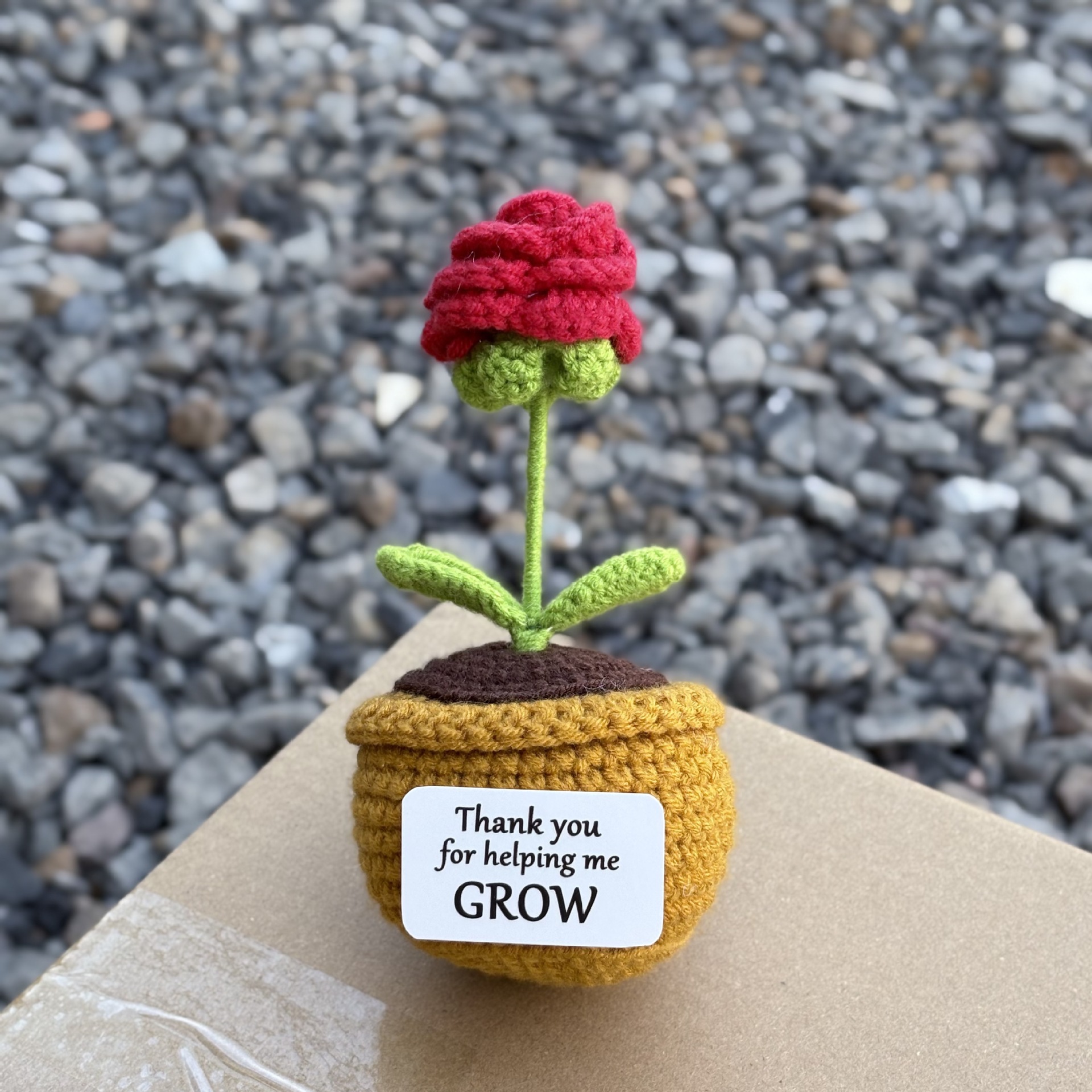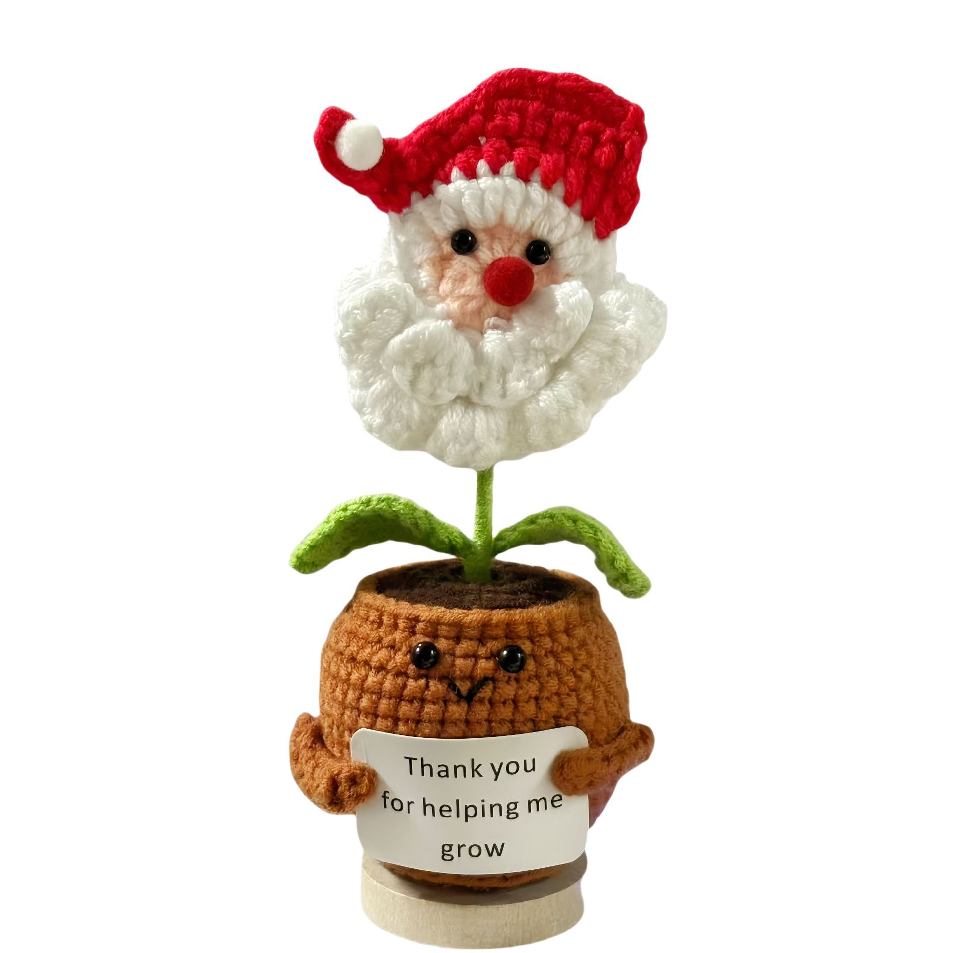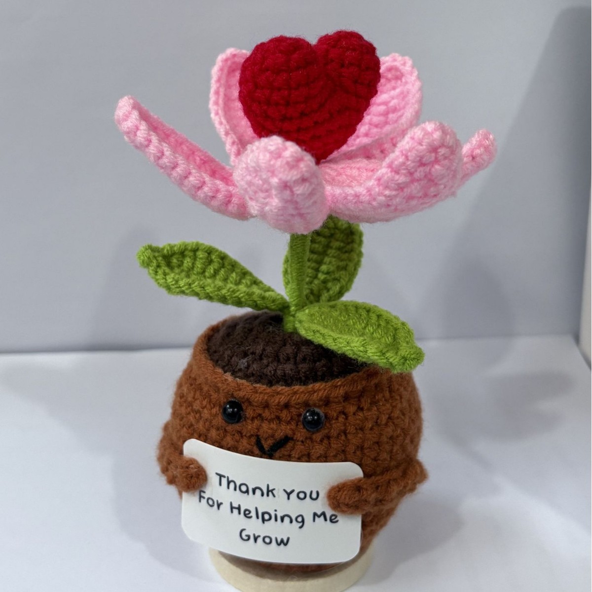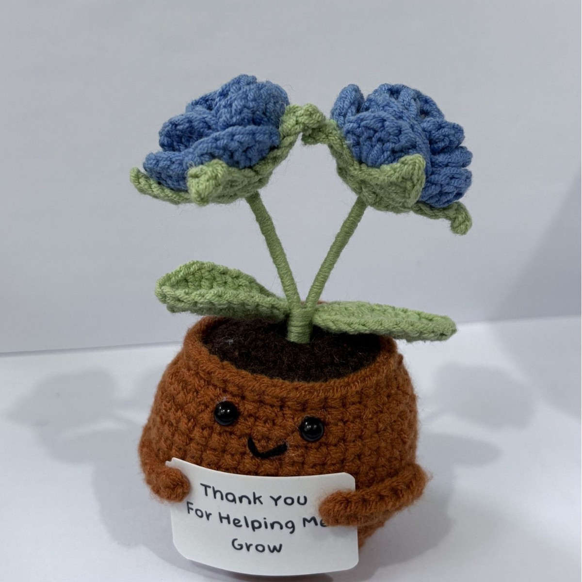 완성 된 양모 손으로 짠 긍정적 인 감자 인형 짠 화분 장식 뜨개질 긍정적 인 에너지 인공 꽃과 녹색 식물