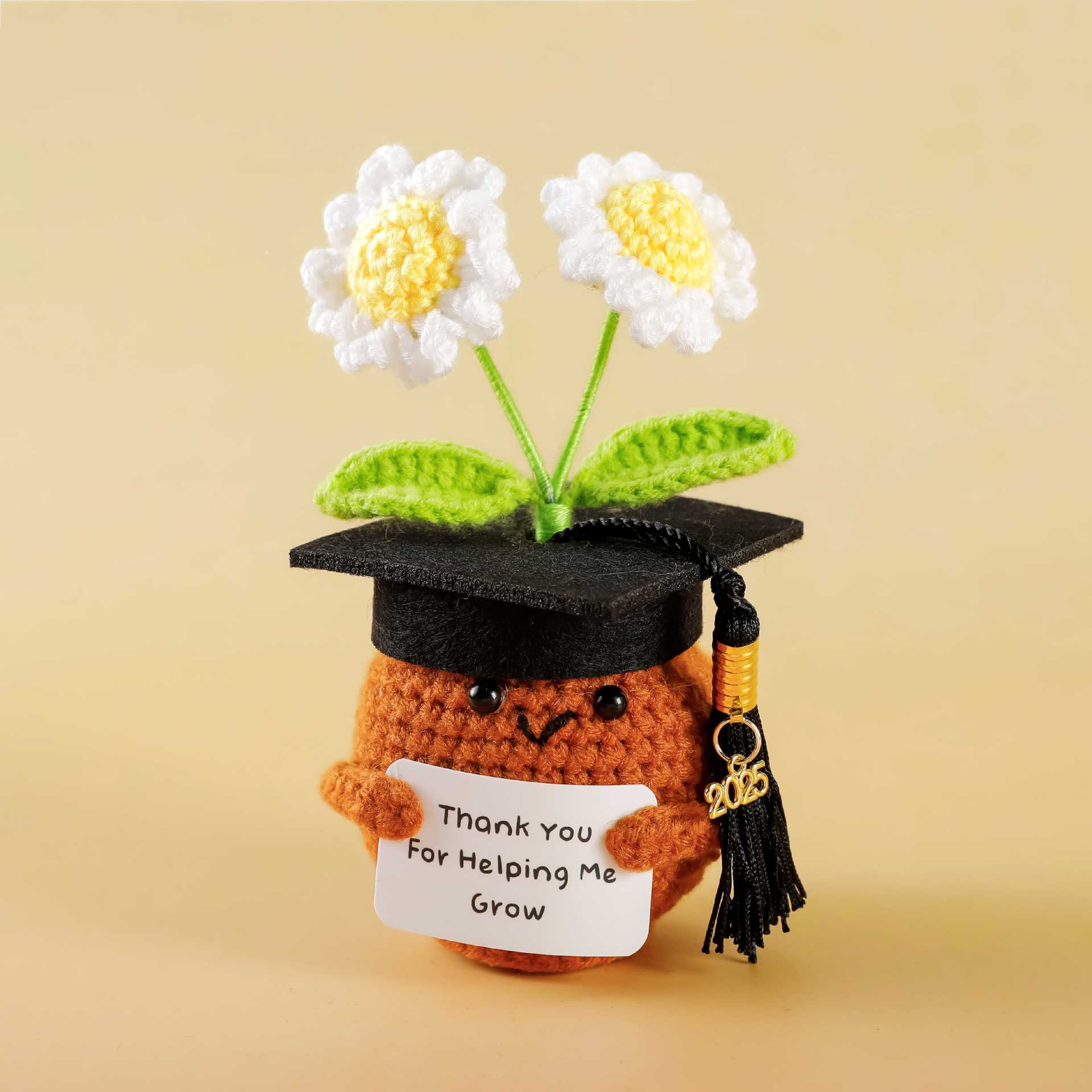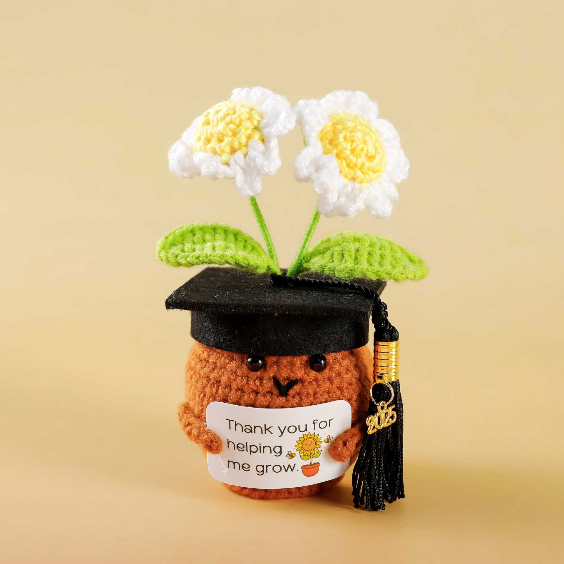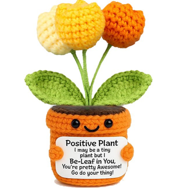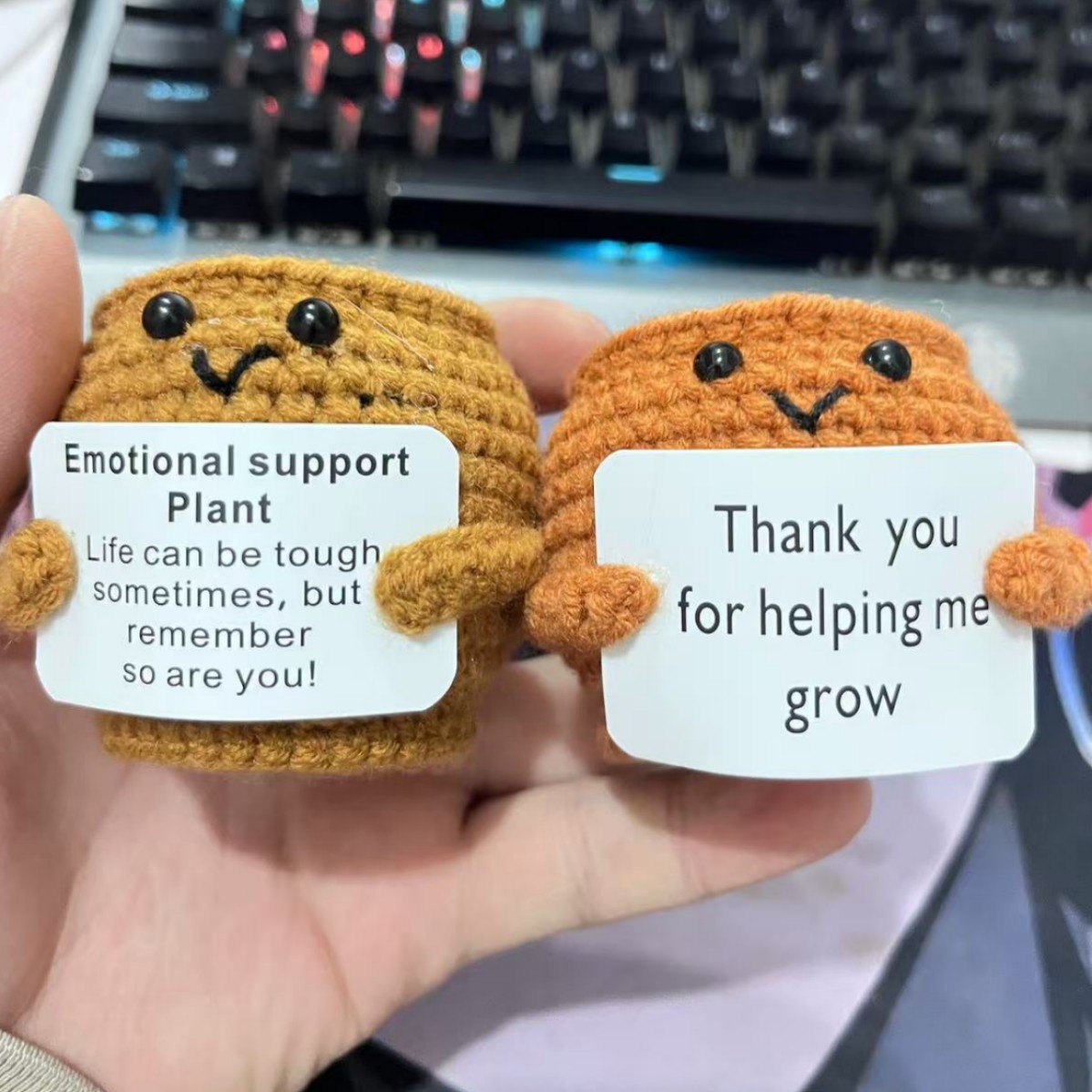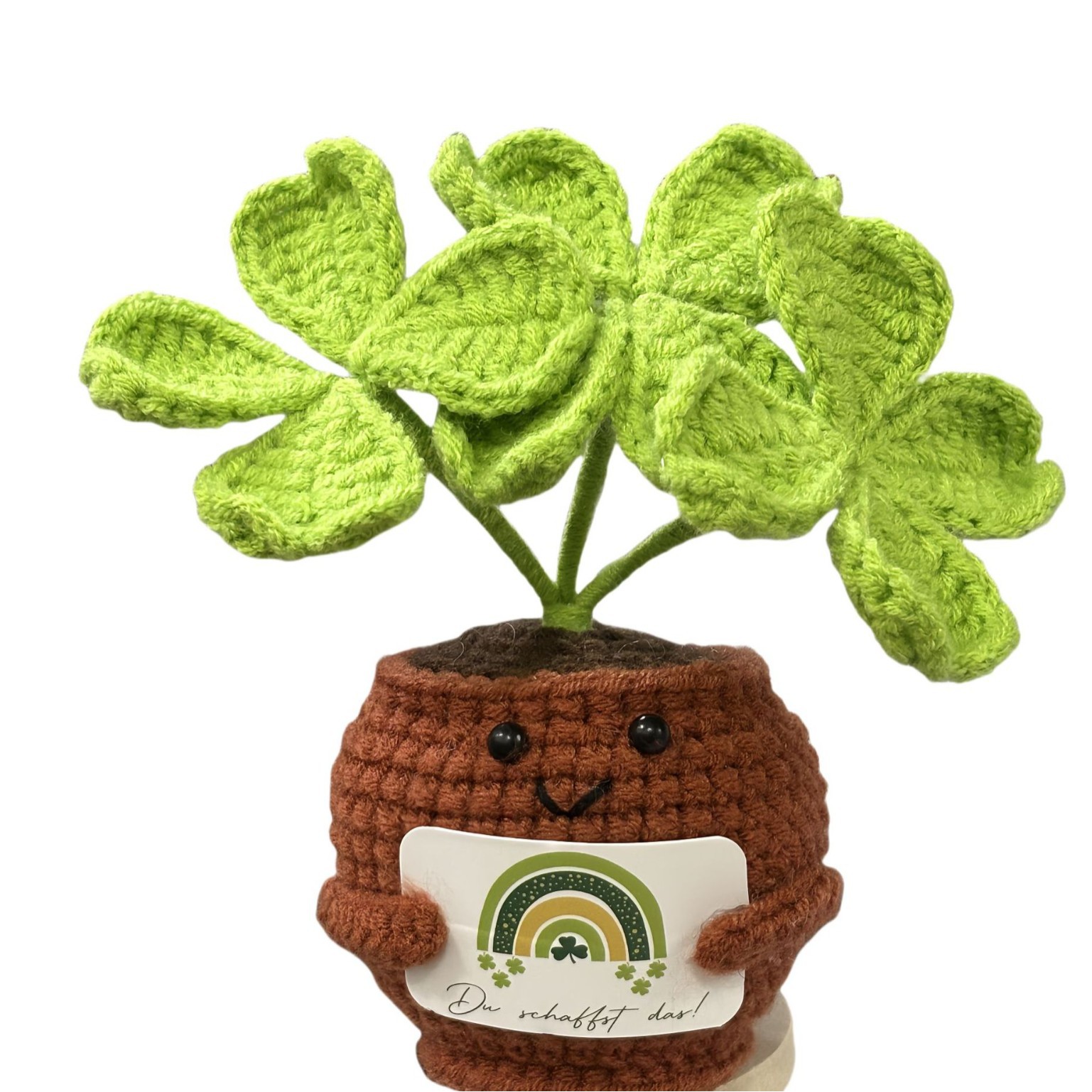 완성 된 양모 손으로 짠 긍정적 인 감자 인형 짠 화분 장식 뜨개질 긍정적 인 에너지 인공 꽃과 녹색 식물