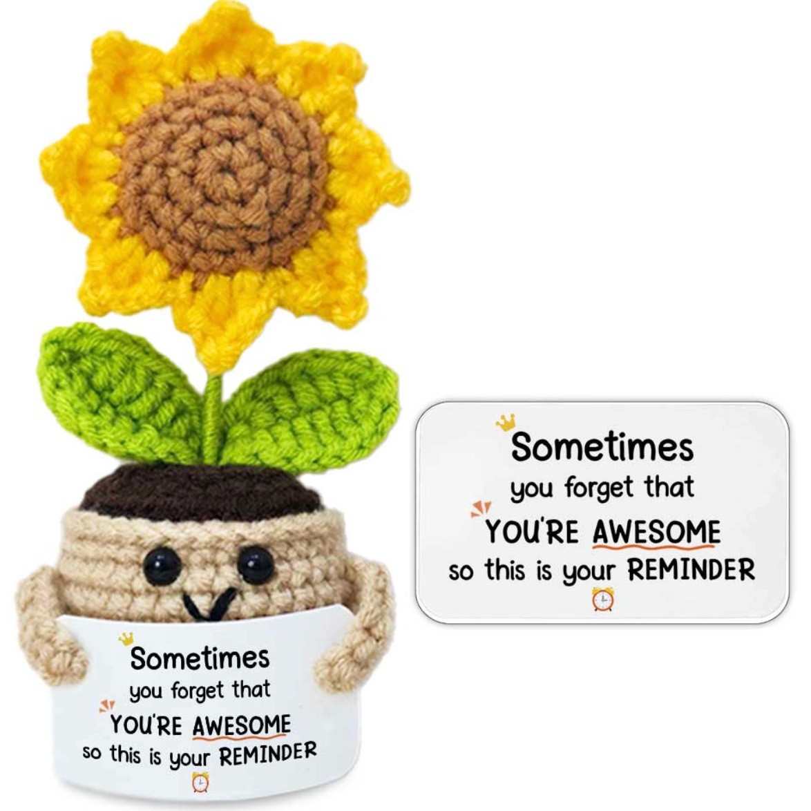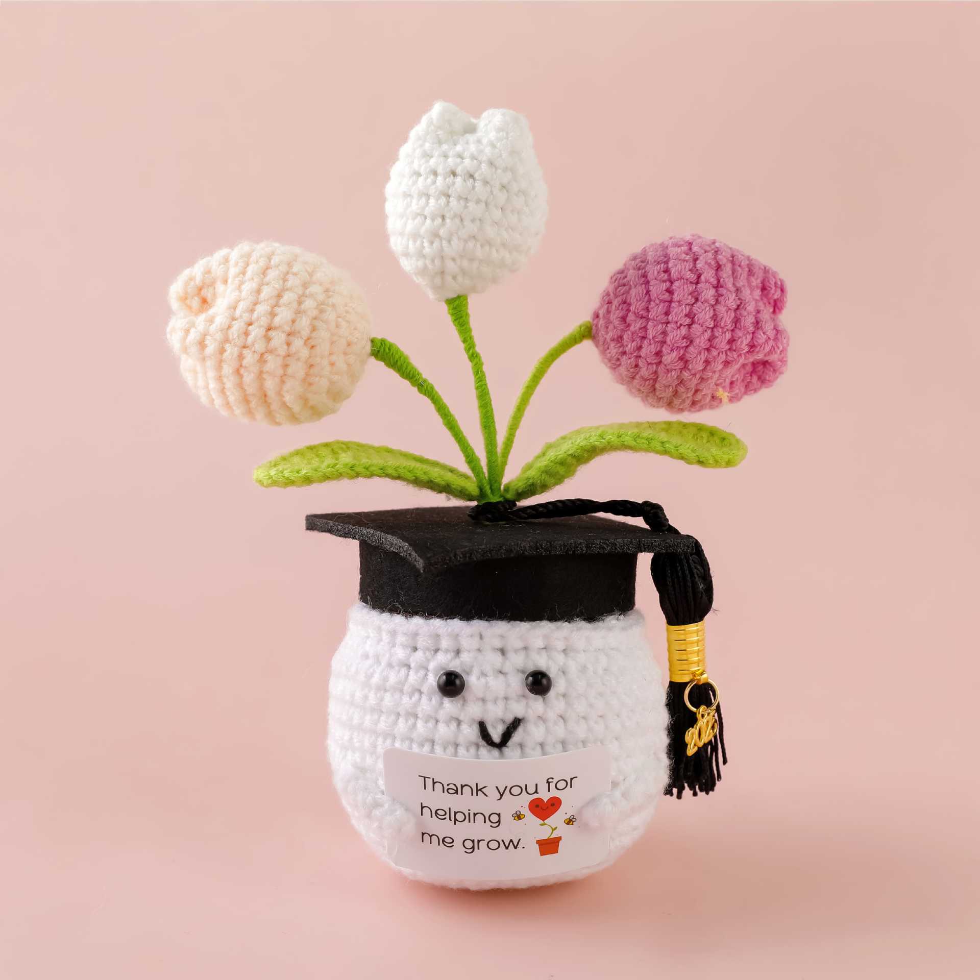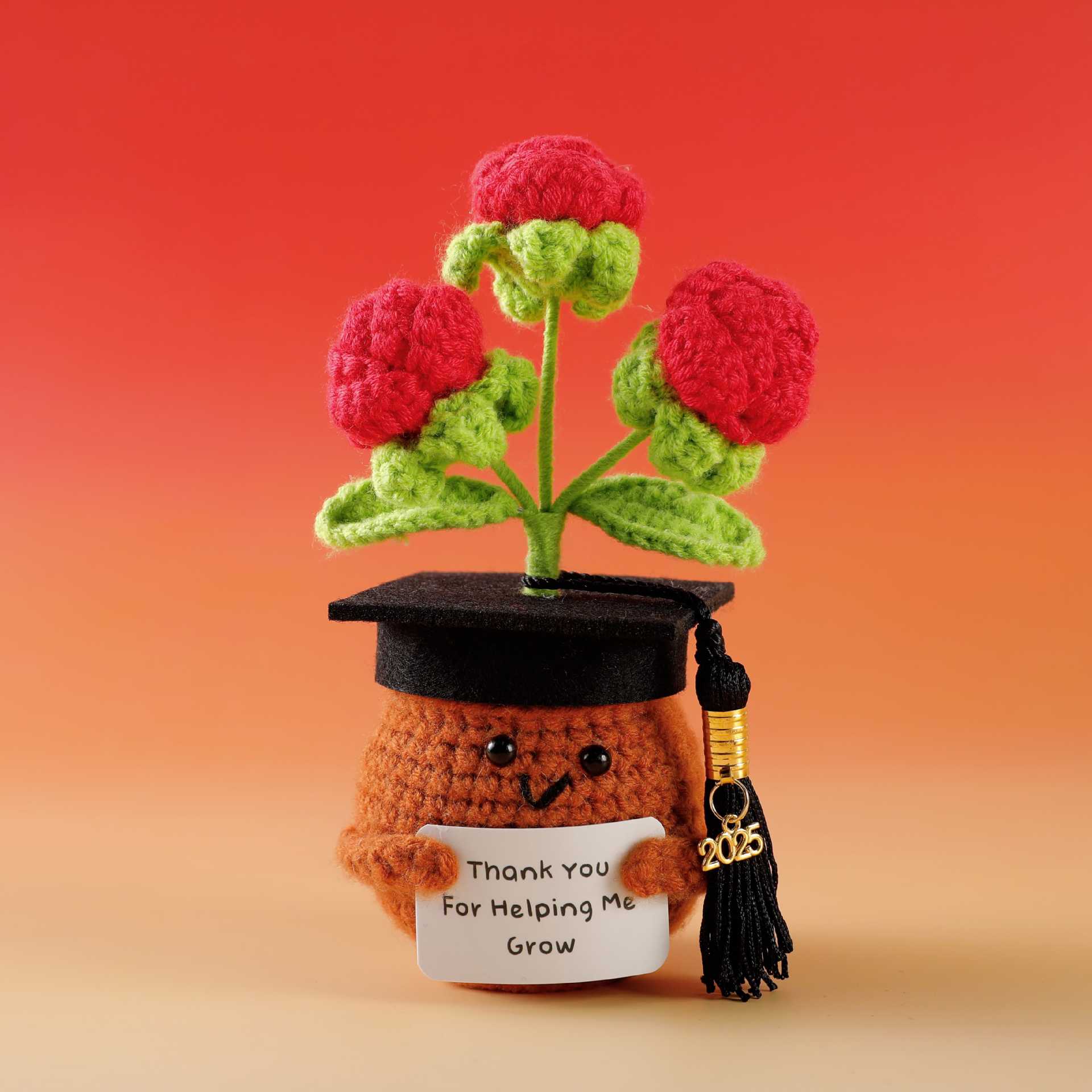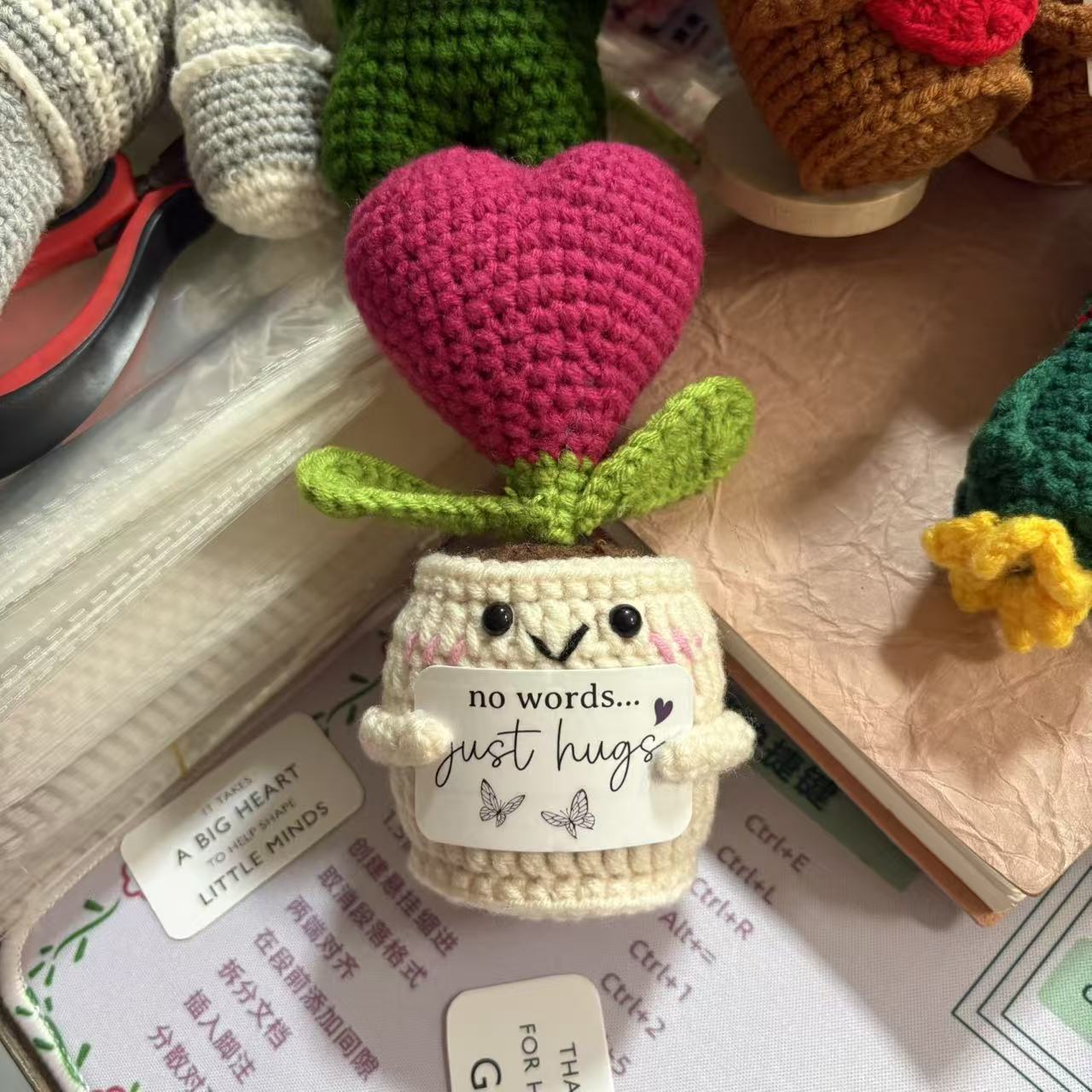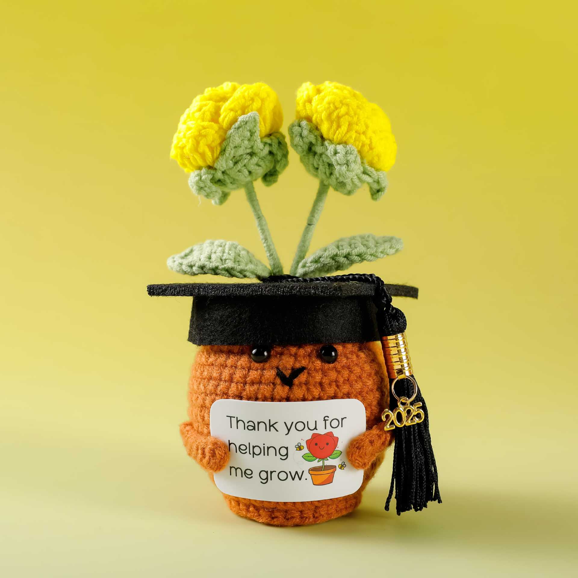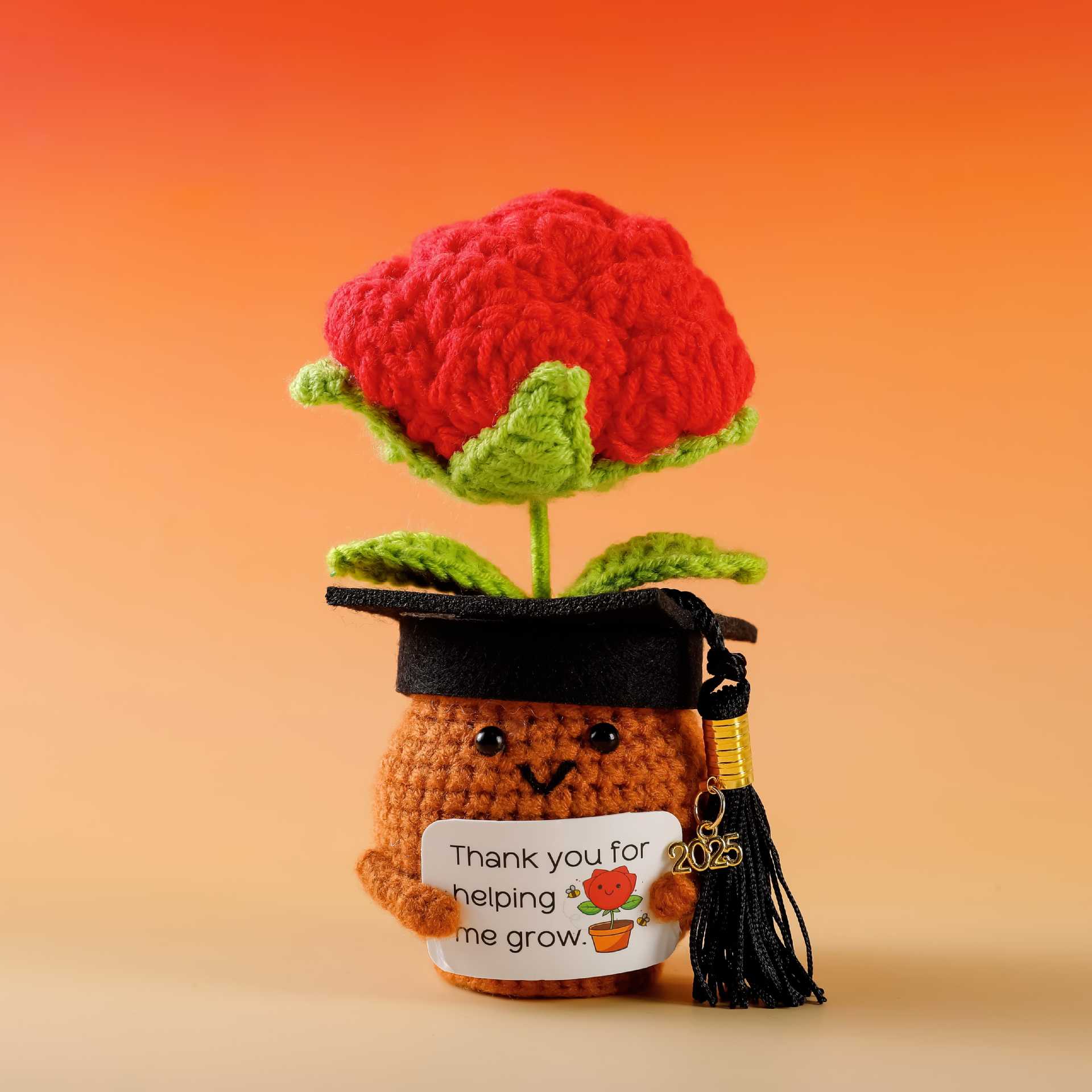 완성 된 양모 손으로 짠 긍정적 인 감자 인형 짠 화분 장식 뜨개질 긍정적 인 에너지 인공 꽃과 녹색 식물