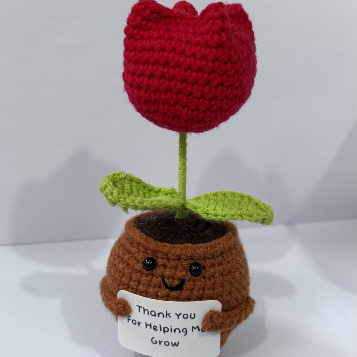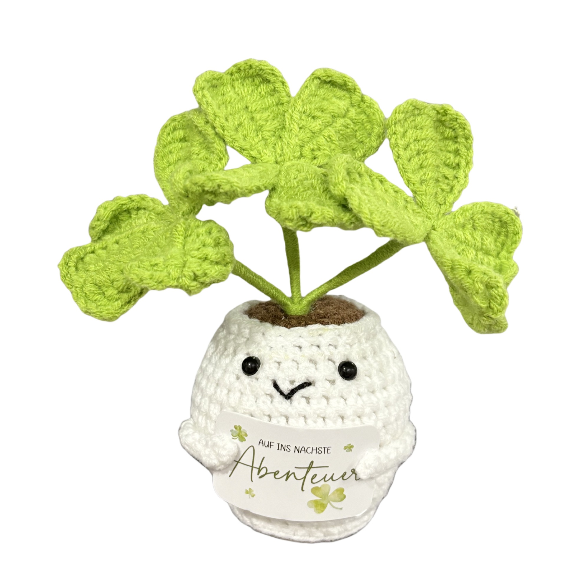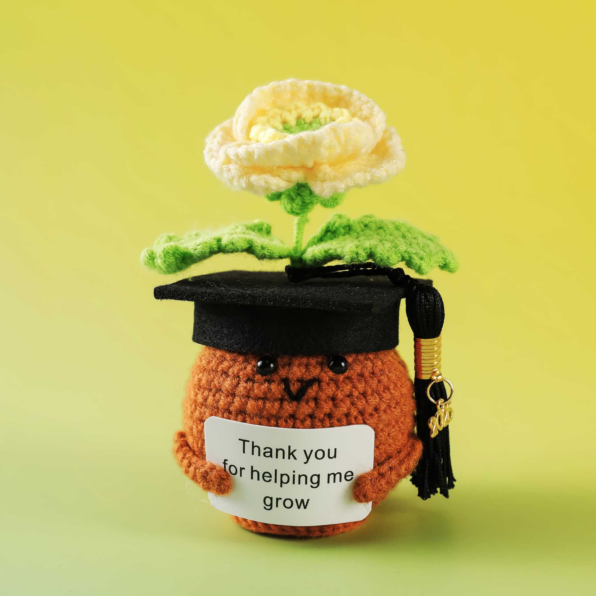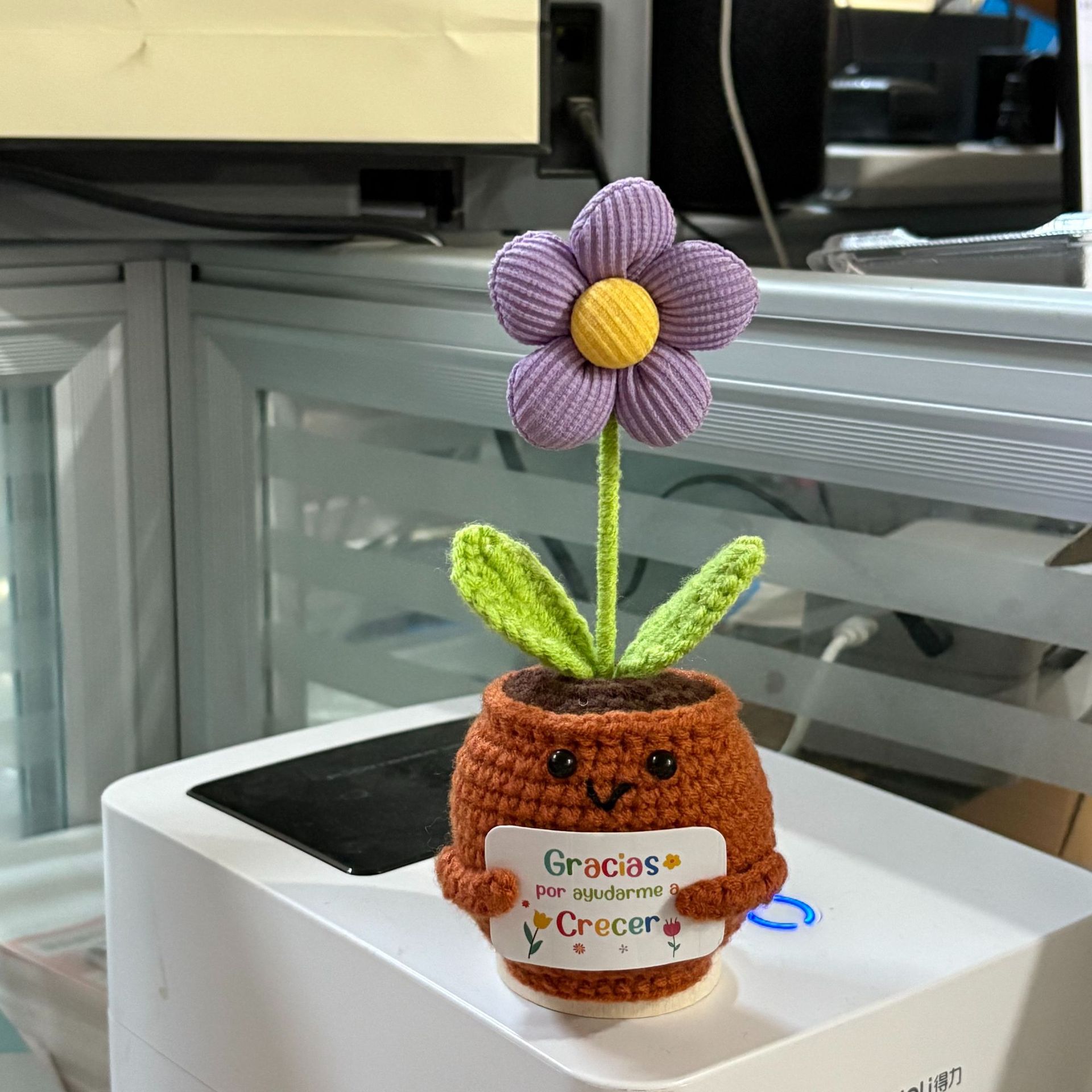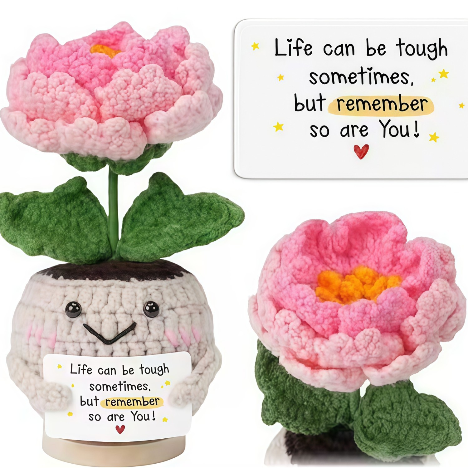 완성 된 양모 손으로 짠 긍정적 인 감자 인형 짠 화분 장식 뜨개질 긍정적 인 에너지 인공 꽃과 녹색 식물