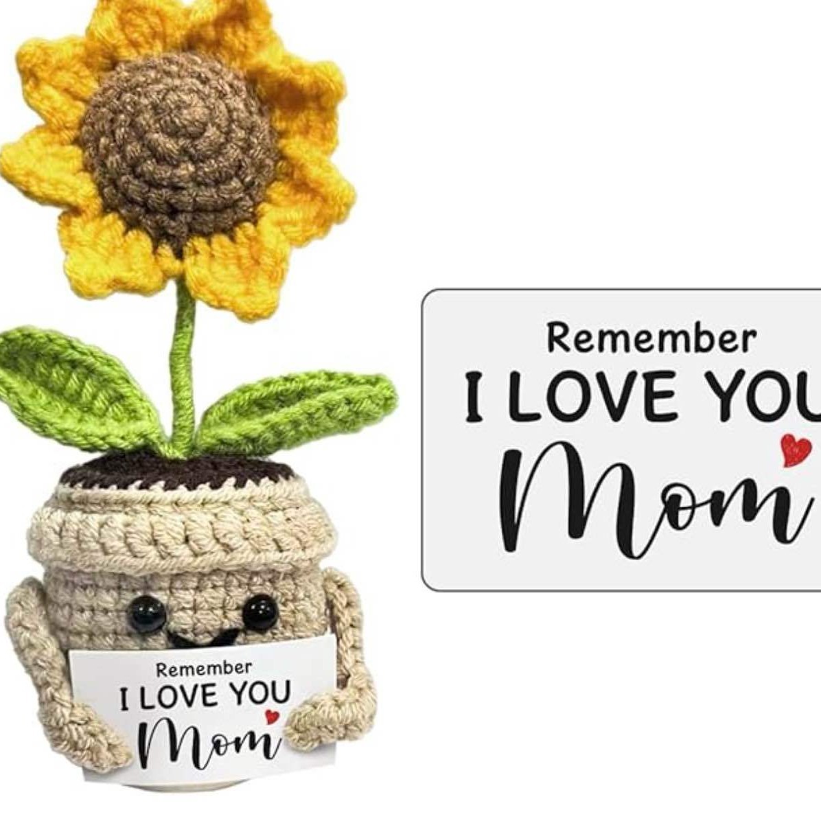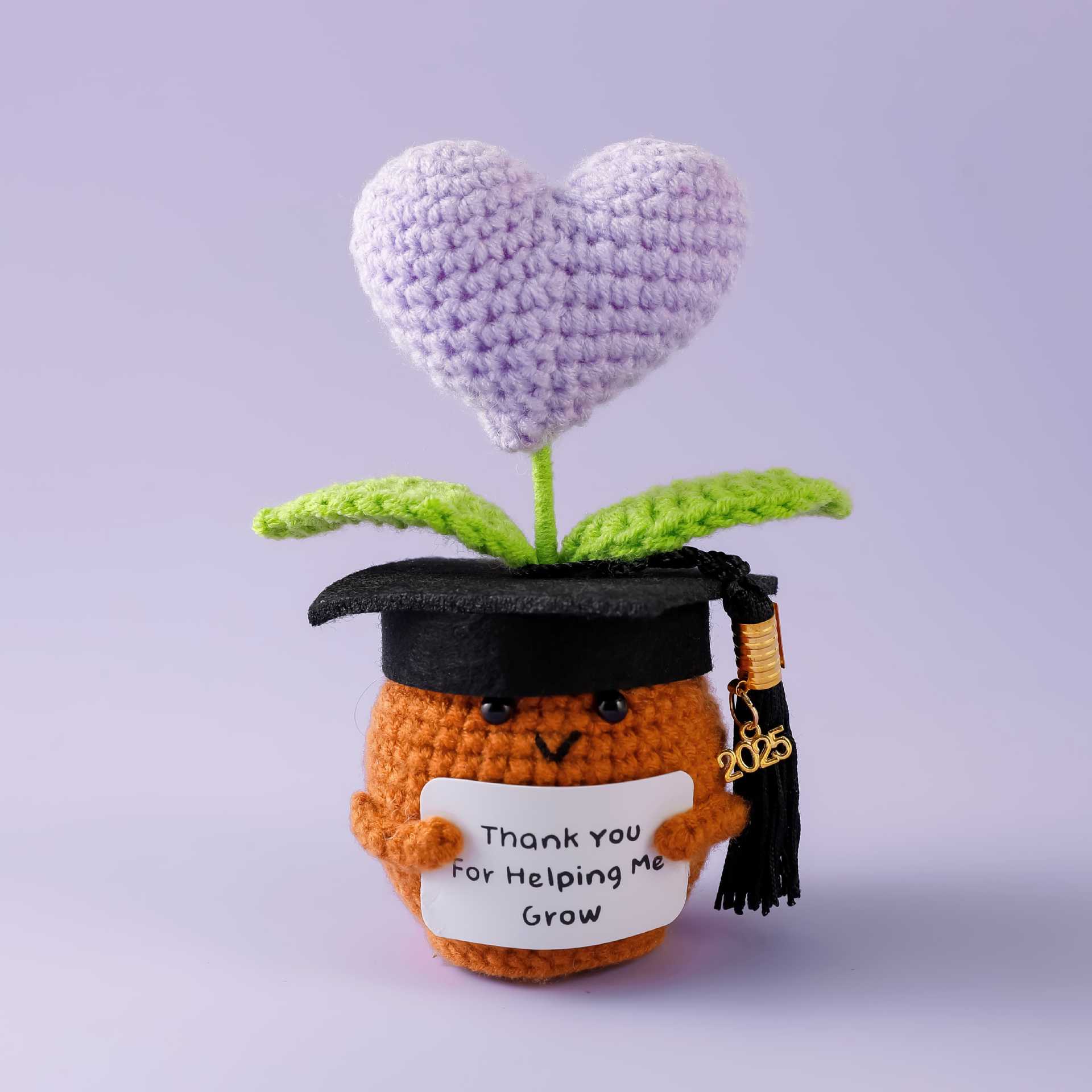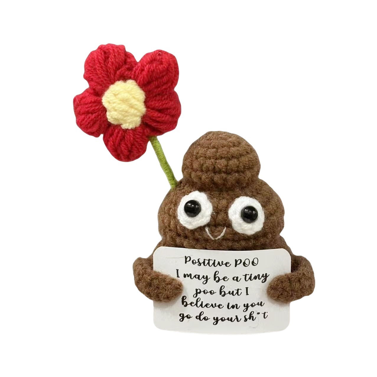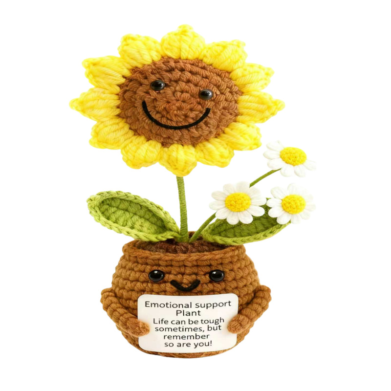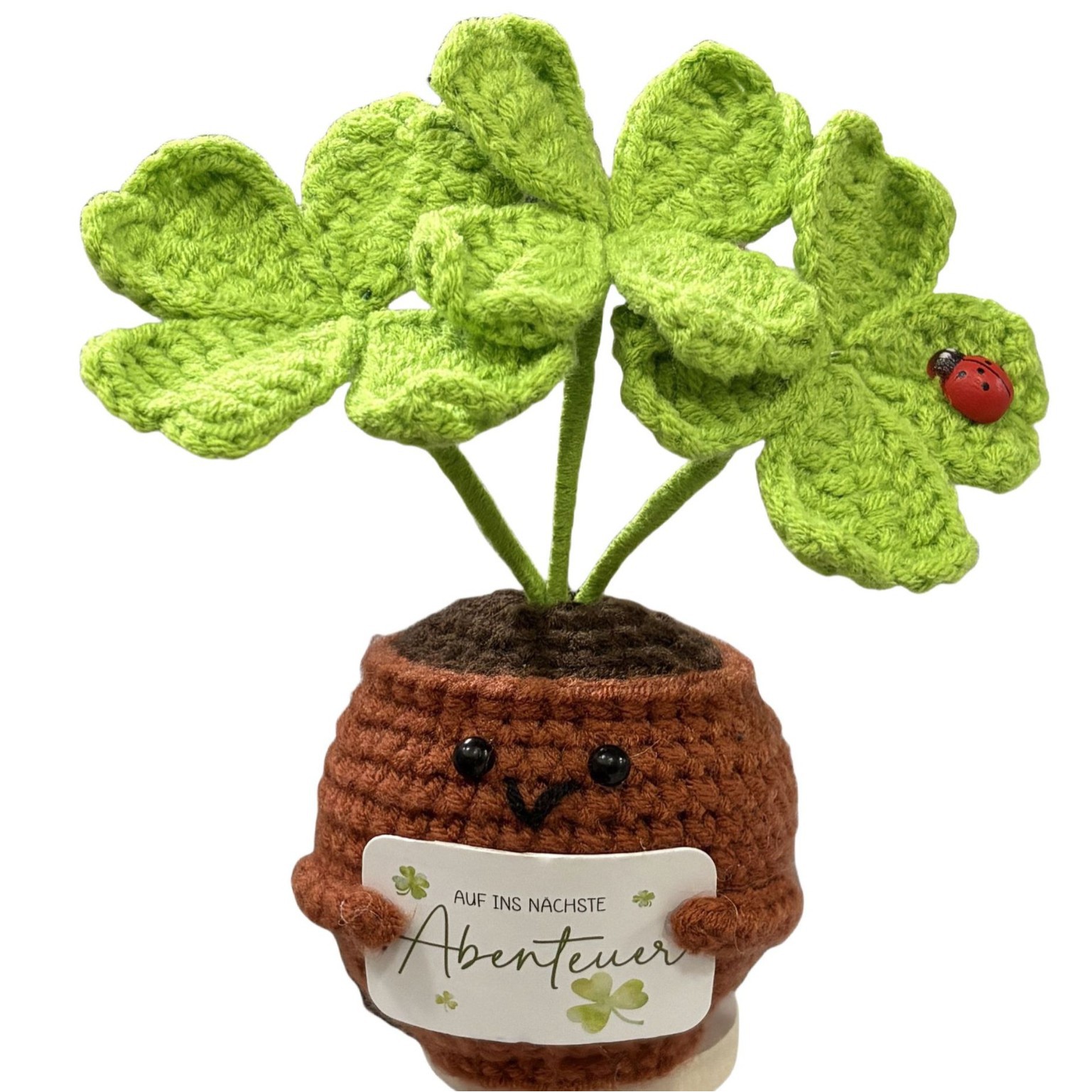 완성 된 양모 손으로 짠 긍정적 인 감자 인형 짠 화분 장식 뜨개질 긍정적 인 에너지 인공 꽃과 녹색 식물
