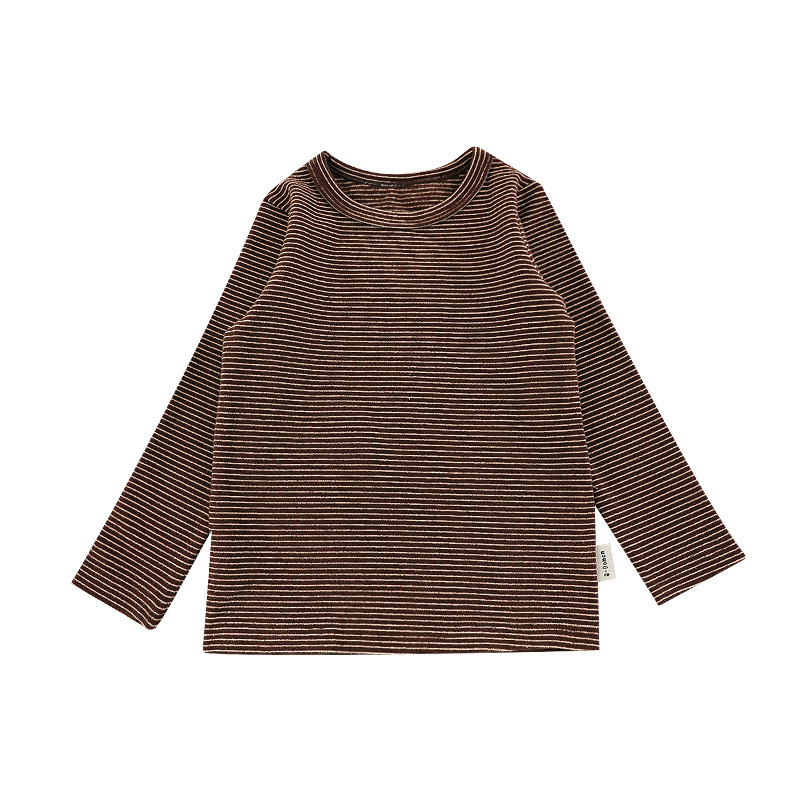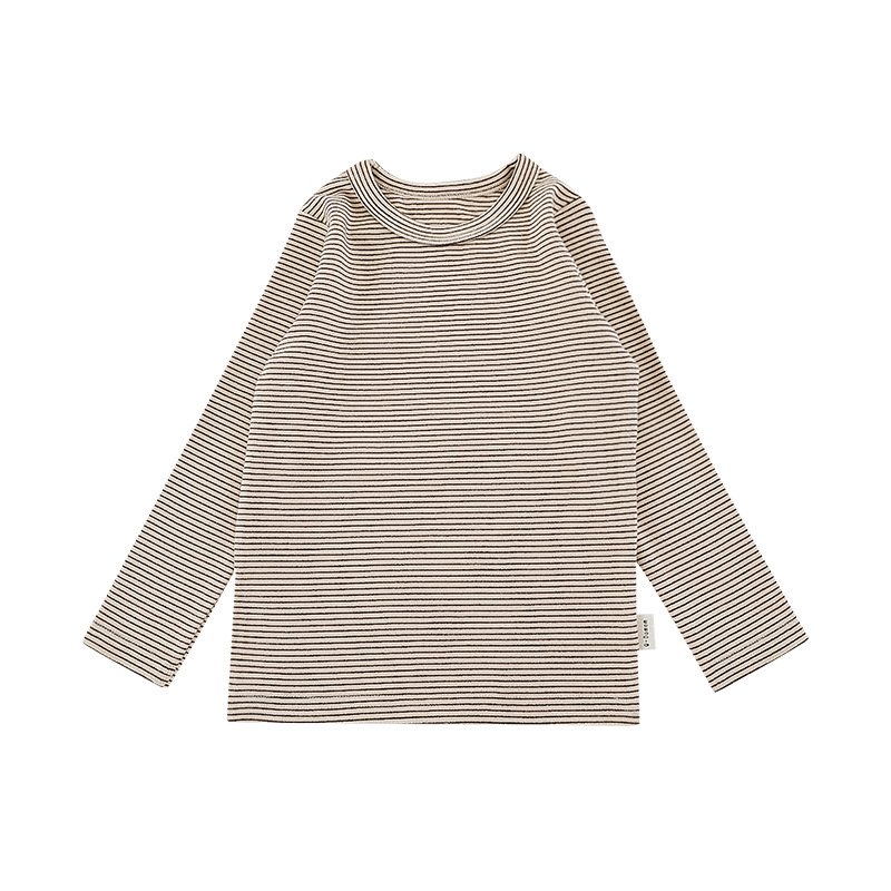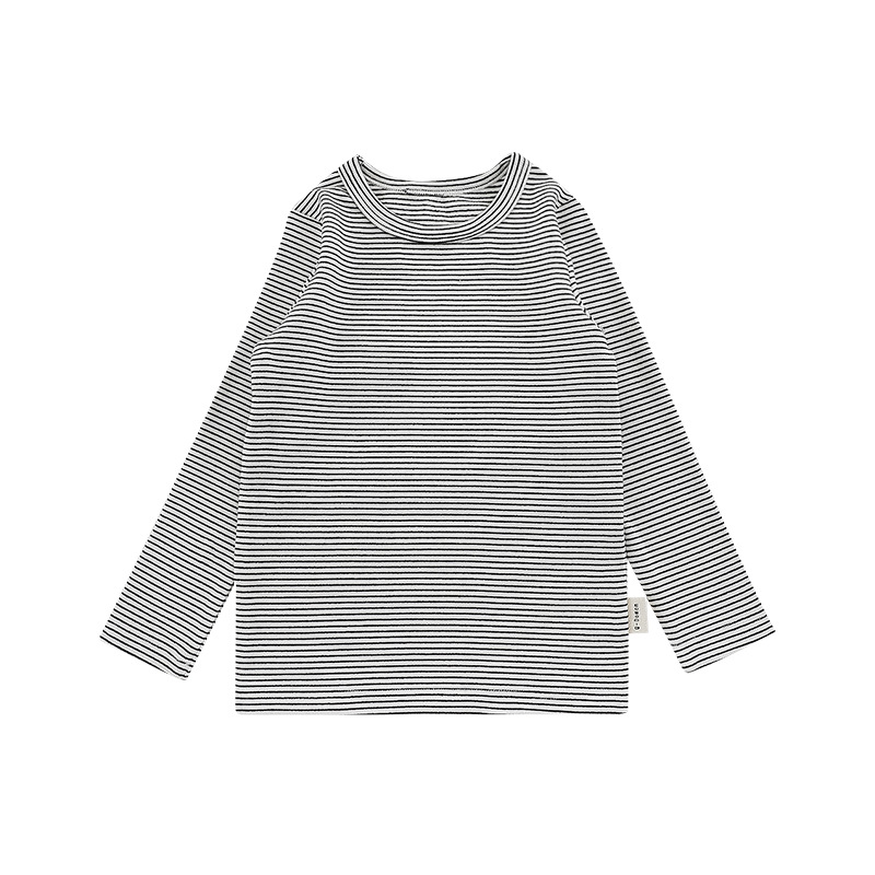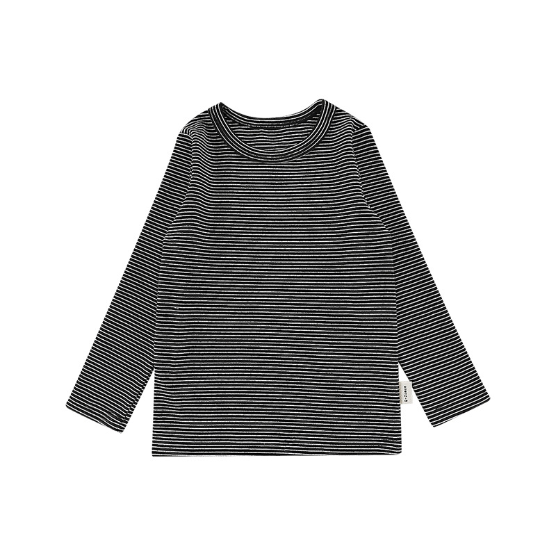 Qiu Duomeng 소녀 줄무늬 크루 넥베이스 셔츠 2024 가을 새 어린이 한국 긴 소매 티셔츠 베이비 탑