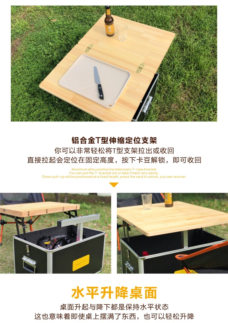 Jenson 야외 자동차 저장 상자 캠핑 테이블 상자 알루미늄 접이식 휴대용 피크닉 다기능 모바일 주방 자동차 매직 박스