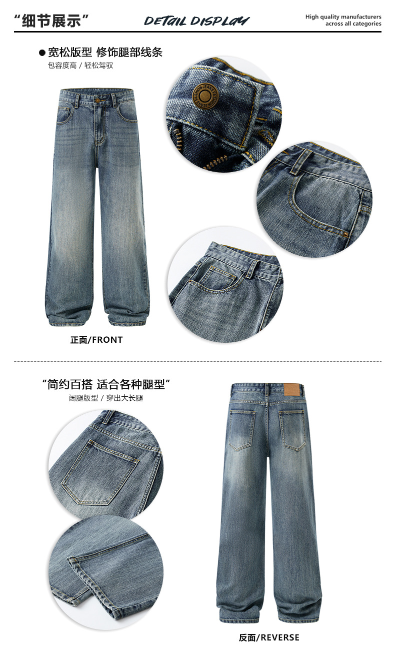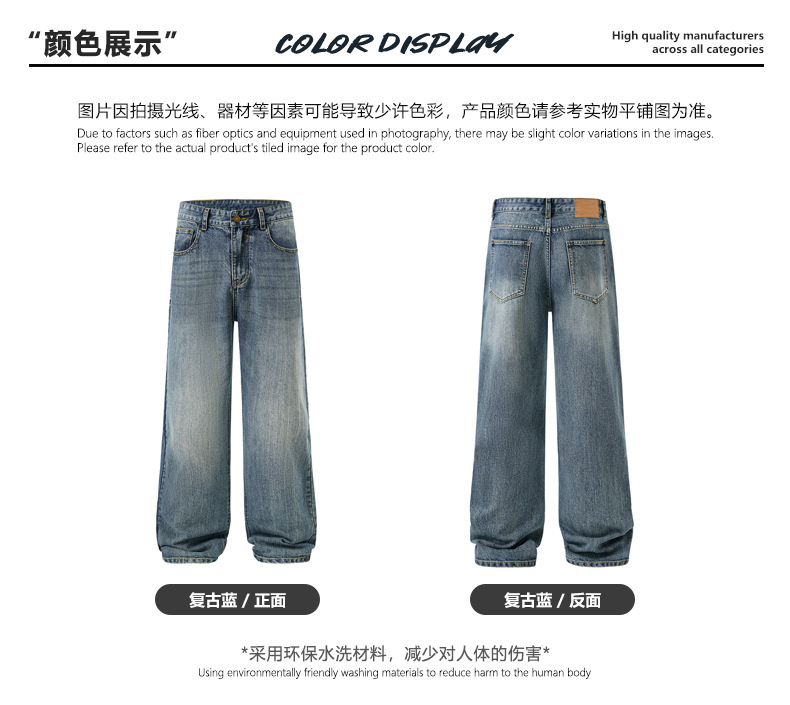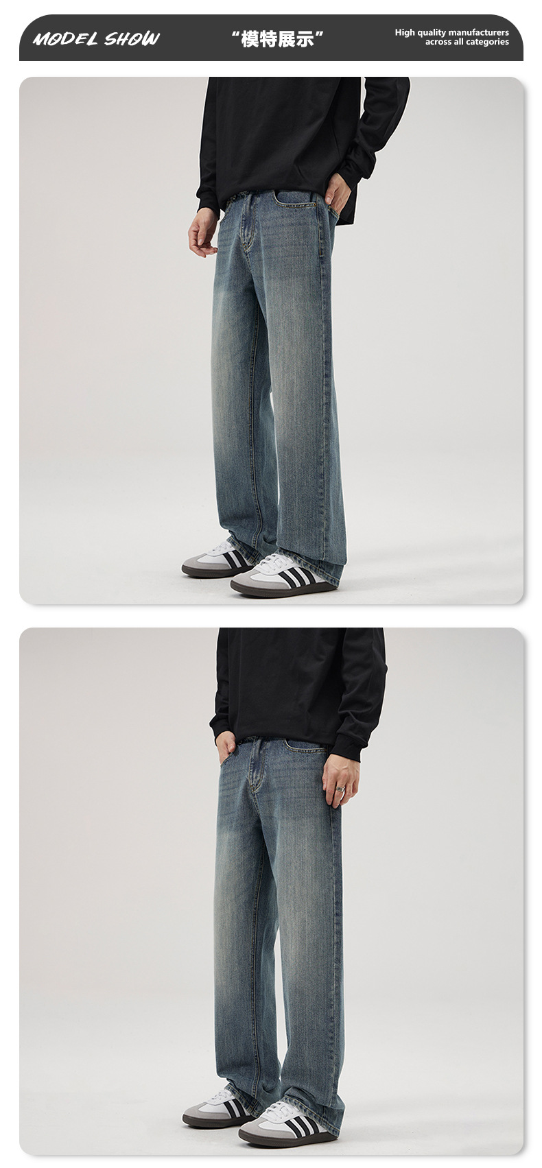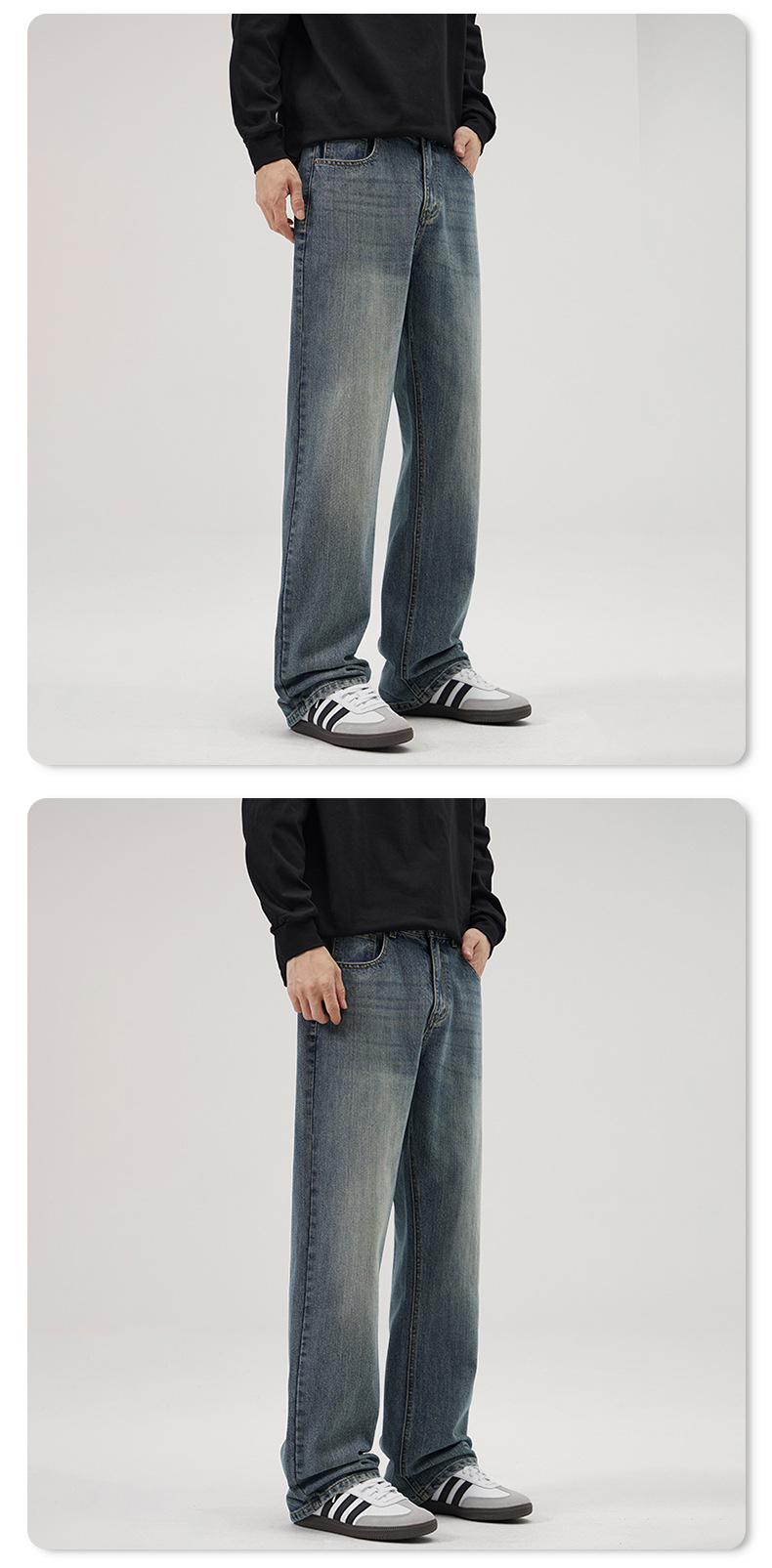 LKTM 남자 # 아메리칸 레트로 헤비 세탁 대나무 청바지 남자 느슨한 슬리밍 올 매치 스트레이트 롱 바지스토어 가기