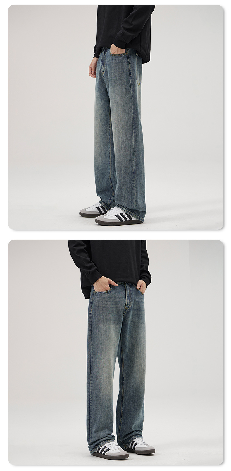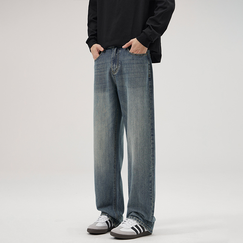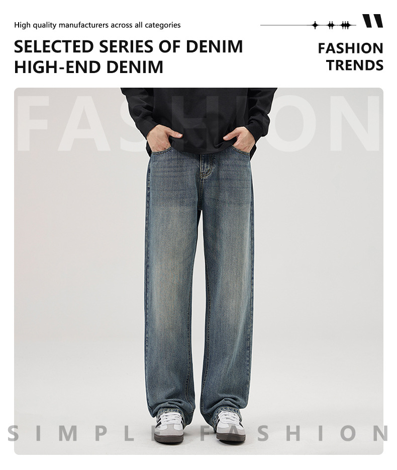 LKTM 남자 # 아메리칸 레트로 헤비 세탁 대나무 청바지 남자 느슨한 슬리밍 올 매치 스트레이트 롱 바지