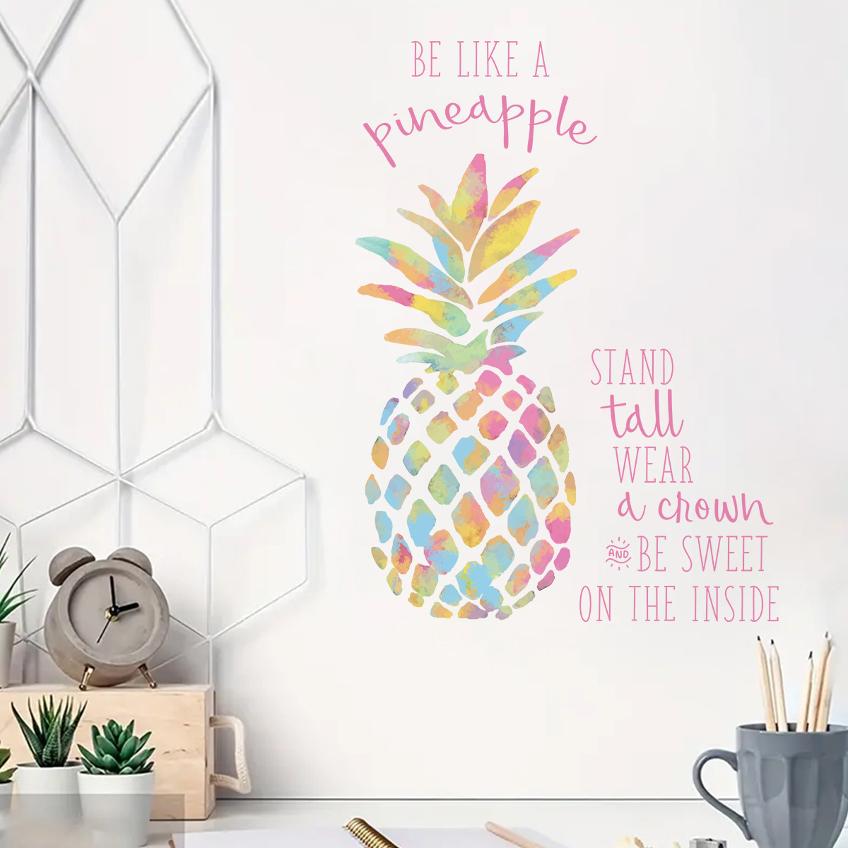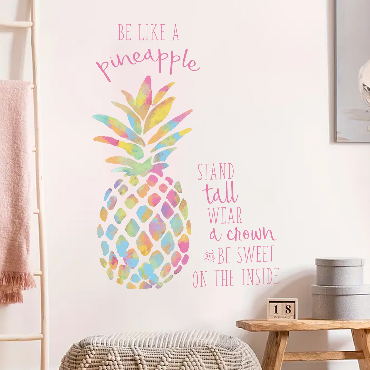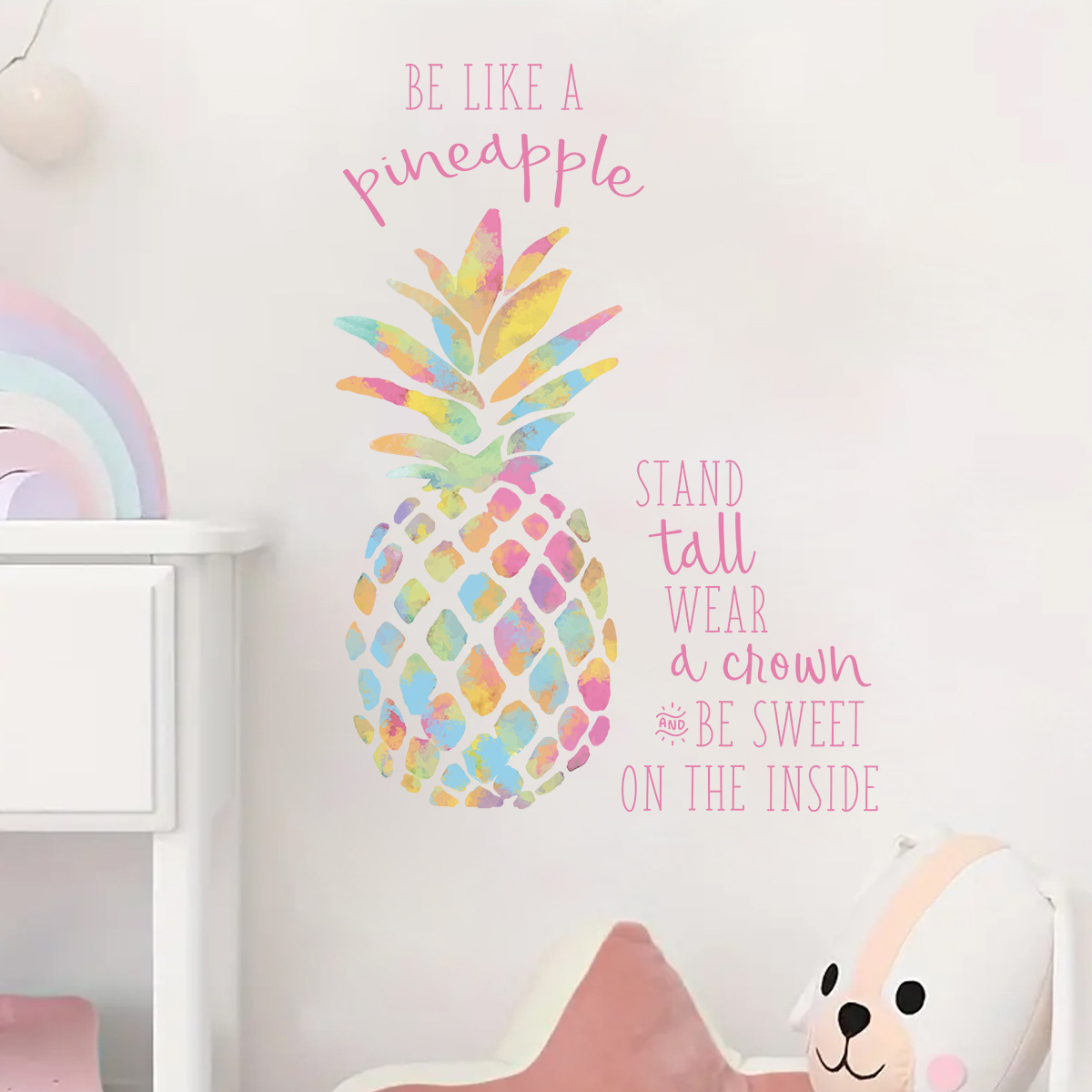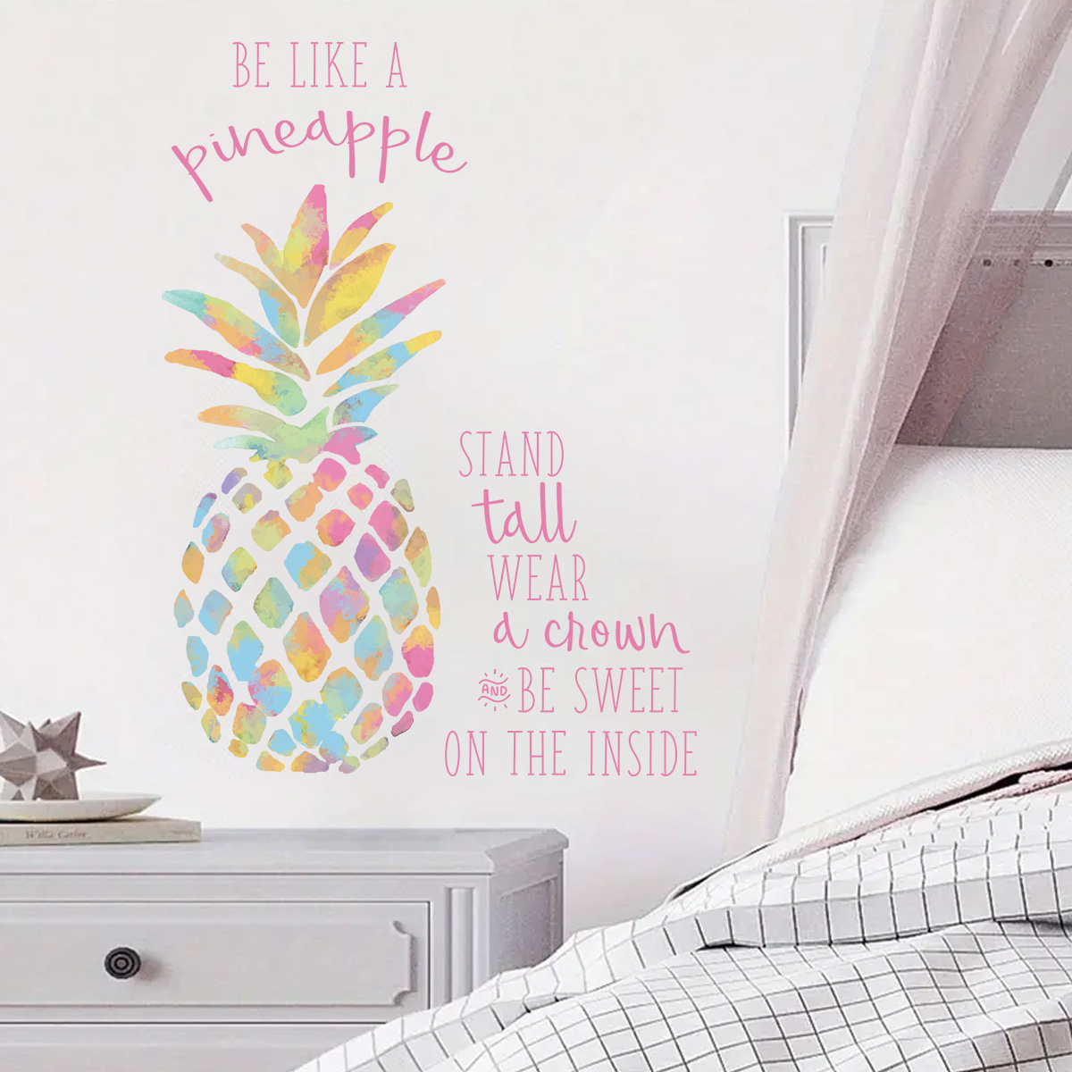 만화 다채로운 파인애플 영어 문구 자기 접착 벽 스티커 소녀 스타일 방 배경 벽 장식 스티커 BR0841E