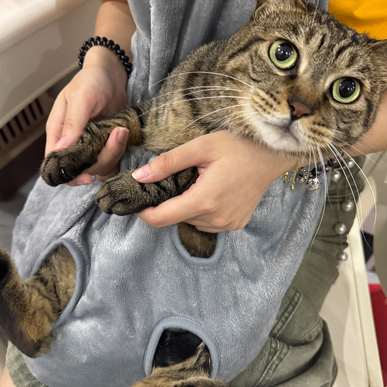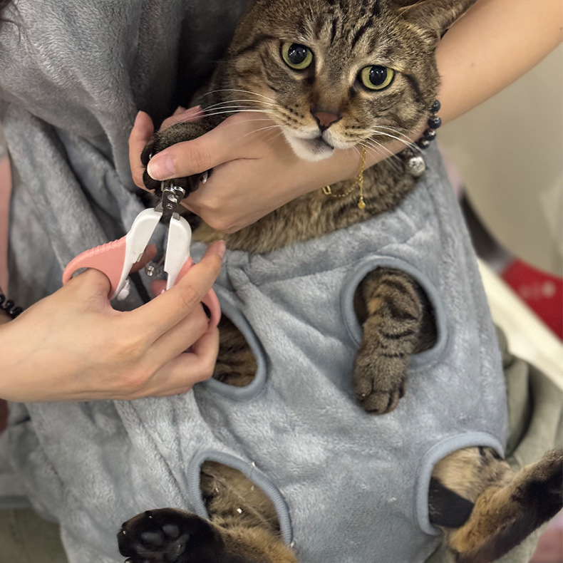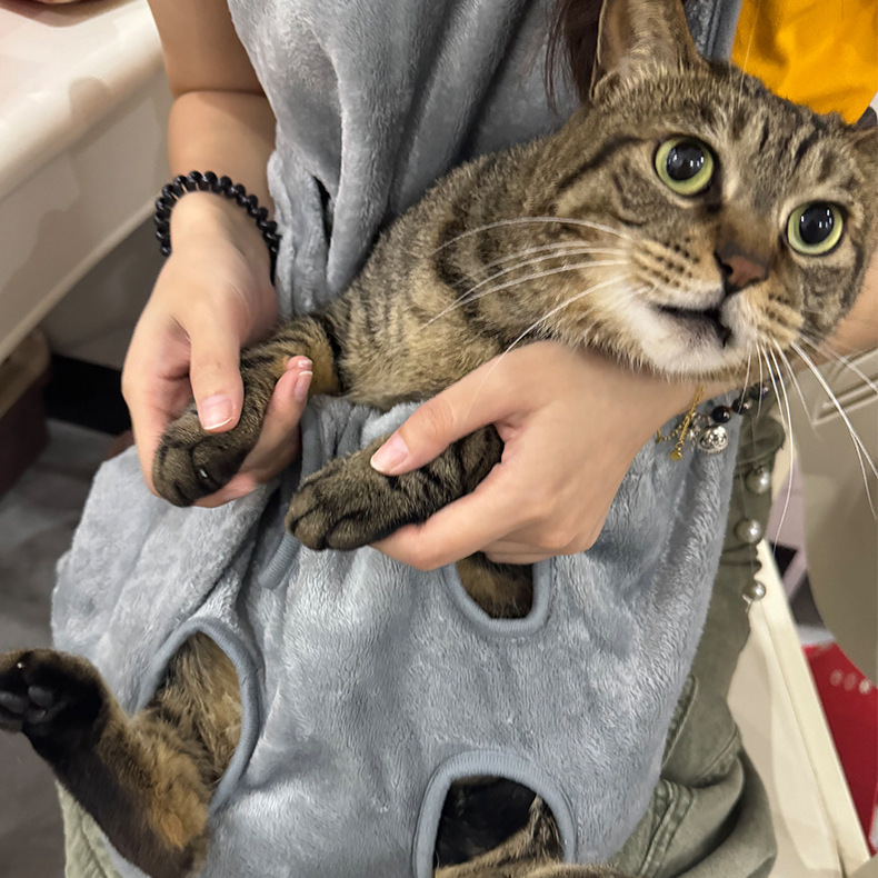 고양이 옷 고양이 앞치마 턱받이 안티 고양이 헤어 커버 북극 양털 비 끈적 끈적한 머리카락을위한 손톱 절단 및 발 새는 애완 동물 고양이 고양이를 잡는 세트스토어 가기