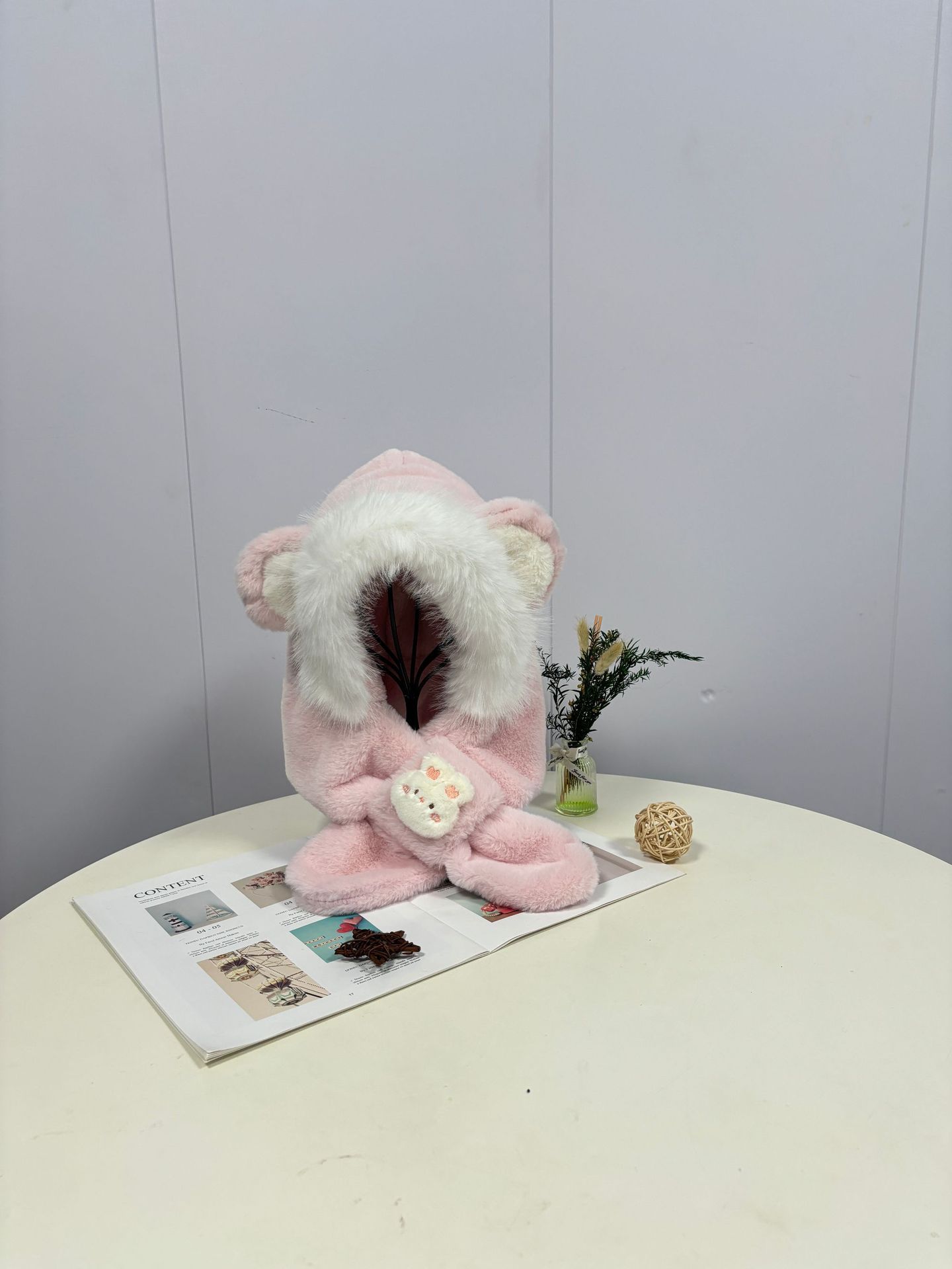 딸기 곰 어린이 봉제 모자와 스카프 한 가을 겨울 소년 귀 보호 모자 소녀 아기 귀여운 투피스 세트스토어 가기
