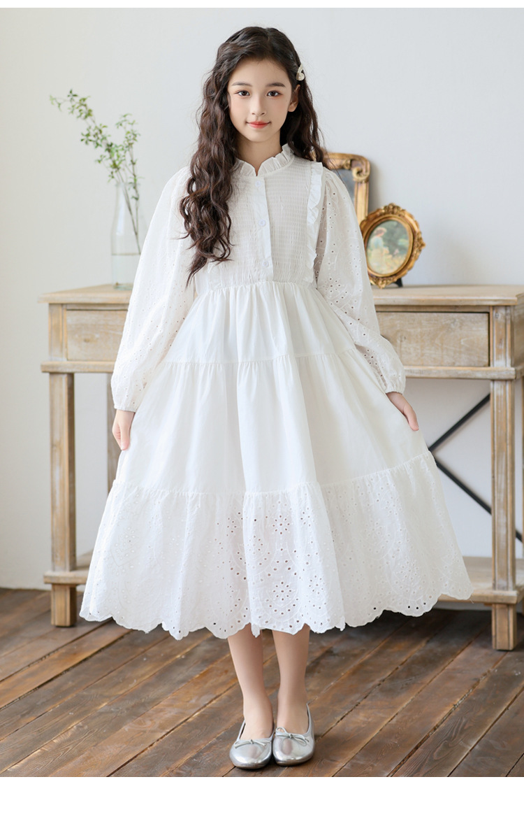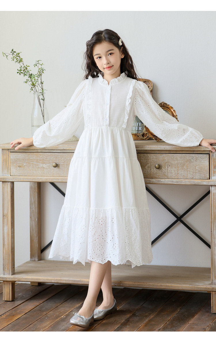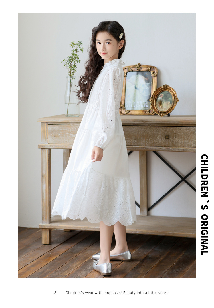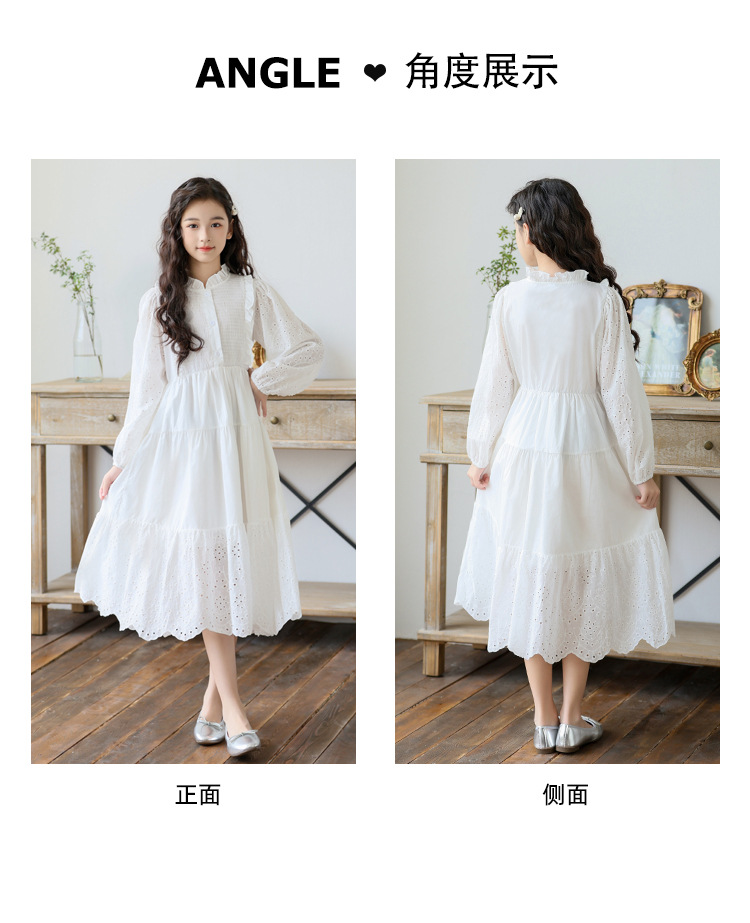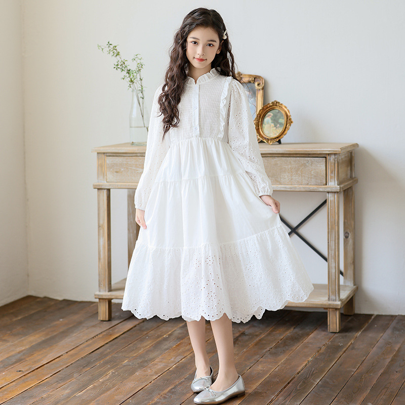소녀 가을 공주 원피스 큰 어린이 레이스 레이스 원피스 2024 서양식 프랑스 스타일 소녀의 원피스 봄과 가을 새로운 도착스토어 가기