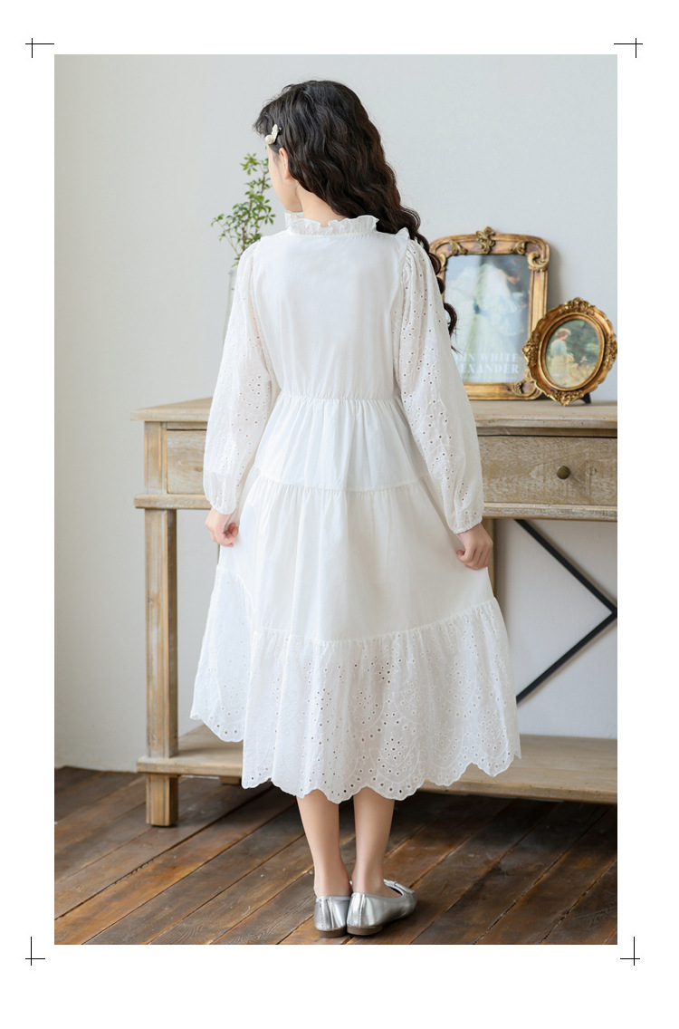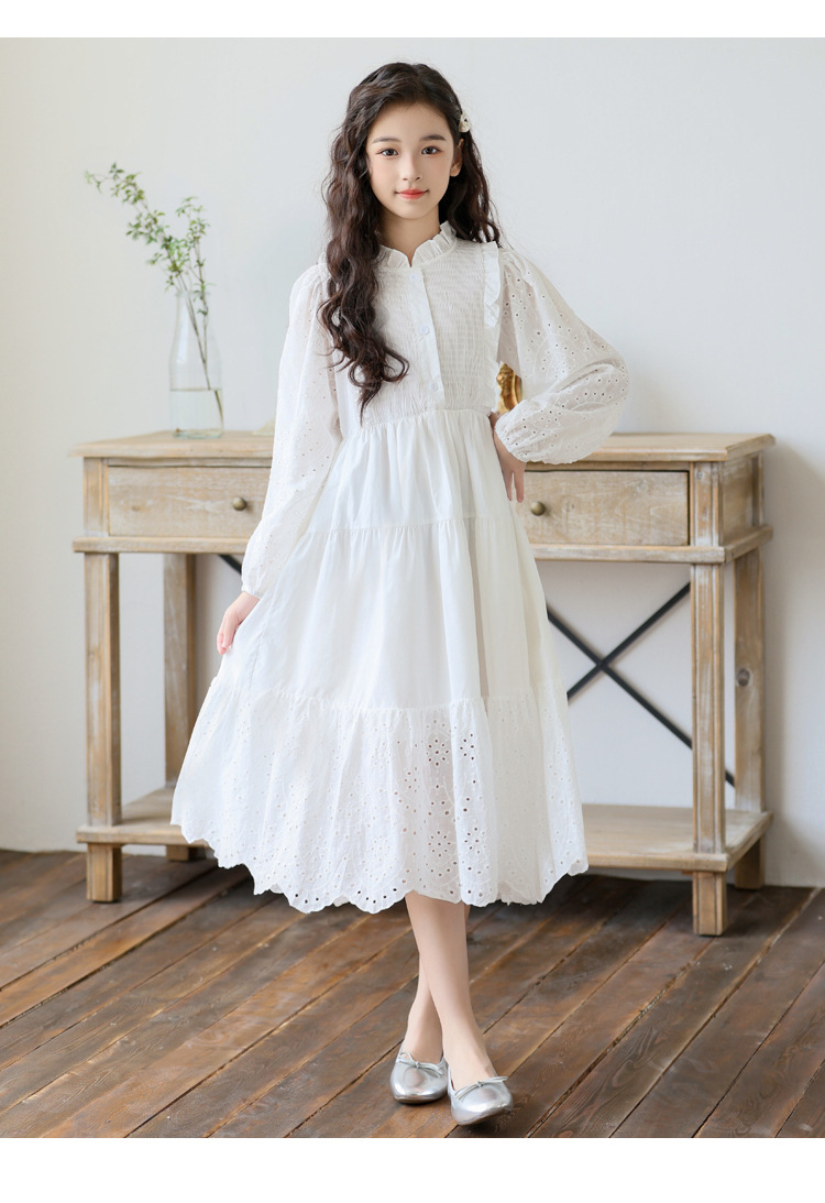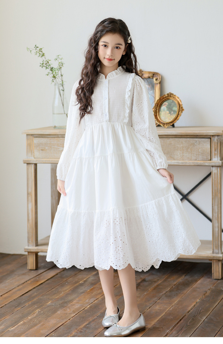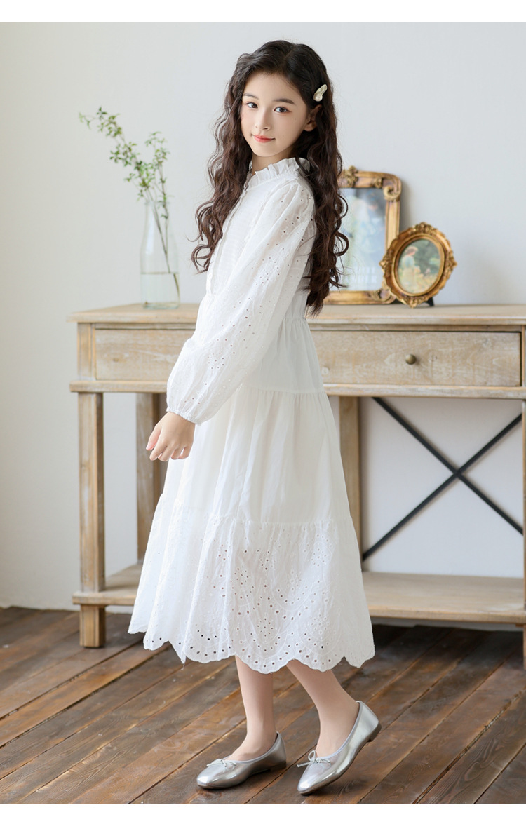 소녀 가을 공주 원피스 큰 어린이 레이스 레이스 원피스 2024 서양식 프랑스 스타일 소녀의 원피스 봄과 가을 새로운 도착스토어 가기