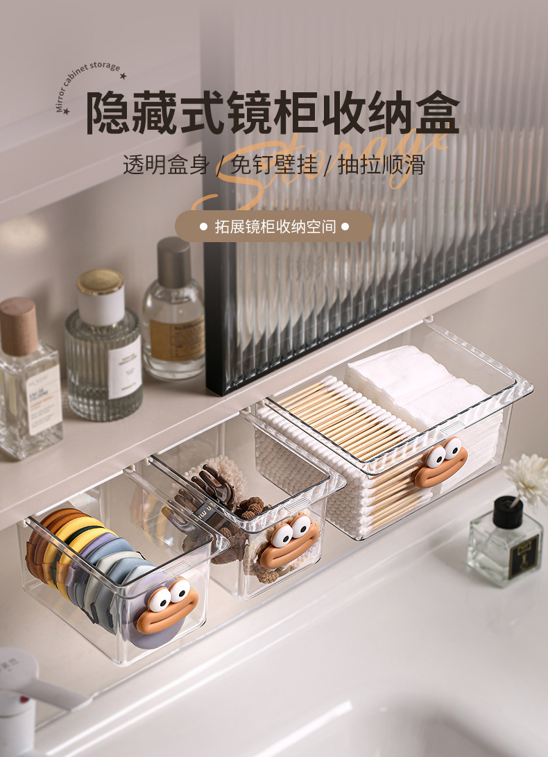 화장실 거울 캐비닛 서랍 형 저장 상자 가정용 면봉 화장품 면화 저장 투명 풀아웃 저장 랙